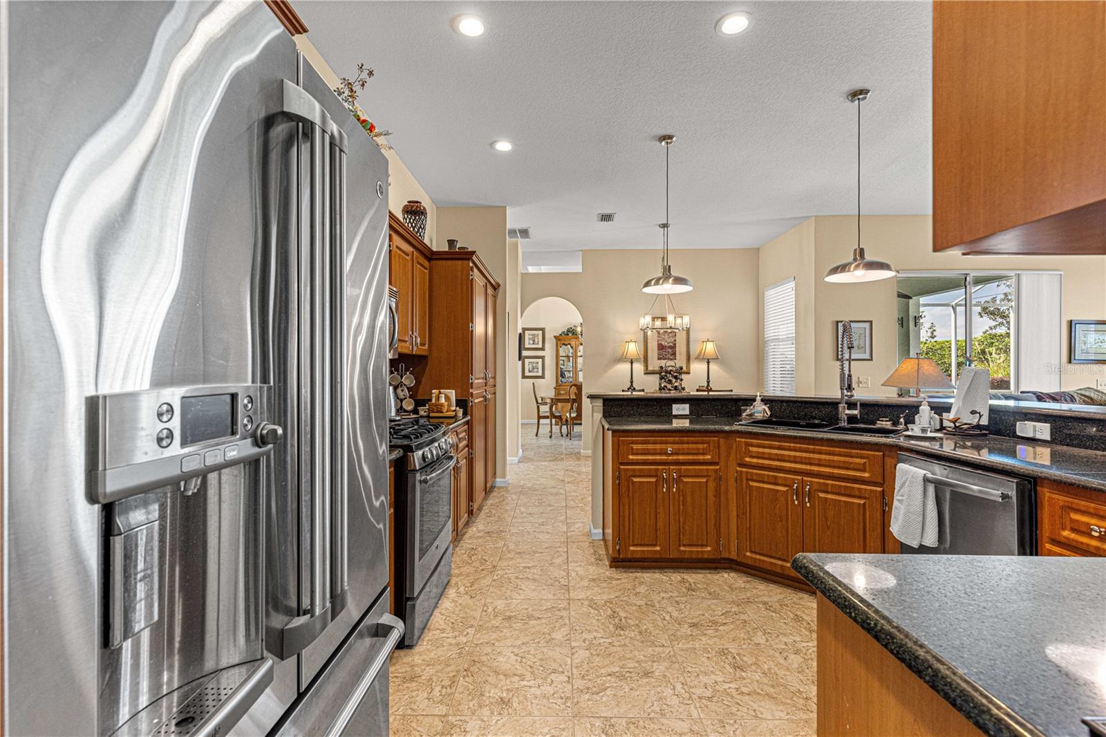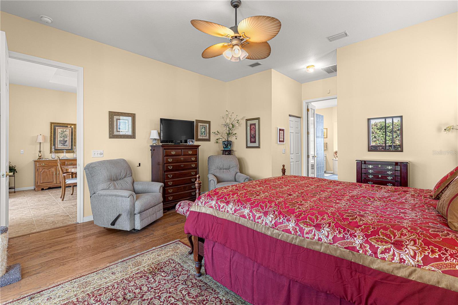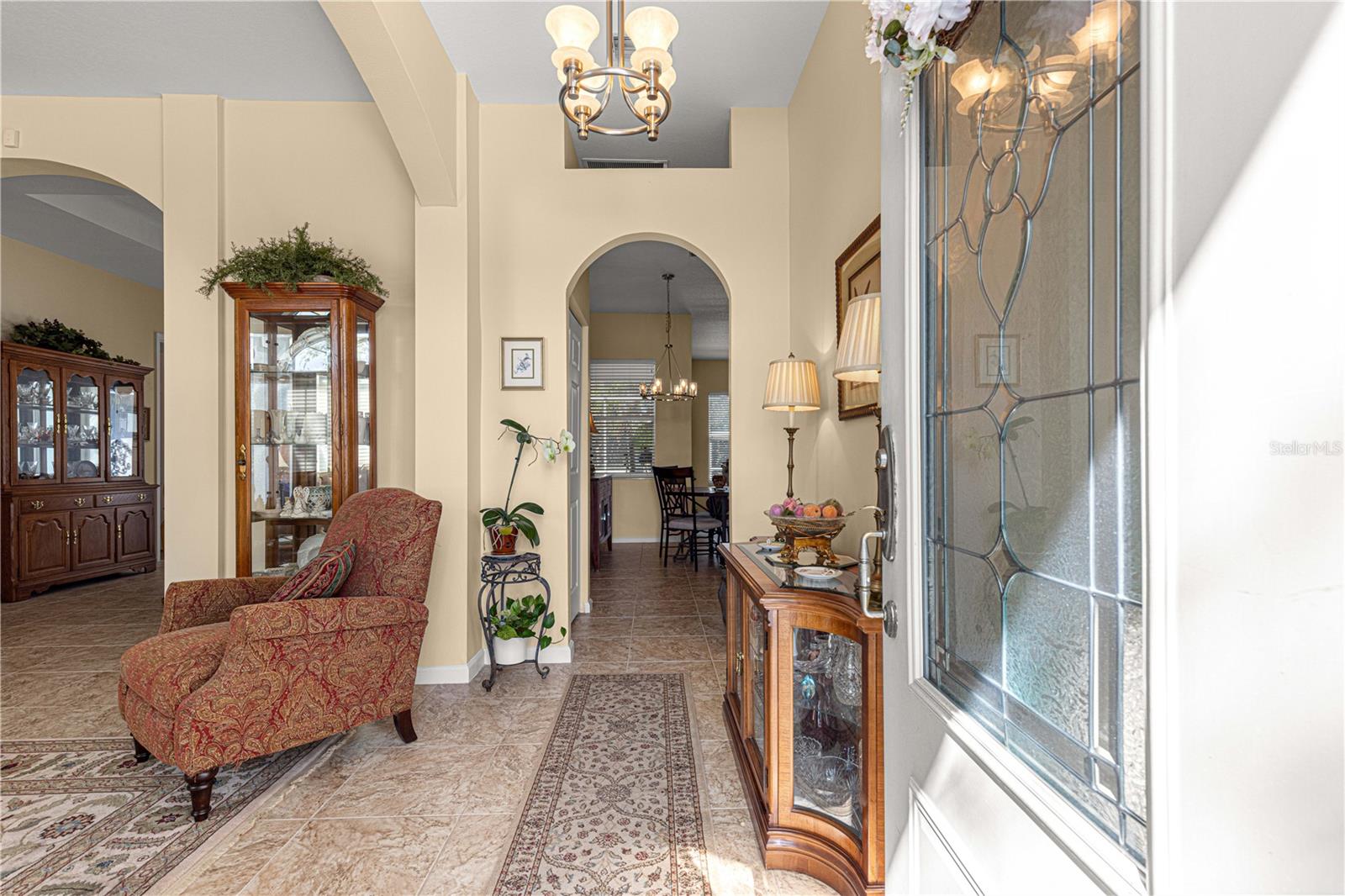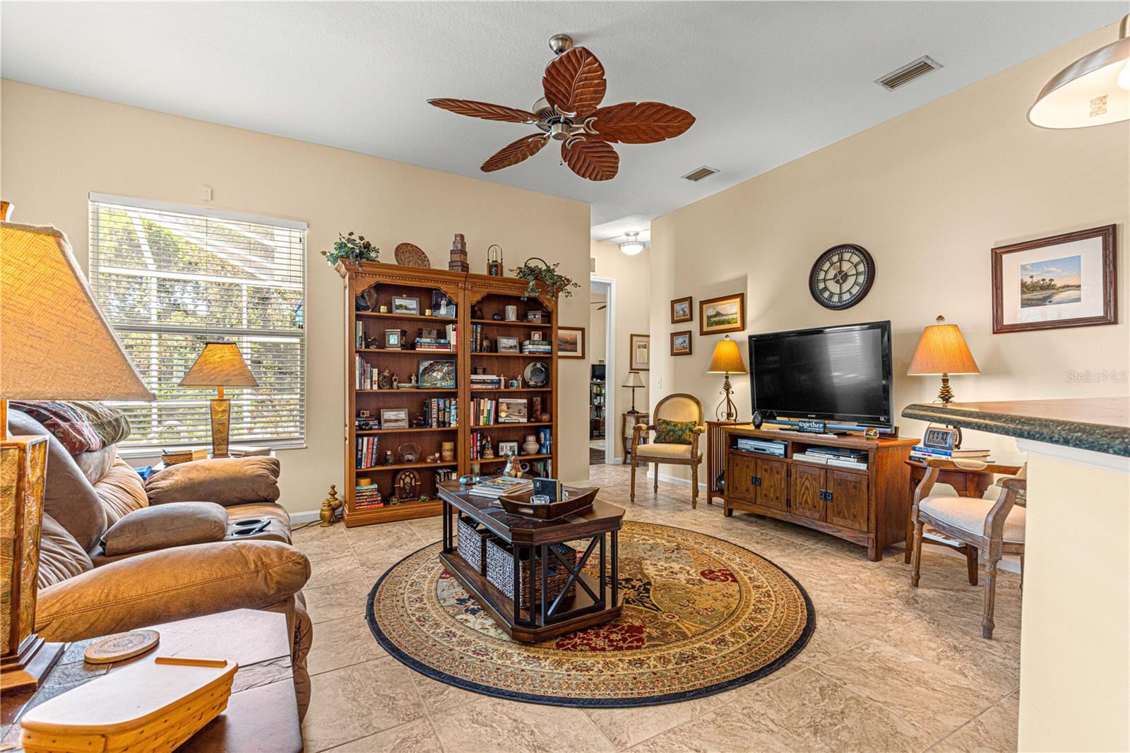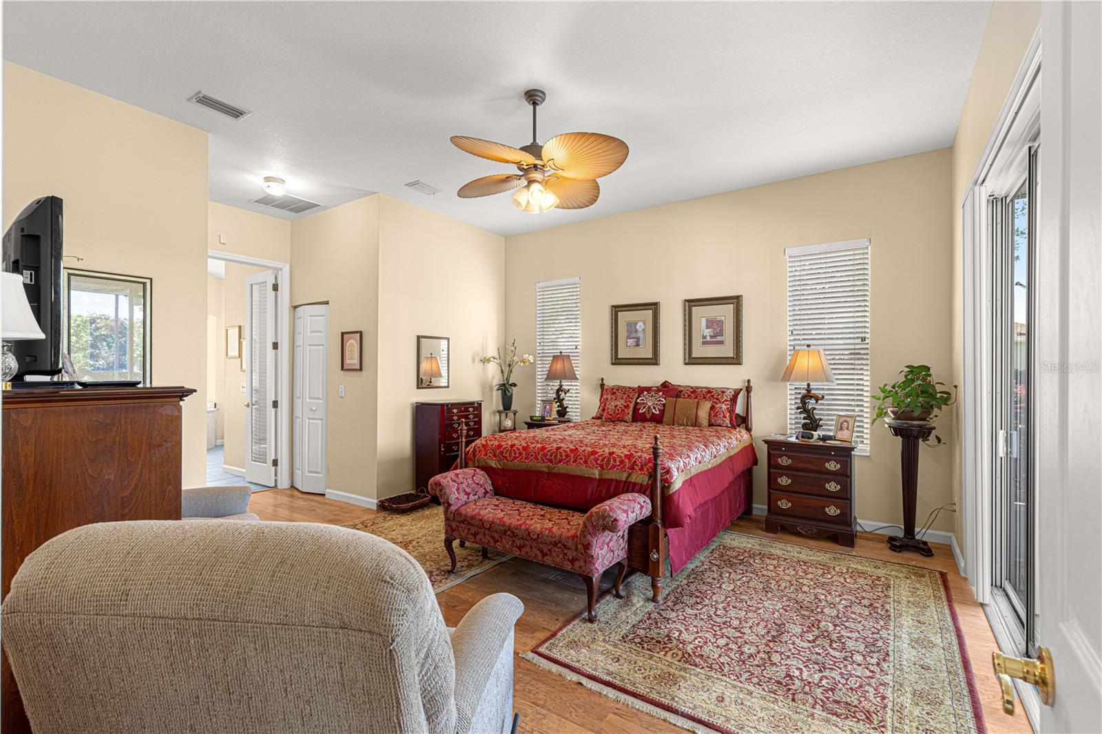 DON'T MISS THIS ELEGANT GOLF COMMUNITY GEM! Discover luxury living in this spacious 2,350 square foot residence nestled in a popular gated golf community, complete with full time guard and upscale restaurant on site, and situated on a beautiful double lot, .49 acres! Step inside to find the stylish formal living and dining rooms, complemented by a family room that flows seamlessly into the kitchen - perfect for entertaining. This meticulously maintained home boasts a split bedroom floor plan offering privacy and comfort, while you will also enjoy beautiful hard flooring throughout - no carpet anywhere! The outdoor living also shines with a screened pool and large enclosed lanai, ideal for year-round enjoyment, while the irrigation system keeps landscaping lush with minimal effort. Recently refreshed with new interior paint throughout, this turnkey property includes an inside laundry room and generous garage space - a full 2-car garage plus a dedicated golf cart bay.