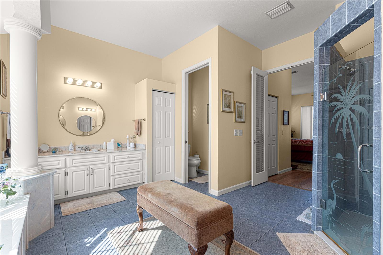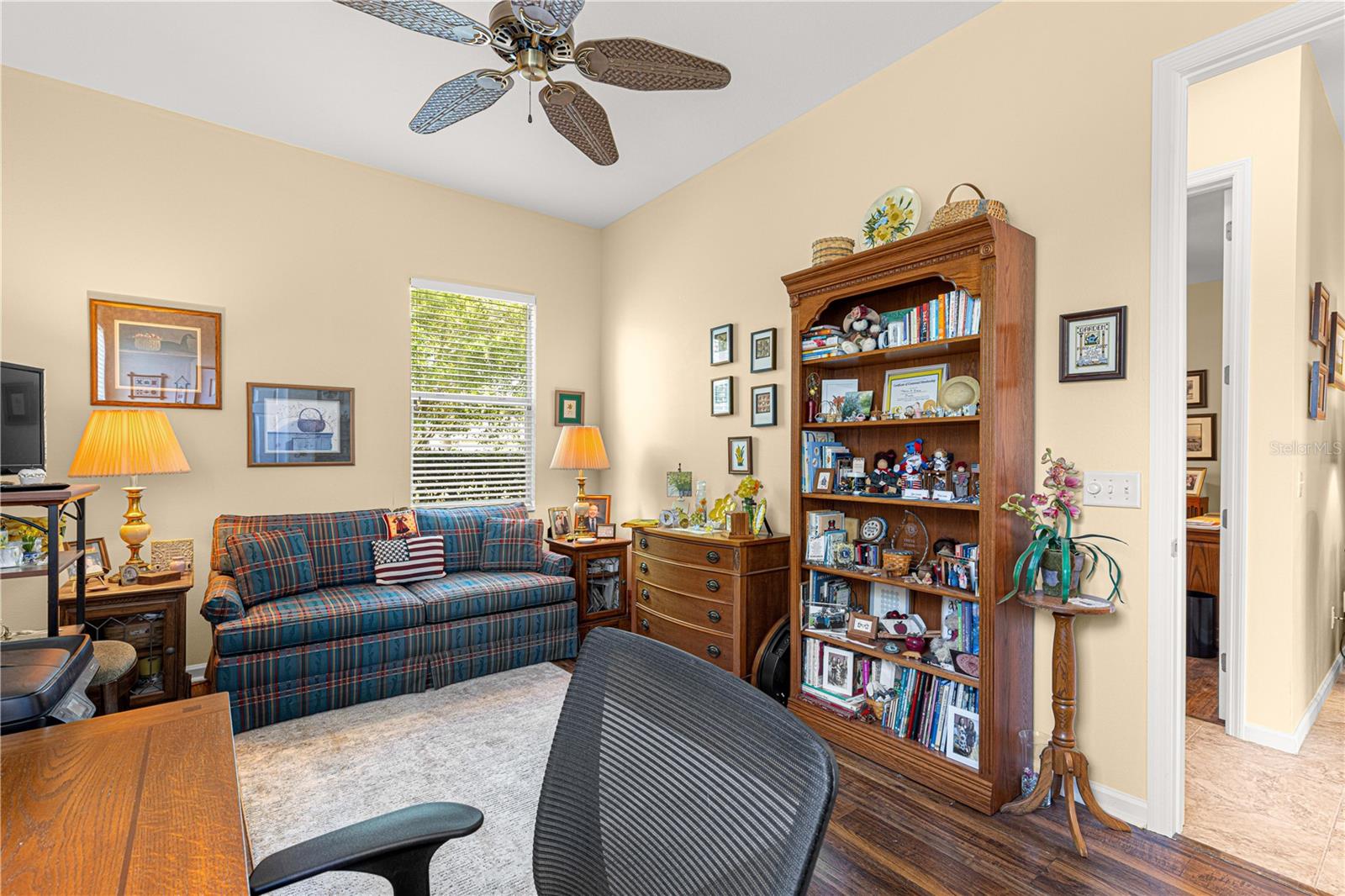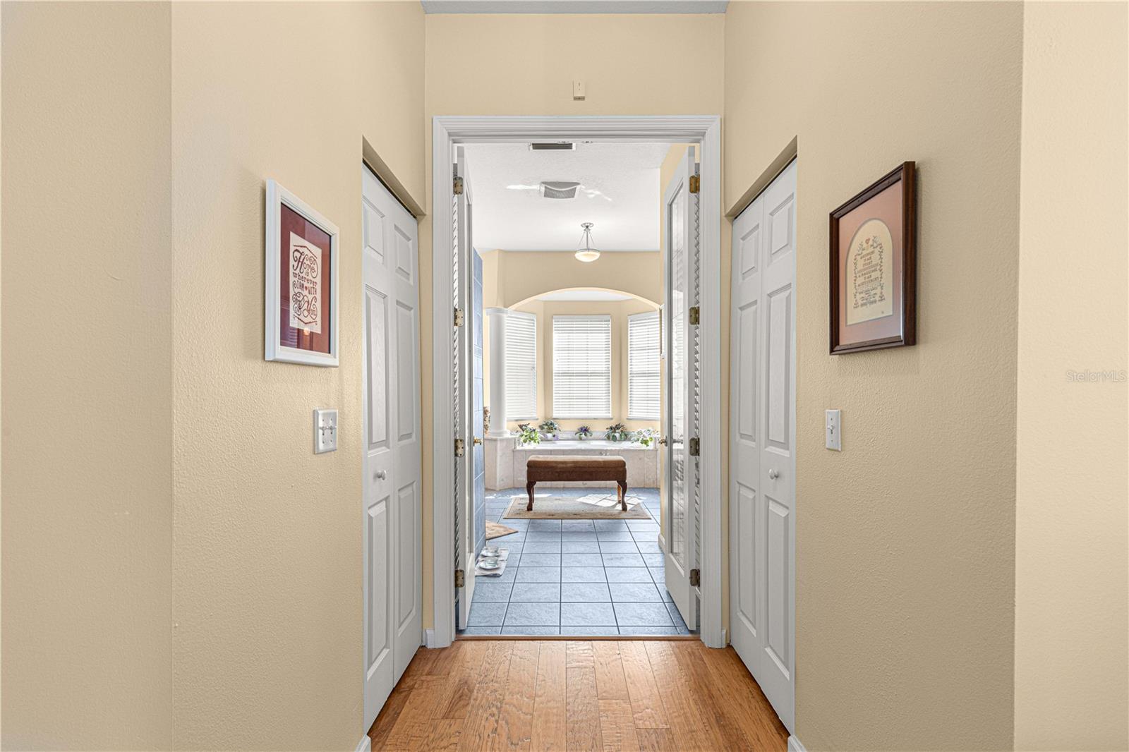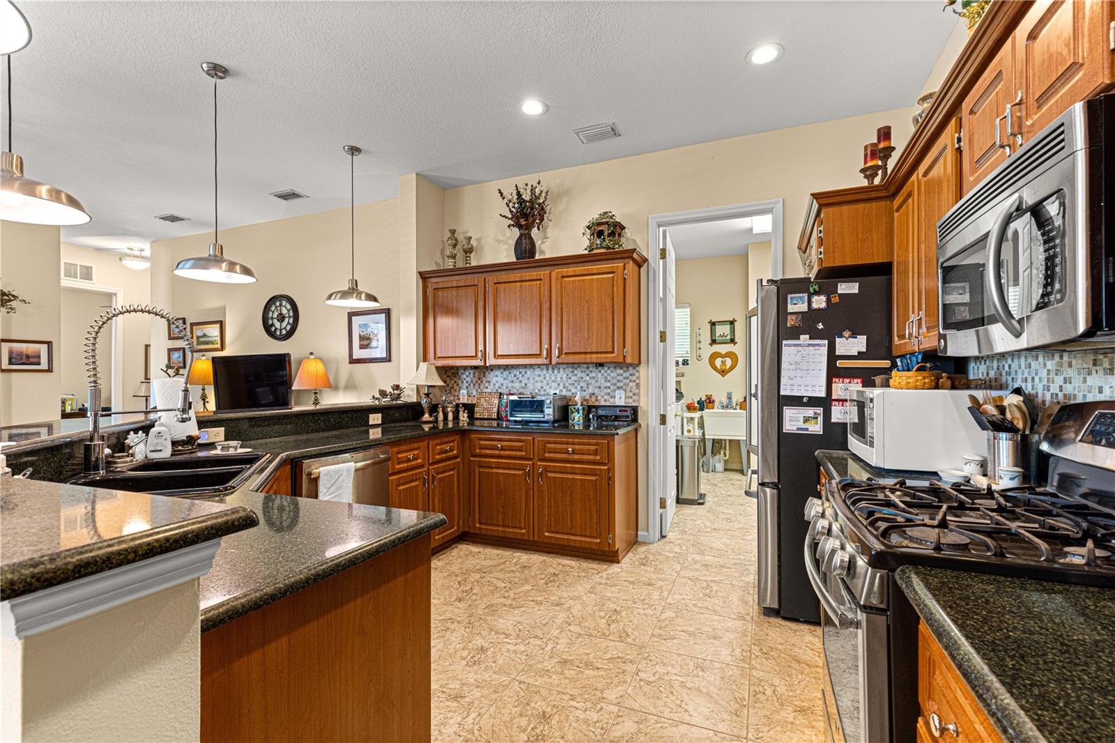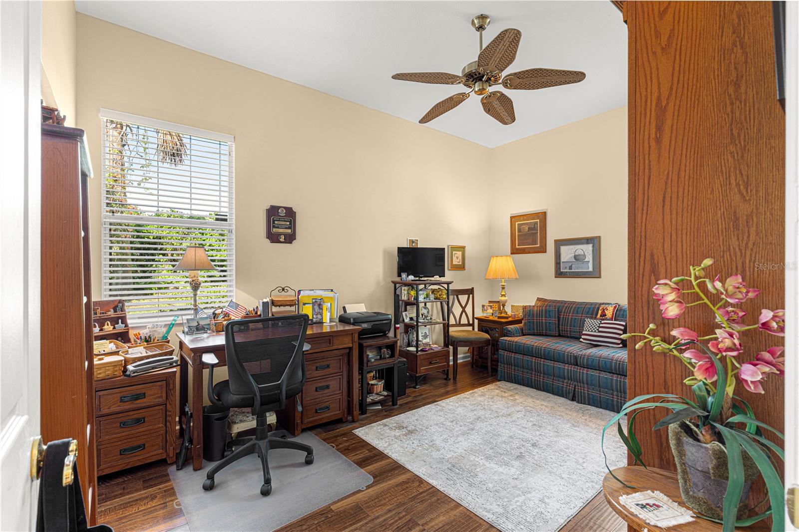 DON'T MISS THIS ELEGANT GOLF COMMUNITY GEM! Discover luxury living in this spacious 2,350 square foot residence nestled in a popular gated golf community, complete with full time guard and upscale restaurant on site, and situated on a beautiful double lot, .49 acres! Step inside to find the stylish formal living and dining rooms, complemented by a family room that flows seamlessly into the kitchen - perfect for entertaining. This meticulously maintained home boasts a split bedroom floor plan offering privacy and comfort, while you will also enjoy beautiful hard flooring throughout - no carpet anywhere! The outdoor living also shines with a screened pool and large enclosed lanai, ideal for year-round enjoyment, while the irrigation system keeps landscaping lush with minimal effort. Recently refreshed with new interior paint throughout, this turnkey property includes an inside laundry room and generous garage space - a full 2-car garage plus a dedicated golf cart bay.