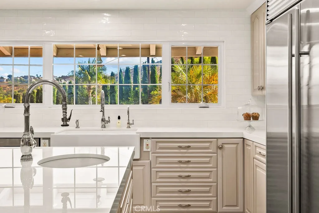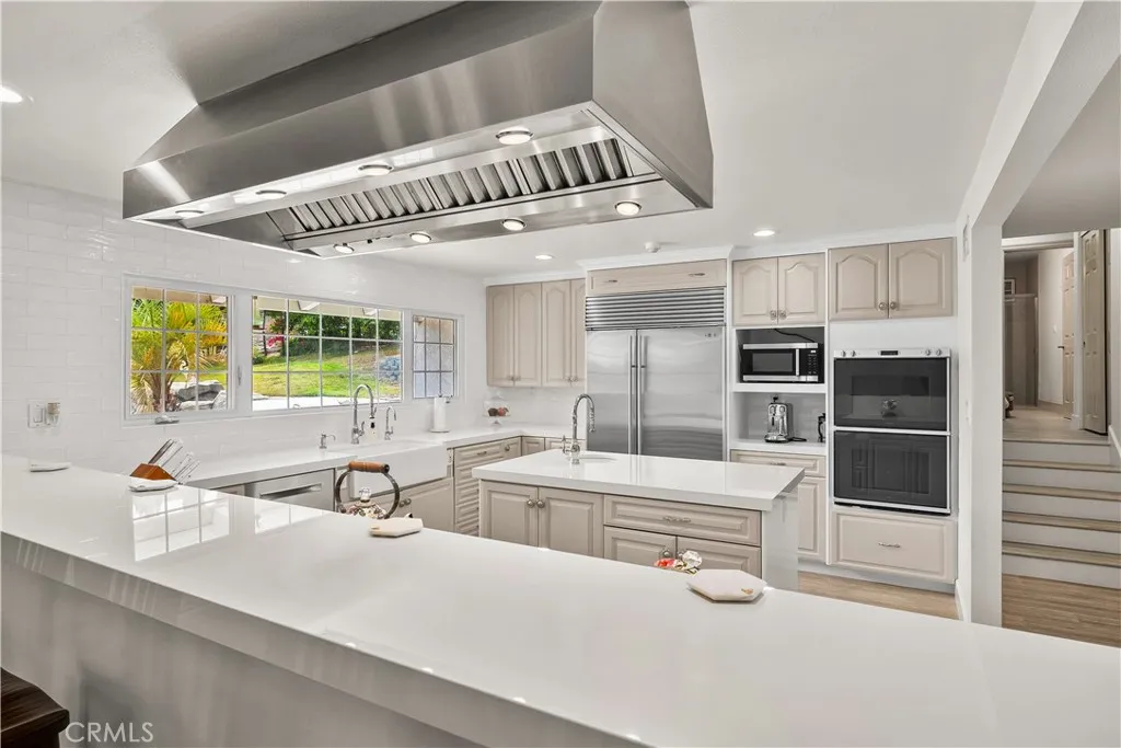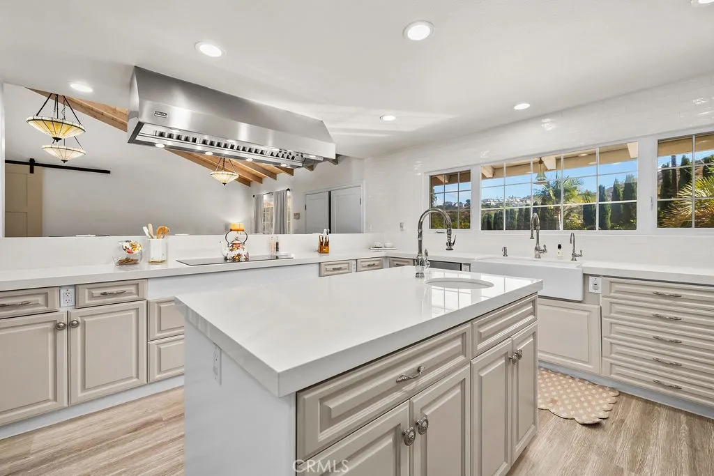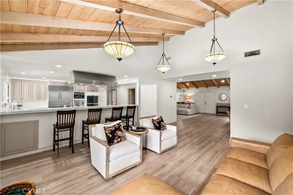 Welcome to your own privately gated ranch-style oasis with prestigious country living in Orange Park Acres. Removed from the hustle and bustle of the city, this gorgeous estate is situated in one of Oranges most desirable neighborhoods and active communities. This beautifully renovated and remodeled 5 bedrooms plus added bedroom space, 4-bathroom estate offers 3,549 square feet of refined living space on an expansive 1-acre usable lot zoned for horses and precious livestock. Blending timeless elegance with modern upgrades and an open floor plan, every detail of this residence showcases high-end craftsmanship designed for both luxury and comfort. Inside, youll find vinyl plank flooring, detailed baseboards, and elegant wainscoting that add warmth and sophistication throughout. The inviting family room is rich in character, featuring custom open beamed vaulted ceilings, built-in bookcases, and a striking fireplace mantle. The exquisite gourmet kitchen with new appliances, is the heart of the home, boasting Dekton countertops, subway tile backsplash, a farmhouse sink, walk-in pantry with custom woodwork, and premium fixtures and pass-over bar make this space perfect for everyday living and entertaining alike. Each remodeled bathroom offers modern sinks and Dekton counters, while fresh interior and exterior paint and new exterior doors enhance the homes updated appeal. The spacious garage with epoxy flooring and corrected foundation provides lasting peace of mind. The openness continues with a vast 25,000 square feet of lush new grass, raised garden boxes, fruit trees, and a ch