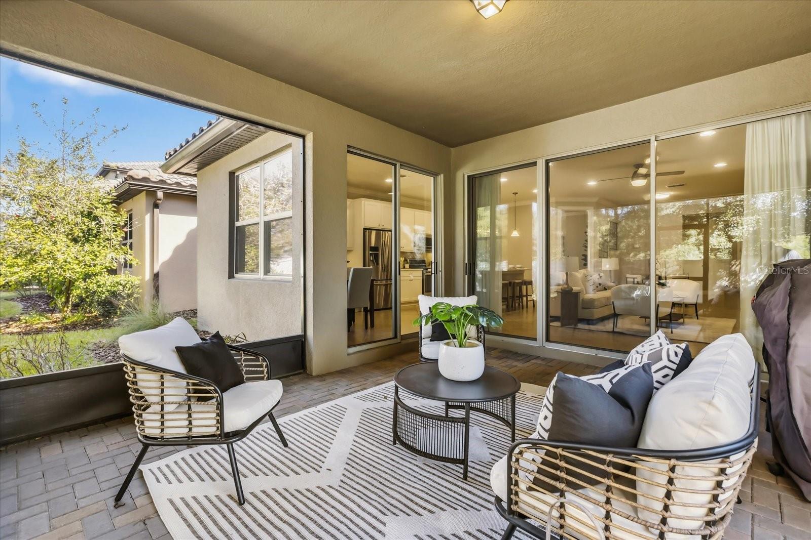 Located in the highly desirable O-Town West/Dr. Phillips area, this 3-bedroom, 3-bath home with a dedicated study-built by Pulte and situated within the GATED RUBY LAKE community-offers a rare blend of privacy, transitional open design, and a thoughtfully planned floorplan that makes exceptional use of every square foot. The Pompeii floorplan is one of the most functional layouts, with the primary retreat, a dedicated study, and an additional full bedroom with ensuite bathroom all located on the first floor-an ideal setup for convenience, multigenerational living or hosting long-term guests. The gorgeous light and bright kitchen features quartz countertops, counter height bar, white shaker-style cabinetry, stainless steel gas appliances upgraded lighting with an eat in space overlooking the backyard. The expansive kitchen is open to the family room fit for entertaining. Comfortably fits large groups. Versatile dining area that can be formal or relaxed everyday space. Great for playing cards or morning coffee and catching up on news. The primary retreat is a major highlight of the home. Located privately on the main level, it features an expansive bedroom with sitting area. The primary bathroom is oversized, featuring dual sinks, an extra-large super-shower and extensive counter and storage space. The walk-in closet is very large, offering tons of space for organization, seasonal storage and wardrobe needs. The main floor also includes a dedicated office/den with upgraded wood flooring. Upstairs, a generous loft serves as a flexible game room, theater room or another living area-perfect for different zones of playroom, second office or even a 4th bedroom. Additional private bedroom with its own full bathroom, ideal for guests or anyone who appreciates having a more secluded personal space. The property sits on a unique lot with no backyard neighbor, providing a level of privacy not commonly found in the community. The extended screened brick-paver lanai is a true favorite and functions as a true extension of the family room and is comfortable year-round thanks to the screen, privacy and quiet surroundings. Additional features include a tile roof, double-pane windows, dual AC systems, 2-car garage equipped with a Level 2 Tesla EV charger. One of the few natural gas communities in the area, this home features GAS APPLIANCES, including gas range and a tankless gas water heater. Tall ceilings and crown molding continue throughout the living spaces, giving the home a clean, modern feel. Ruby Lake offers extensive amenities, including a resort-style pool, splash pad, fitness center, tennis and pickleball court, pavilion and party room, lakeside fire pit, and a community dock and pier for views of Disney fireworks. The location provides easy access to major attractions-under 10 minutes to Walt Disney World and Universal Studios. With the new I-4 on-ramp nearby and the rapidly expanding O-Town West development (Publix, Target, retail, dining), this area continues to grow as one of Orlando’s most convenient and sought-after places to live, offering an exceptional blend of lifestyle, comfort, and long-term value.