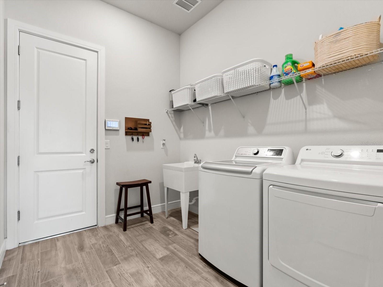 The home hosts three spacious bedrooms, including a luxurious primary suite with a stunning water view, and three modern bathrooms. Additionally, there's a versatile office/flex room perfect for remote work or additional guests. The laundry room comes complete with a utility sink, and washer and dryer, both included for your convenience.