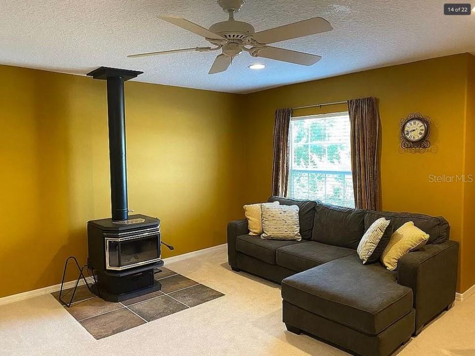 The home has a wood burning stove in the bonus room and a gas fireplace in the main family room.