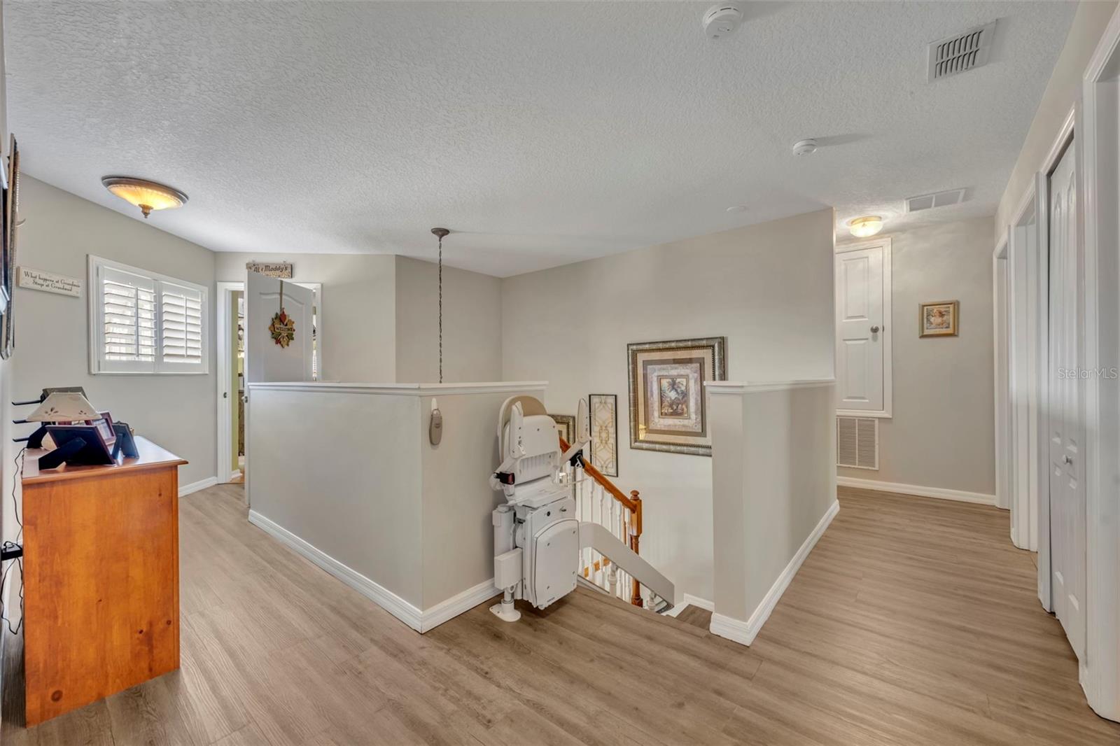 Beautifully situated within the gated North Shore at Lake Hart community in Lake Nona, Orlando, Florida, this spacious 5-bedroom pool home offers refined living in one of Central Florida’s most desirable, amenity-rich neighborhoods. Designed with 4 bedrooms plus a private fifth-bedroom suite complete with its own living room and full kitchen, this floor plan is ideal for multi-generational living, in-laws, extended family, adult children, a nanny, or long-term guests who value privacy and independence. The entryway opens to formal living and dining spaces filled with natural light. Thoughtfully selected tile and wood-look flooring combine with plantation shutters throughout for a classic and elevated feel. A built-in chair lift allows comfortable second-floor access. On the first floor, a bedroom with Murphy bed works beautifully for visiting guests, a dedicated home office, or hybrid work needs. Upstairs, the generous owner’s retreat features a relaxing sitting area and a beautifully remodeled shower in the en suite bath. Additional bedrooms provide versatility for flexible family space, hobbies, fitness, studio, or work-from-home lifestyles. The private suite with its own kitchen and living area creates a rare level of functionality that today’s multi-generational households are seeking. Outside, the screened pool and patio offer a peaceful outdoor environment for year-round Florida enjoyment. Whether hosting friends, enjoying quiet mornings with coffee, or spending weekends poolside, this outdoor living area feels like a private retreat. North Shore at Lake Hart, a gated, master-planned Lake Nona golf and lake community, is known for resort-style amenities including a recreation center, fitness center, community pool, tennis and basketball courts, baseball and softball field, playgrounds, scenic walking paths, and a community boat dock on Lake Hart. At the center of the neighborhood is the public, 18-hole North Shore Golf Club, offering both wooded and Florida links-style play along with a clubhouse and dining. The location offers easy access to 417, 528, Medical City, Orlando International Airport, Lake Nona Town Center, shopping, and dining. The property is currently zoned for Moss Park Elementary, Innovation Middle School, and Innovation High School, three of the most highly requested school options in Lake Nona. Request the detailed Updates List and schedule your private showing of this Lake Nona pool home today!