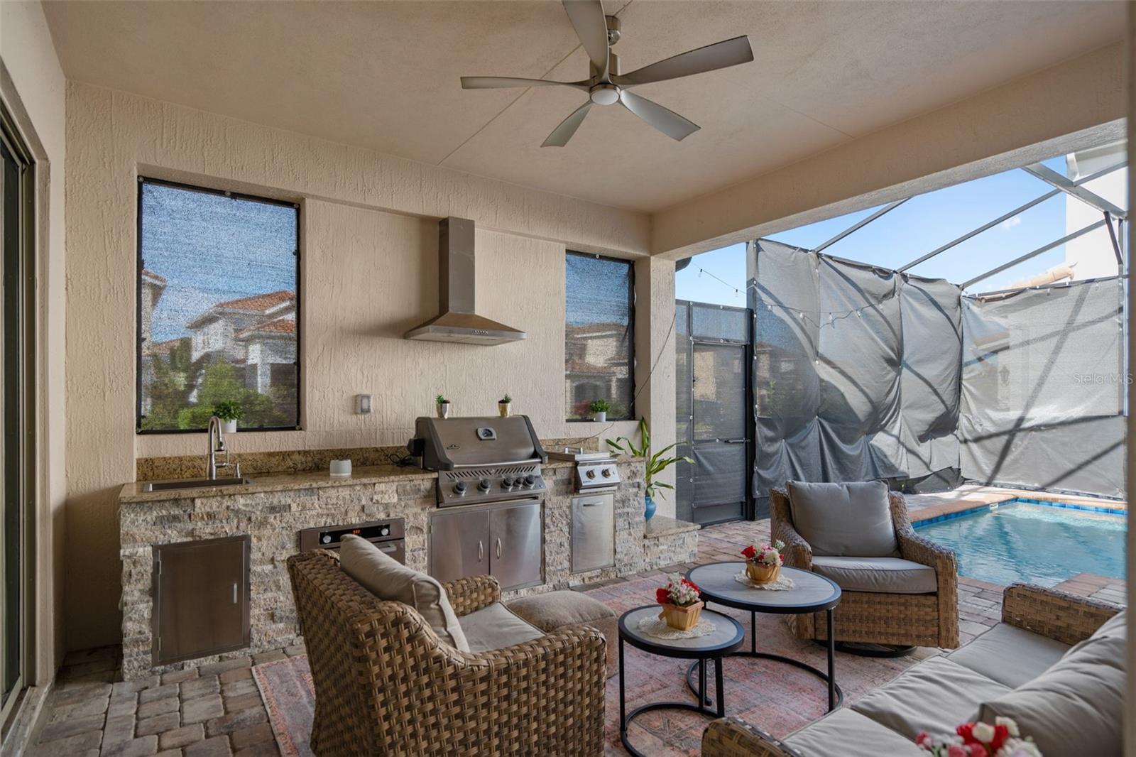 Step outside to your private resort-style oasis with a sparkling pool, outdoor kitchen, and covered lanai — perfect for relaxing or hosting year-round. A 3-car garage adds convenience, making this home completely move-in ready.