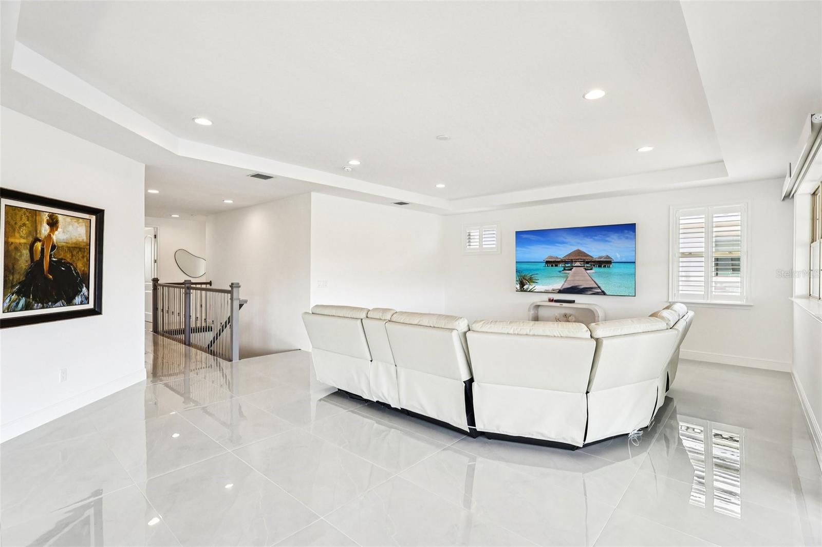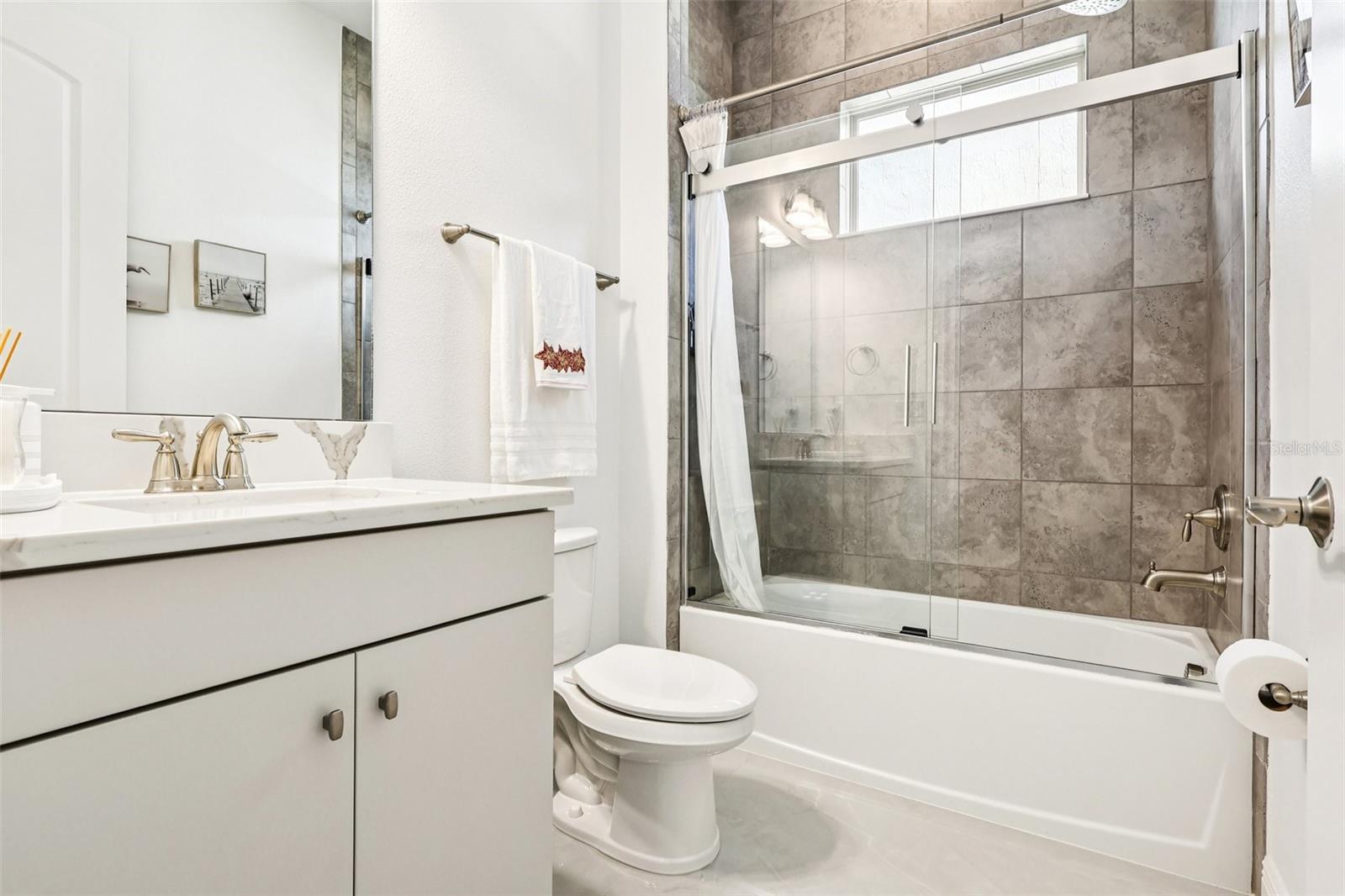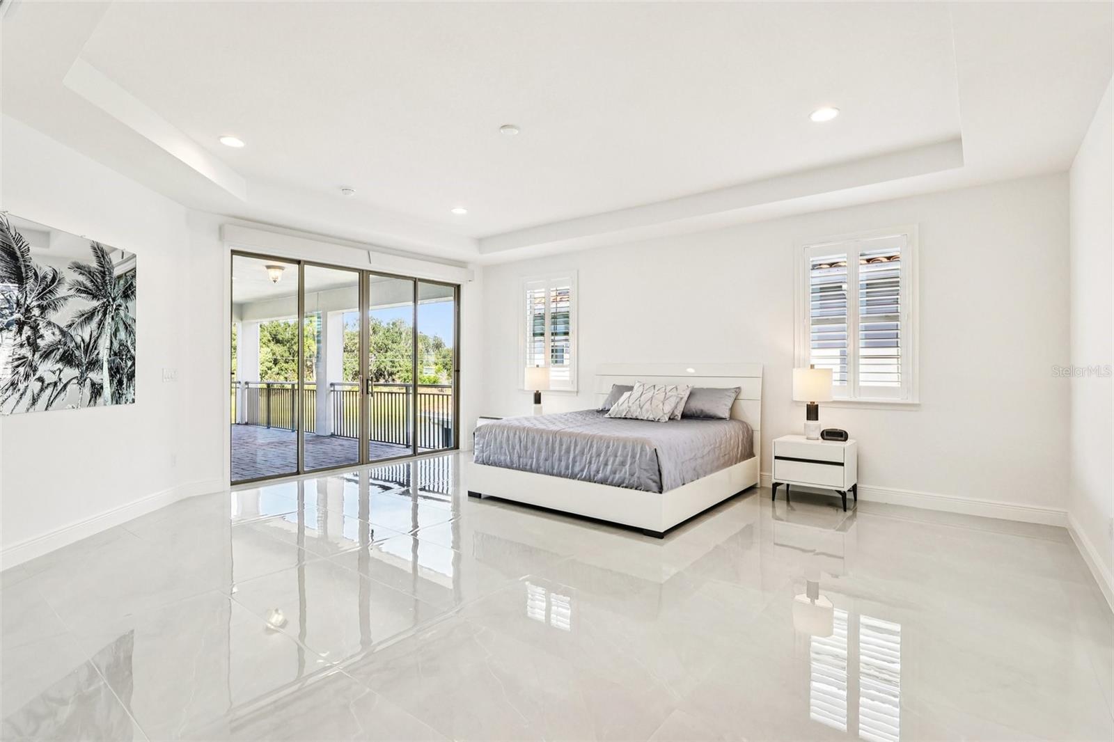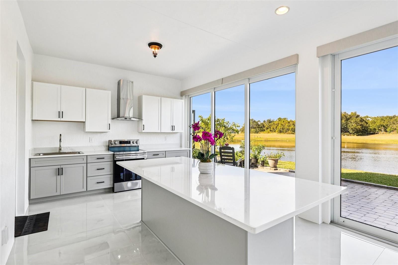 Step inside and be captivated by the sleek, modern design with tile flooring throughout – no carpet, just elegant, easy-to-maintain surfaces that complement the home's sophisticated aesthetic. Fresh interior paint creates a pristine canvas, while custom window shutters throughout add both style and light control. The walk-in closets feature premium cabinetry systems, maximizing storage with sophisticated organization solutions. The recently completed 480-square-foot addition transforms everyday living into resort-style entertainment, featuring an enclosed lanai with a second full kitchen perfect for hosting gatherings while soaking in breathtaking water views. The two-story layout maximizes the spectacular lakefront setting, with a massive balcony that serves as your private viewing platform to enjoy morning coffee or evening sunsets over the shimmering water. Outside, a beautifully pavered patio extends your living space, while newly installed sidewalks wrap around the home and an extended driveway provides ample parking and enhanced curb appeal. Entertainment reaches new heights in the expansive upstairs bonus room – your future media room, game room, or whatever your lifestyle demands. With four generously appointed bedrooms and four full bathrooms, there's abundant space for family, guests, and all of life's possibilities. Sustainable Living with Solar Advantage -