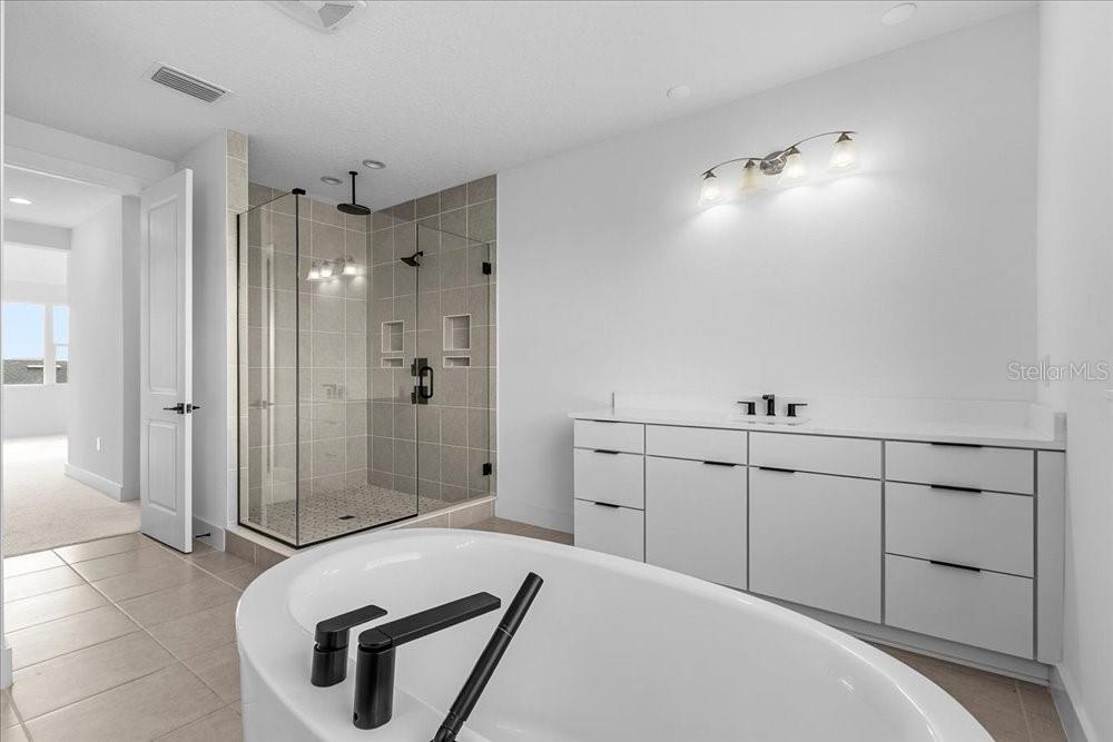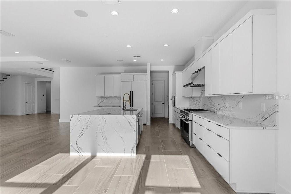 The home features 4 bedrooms with en-suite bathrooms, 4.5 baths, and a dedicated study/home office, ideal for today’s flexible lifestyle. The open kitchen serves as a central gathering space and includes premium appliances, quartz countertops, a center island, walk-in pantry, and ample storage. The primary suite provides a private retreat with a spa-style bath, freestanding tub, rainfall shower, and dual walk-in closets.