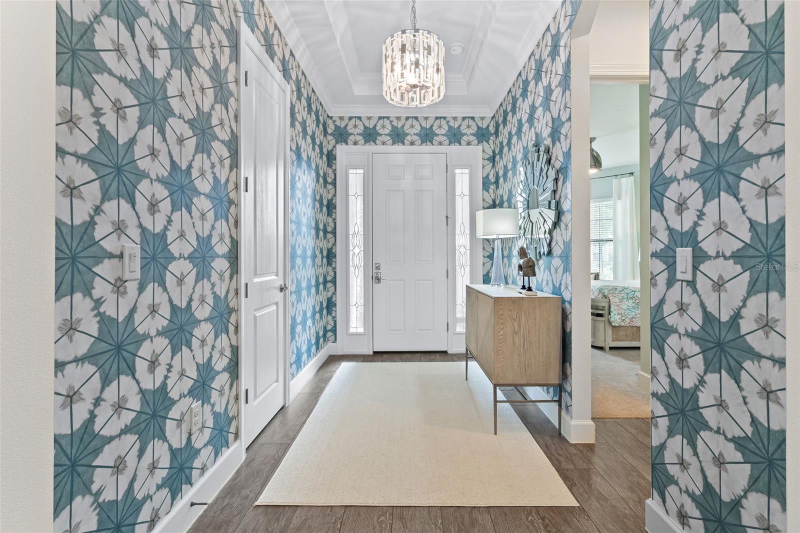 Blending luxury, comfort, and coastal elegance, this meticulously maintained residence showcases thoughtfully curated upgrades throughout. Step inside to find refined details such as elegant crown molding and custom closets in bedrooms, as well as in the pantry and laundry room, ensuring exceptional storage and organization. The split floor plan includes three bedrooms plus a spacious den with pocket doors, creating flexibility for work, relaxation and space for guests.