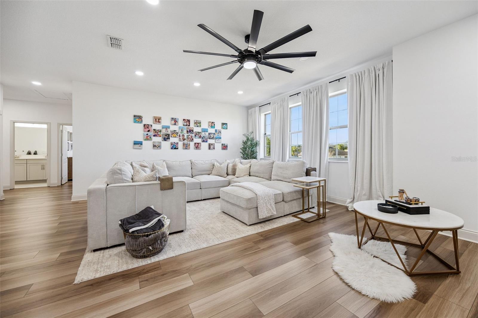 Upstairs, you’ll find a spacious loft, a generously sized family room, custom closets in the secondary bedrooms, and an additional private guest suite with a feature headboard, custom lighting and its own en-suite bath.