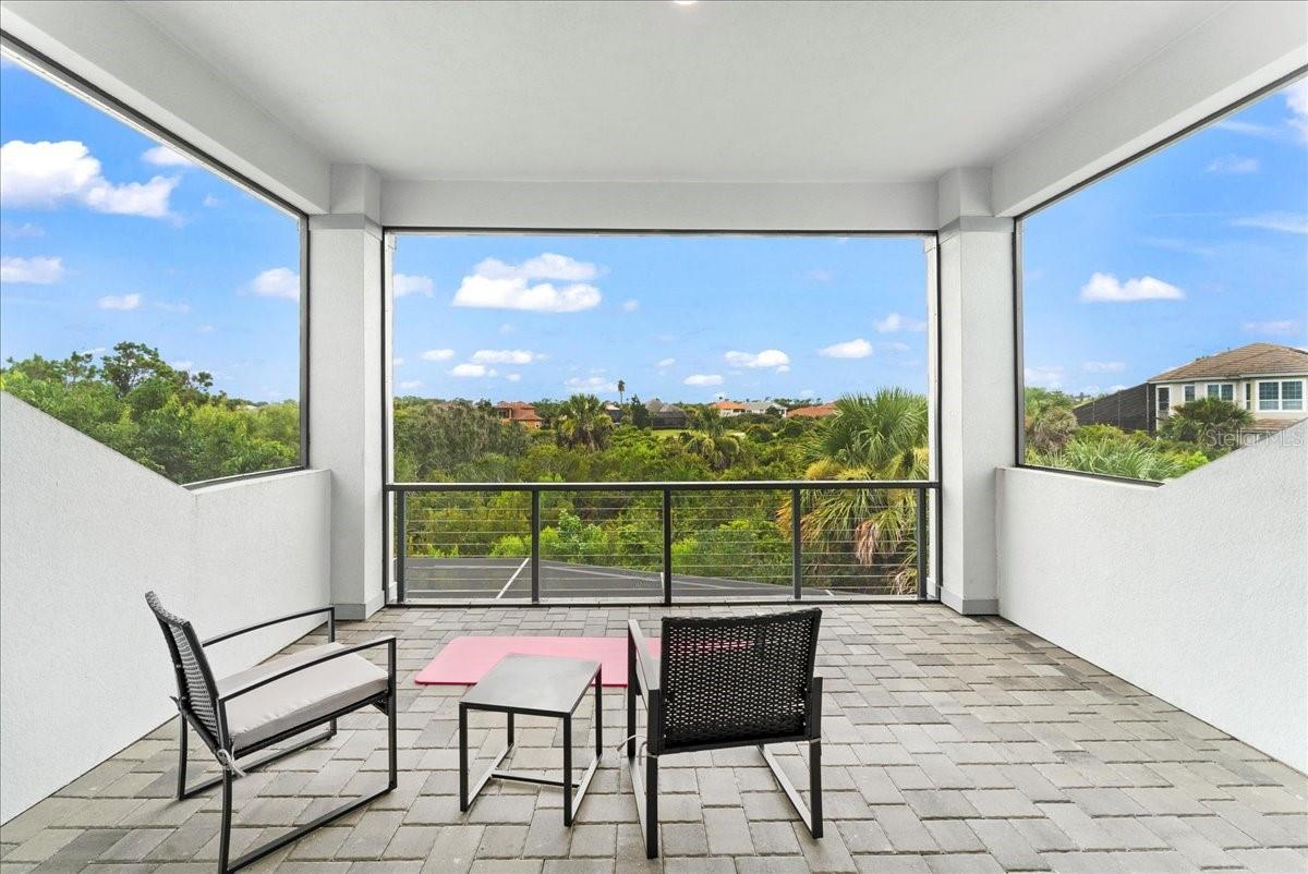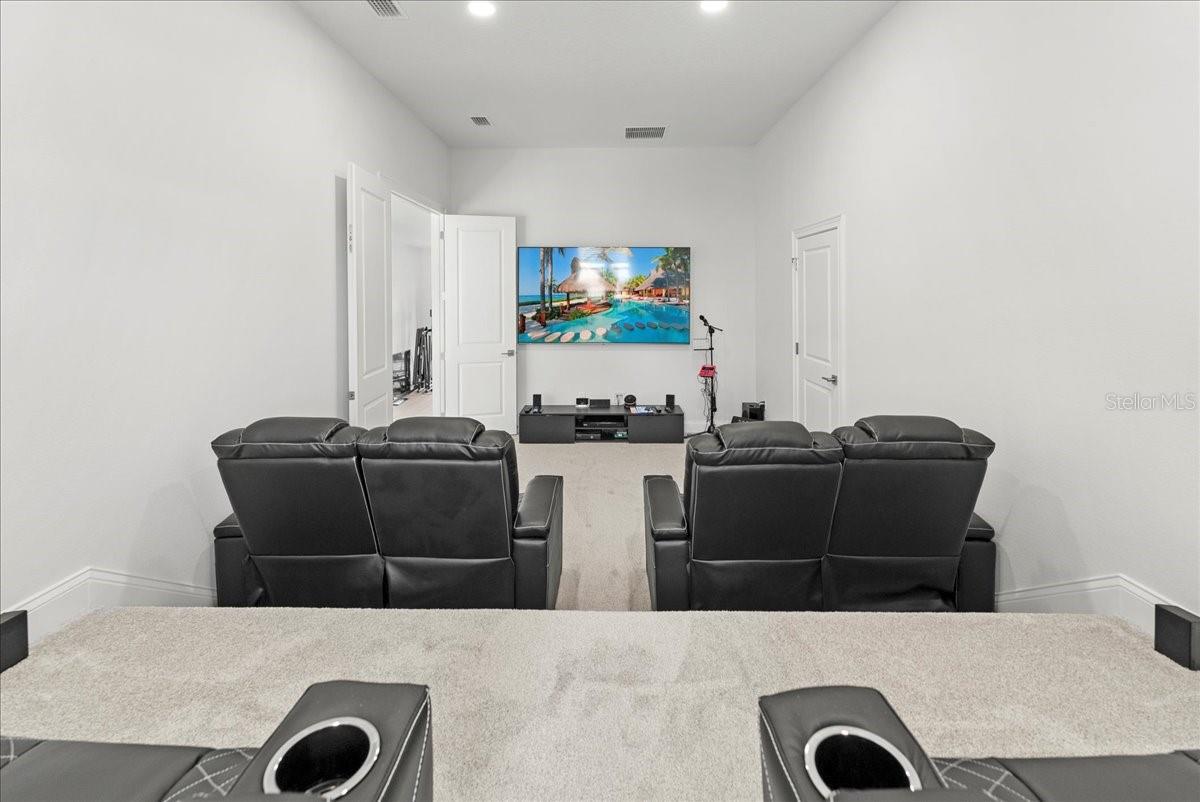 Heading up the hardwood staircase, you are greeted by a large loft space. Currently used as a home gym, the options are limitless of this space! After your workout, open up the stackable sliding door and cool off on your back screened balcony with a view of the 6th fairway of the world-renowned Ocean Course of The Club at Hammock Beach. Want a relaxing but entertaining night in? Head to the tiered media room with surround sound and kick up your feet for a great movie or some karaoke – but don’t forget to grab some popcorn and snacks at the mini-bar on your way in! A special treat off the media room is floored attic storage! 3 spacious bedrooms and 2 full baths complete the upstairs living area of this home.