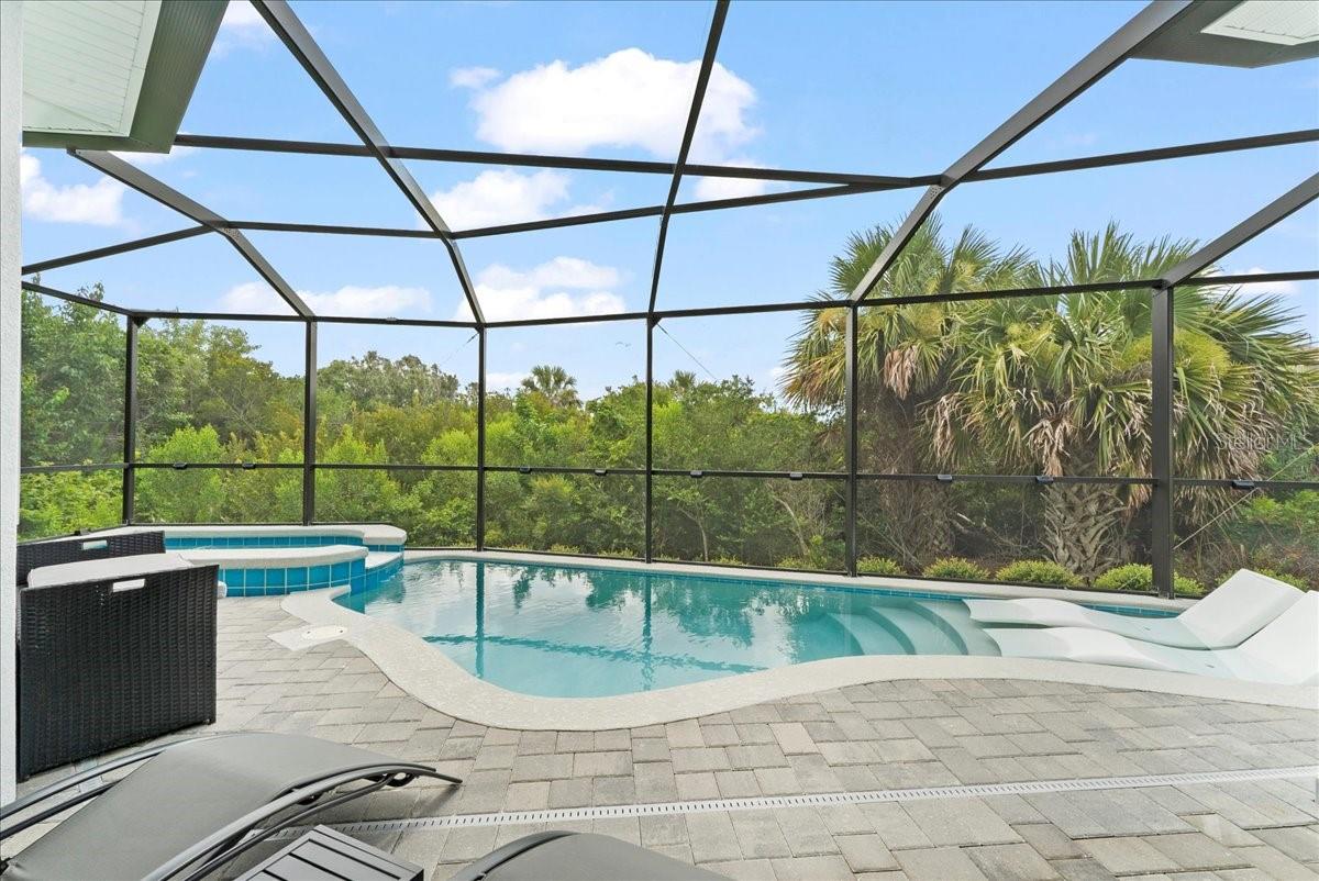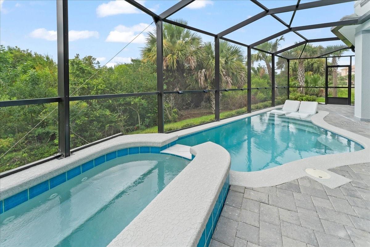 Outdoors, you are greeted by the lush Florida landscaping on this preserve lot. A custom-designed screened and heated pool and spa provides great fun and relaxation for the whole family, while being steps from the north walkover for direct beach access.