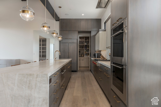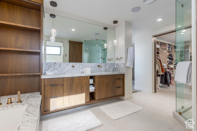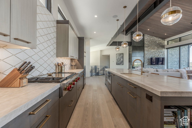 Interior Features: Alarm: Fire, Alarm: Security, Bar: Wet, Bath: Primary, Bath: Sep. Tub/Shower, Central Vacuum, Closet: Walk-In, Den/Office, Disposal, Floor Drains, French Doors, Great Room, Jetted Tub, Oven: Double, Oven: Gas, Range/Oven: Built-In, Vaulted Ceilings, Instantaneous Hot Water, Granite Countertops, Video Door Bell(s), Smart Thermostat(s)