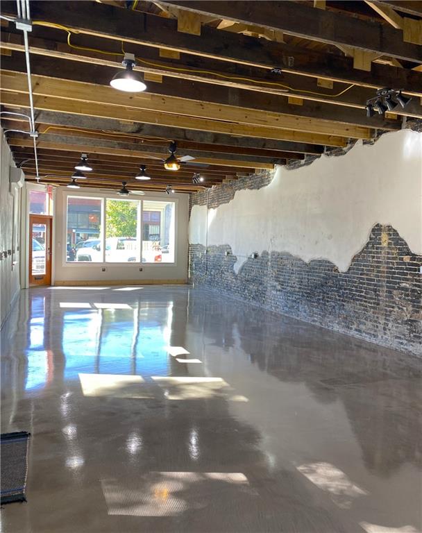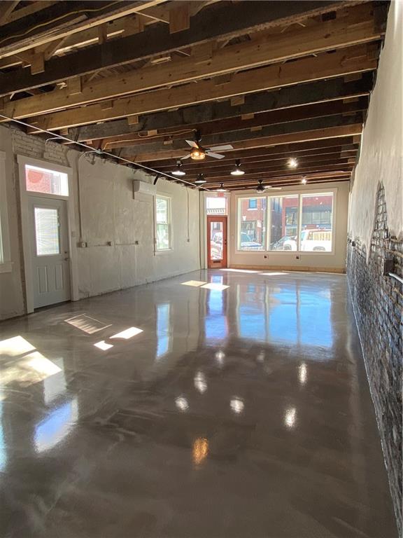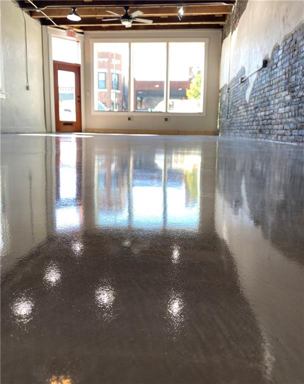one. Imagine the possibilities!! This historic building from 1914 has been updated for today's business needs while keeping the charm and pieces of history and character. Total of 1,800 SF and divided into two units, the storefront unit has big picture windows facing the Pleasant Hill square, mesmerizing new sparkle/slick concrete floors, exposed ceiling beams and brick wall, refurbished oak main entry door, new private bathroom, and multiple entry doors from the side lot as part of property. Fun historic feature: the accent wood on back wall, front windows, and in the bathroom are from the Original wood cooler in the building! Electric and plumbing have been updated throughout the building with brand new HVAC (4 ductless mini splits for indiv control) and tankless WH.