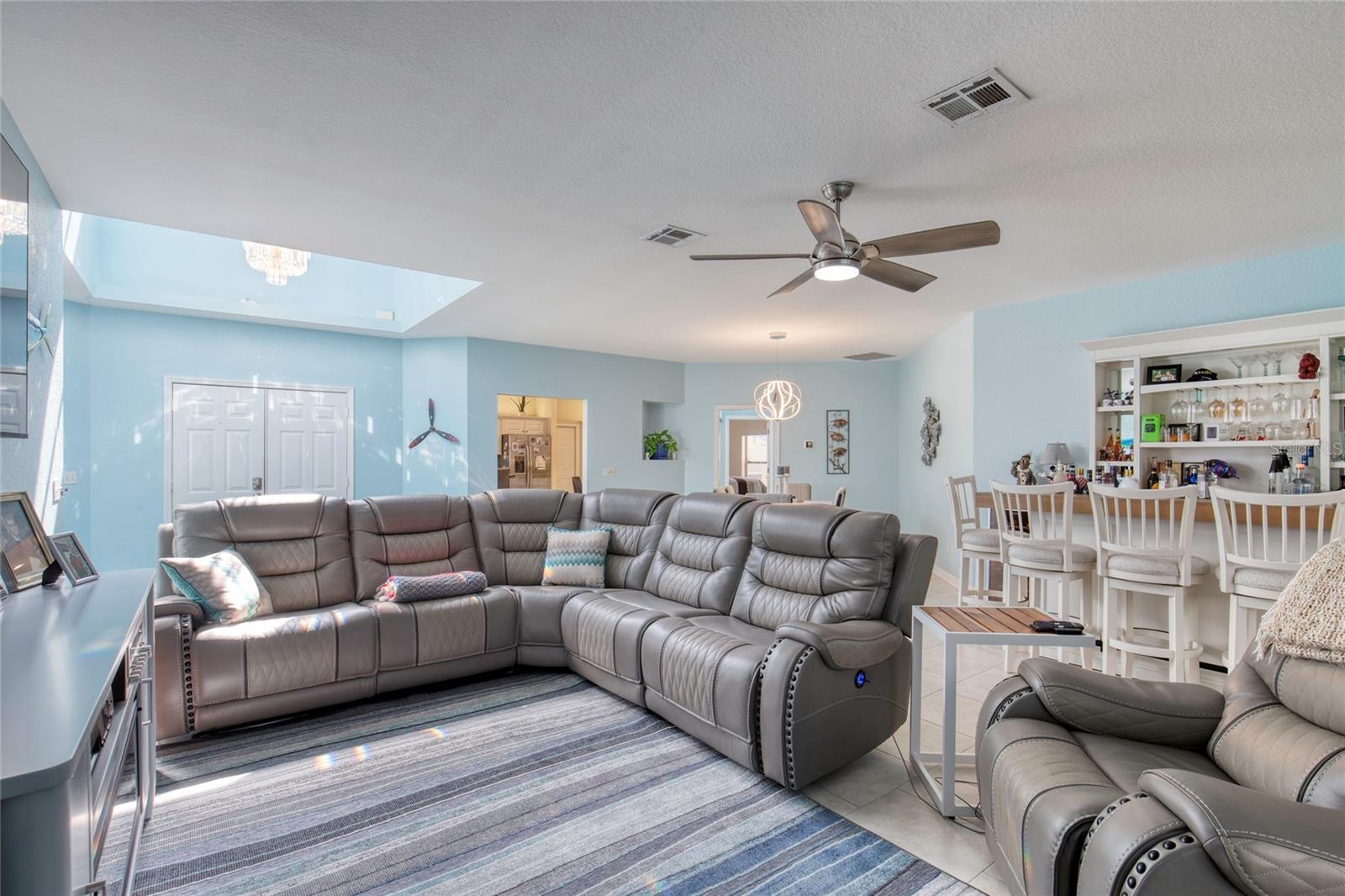Welcome to your dream home in the prestigious, guard-gated Spruce Creek Fly-In — one of the most unique residential airpark communities in the country. This 3-bed, 2-bath, 3-car garage pool home blends elegance and comfort. Inside, enjoy a bright open-concept layout with tile flooring throughout and abundant natural light. The spacious kitchen features granite countertops, stainless steel appliances, and ample cabinetry — perfect for daily living or entertaining. The primary suite is a peaceful retreat with his-and-hers vanities, a garden tub, walk-in shower, and generous closet space. Two additional bedrooms offer flexibility for guests, family, or office use. Step outside to your private, renovated heated saltwater pool and spa with new pavers, screening, and covered lanai. All this is located in Spruce Creek Fly-In, a 24/7 guard-gated community (separate membership fees apply) with a private airport runway, golf course, tennis, pickleball, parks, trails, and clubhouse amenities.