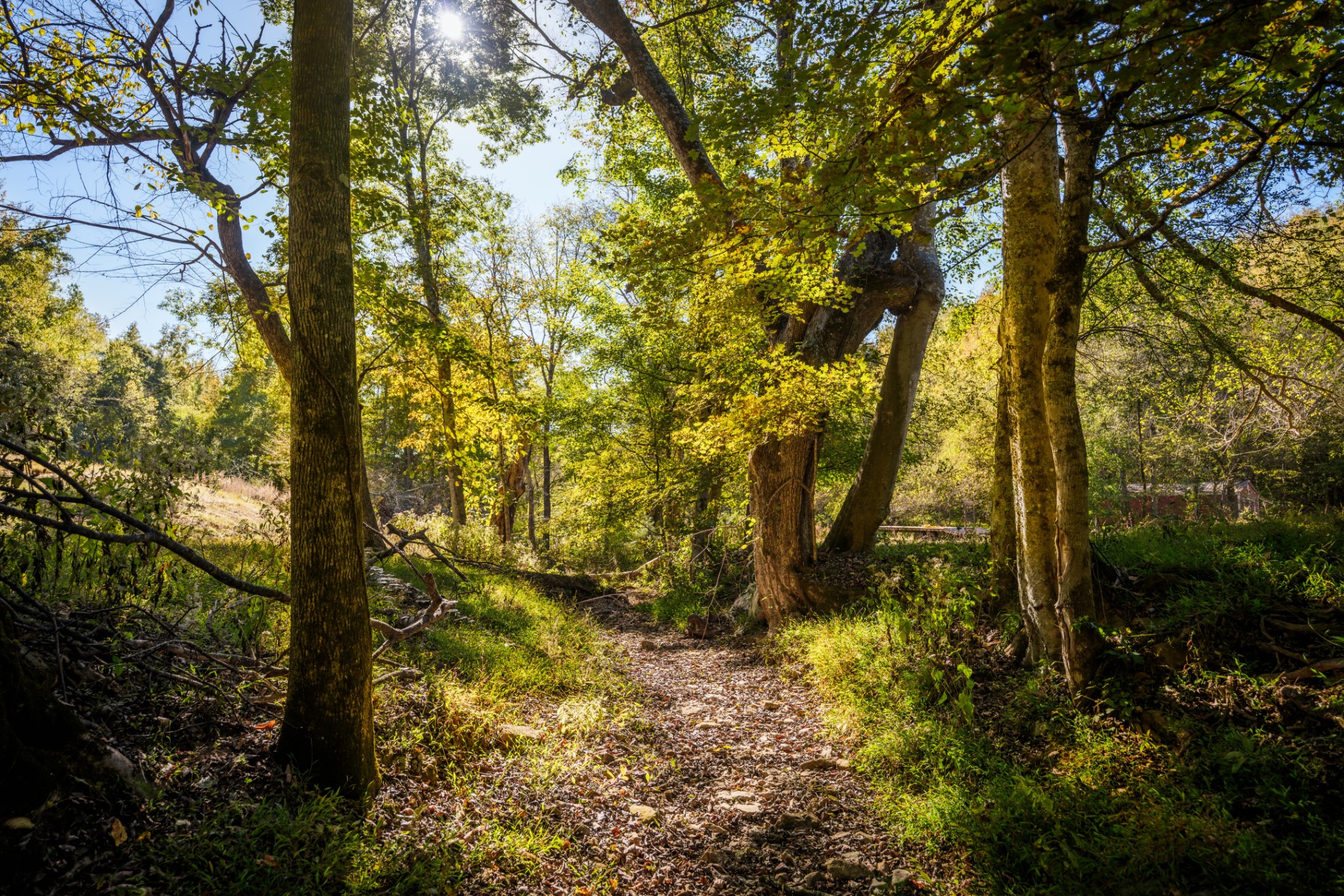 The farm’s natural resources are unmatched — thousands of dollars in mature walnut and oak timber, three year-round springs, five ponds, two creeks, and even a picturesque waterfall. A well-maintained trail system runs throughout, including a historic Wells Fargo wagon trail on the north end of the farm.