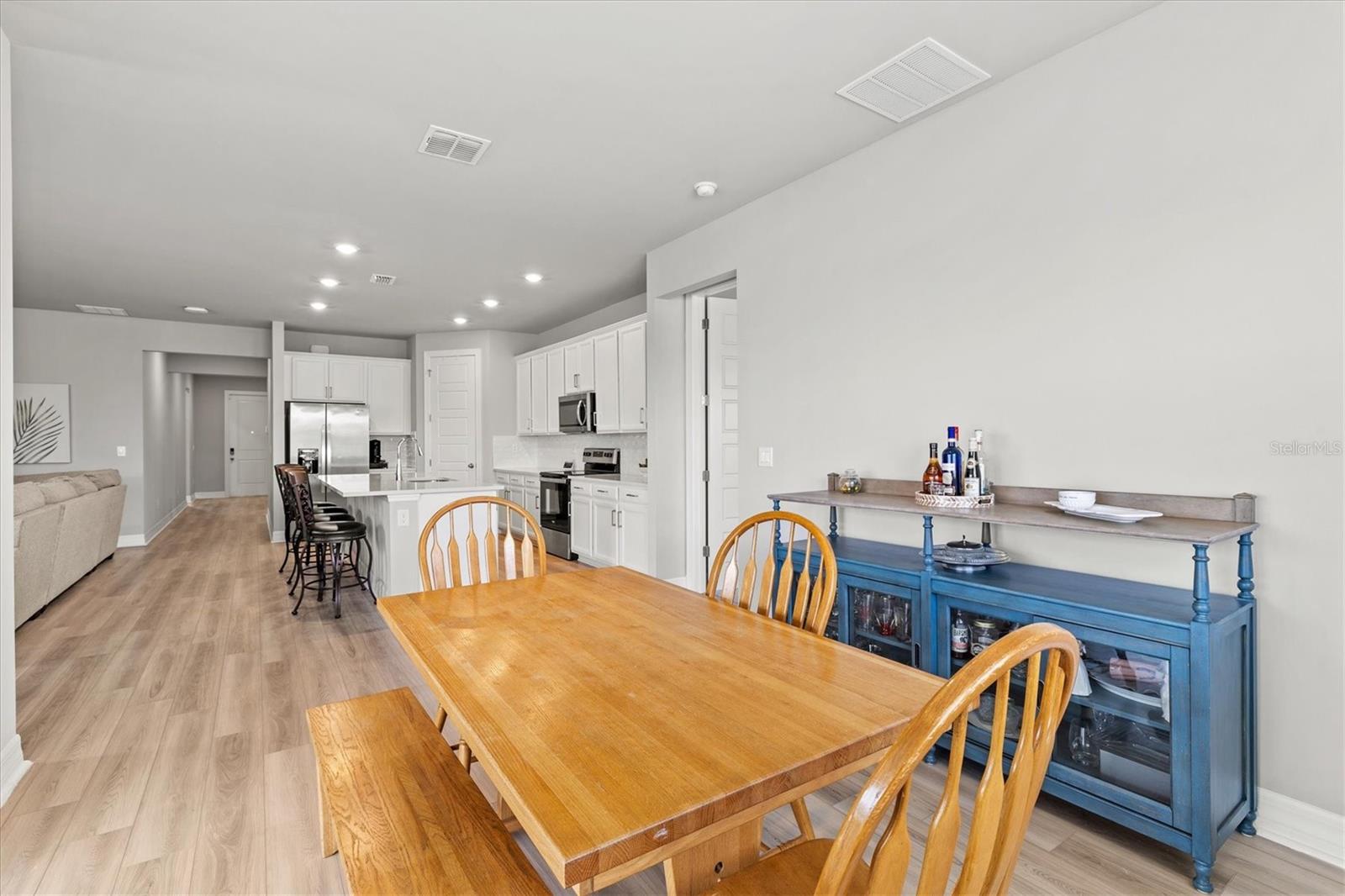 Step inside to upgraded luxury vinyl plank flooring and a light-filled, open-concept living space. The chef’s kitchen is a dream with an oversized quartz island, upgraded classic white cabinetry, and a timeless subway tile backsplash.