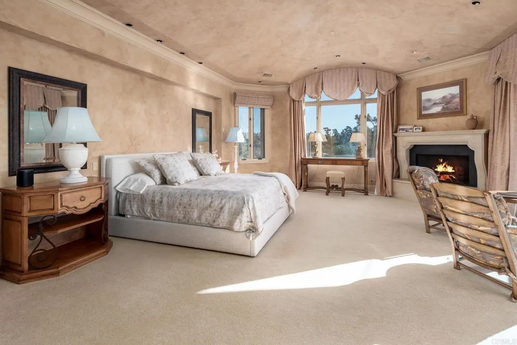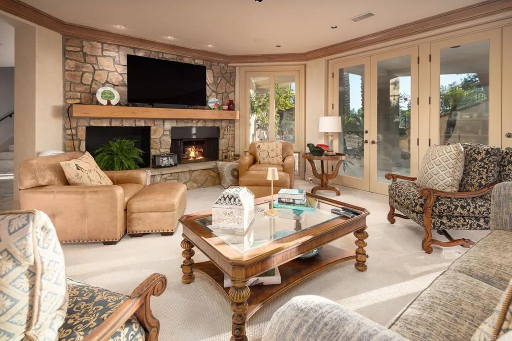 Live the luxury lifestyle on this Premier lot within the gated community of The Farms, one of Rancho Santa Fe's most beautiful, peaceful, private, and picturesque communities. Ideally situated to take advantage of the 270+ degree views of the lush golf course below all the way to the Pacific Ocean. This custom residence features high end finishes and design elements including soaring ceilings, large windows and glass doors allowing for an abundance of natural light, beautiful wood accents while encompassing over 10,000 sq feet of gracious living space. The home exudes elegance and provides the ultimate venue for indoor/outdoor living and entertaining. As you enter the gated courtyard with large wooden gates you feel a sense of beauty and warmth and are mesmerized by the stunning views. The formal living room with stone fireplace and service bar has access to an extensive rear loggia through multiple sets of French doors, which is perfect for entertaining, and for capturing views of the pool, pristine grounds and the views of the golf course, mountains, ocean, and sunsets. There is a large formal dining room and an oversized wood flanked office/library/ game room. The kitchen is a true chef's dream, perfectly detailed with top-of-the-line appliances, crisp slabs of stone, custom cabinetry, large center island, oversized butlers pantry, and a spacious informal dining area. The kitchen opens to a warm and inviting family room with large media center, fireplace and doors that open to the oversized veranda.the ideal venue for indoor/outdoor dining, entertaining and relaxing. The