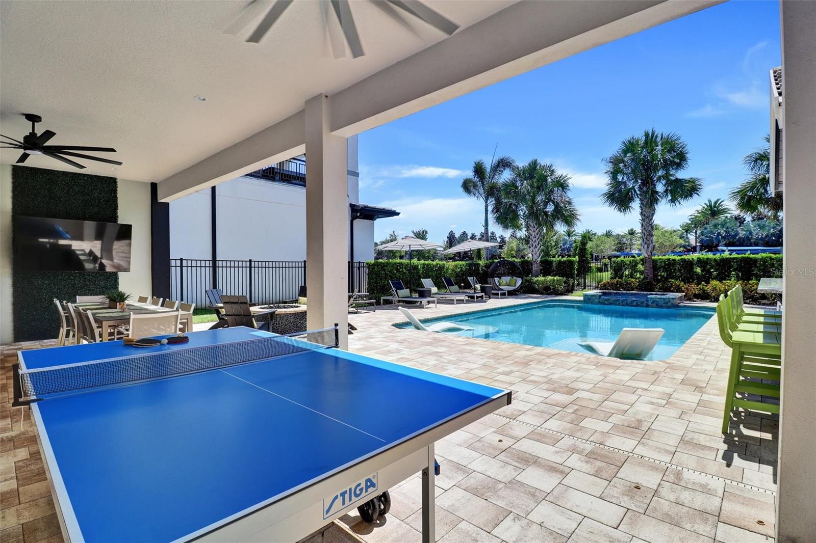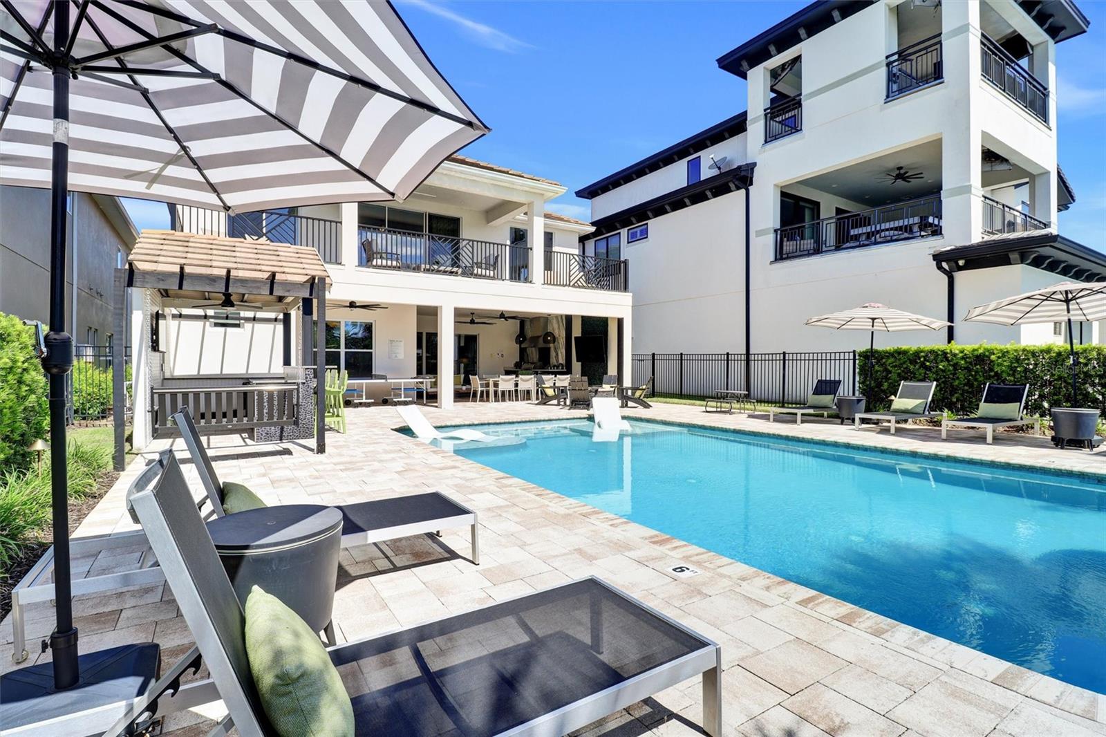 Outdoor living is a true highlight, with a heated LED lit pool, spa, sun shelf, ping pong table, conversation pit seating, fire pit, and a spacious paver deck with ample chaise lounge chair seating. Additional upgrades include front and rear balconies, covered front porch, pool bath, dedicated laundry room, enhanced interior and exterior lighting and dynamic designer touches throughout. Offered fully turnkey, this home is immediately ready for personal occupancy or inclusion in a short term rental program. ACTIVE MEMBERSHIP AVAILABLE! Reunion Resort and Club is a beautifully landscaped guard gated, active lifestyle community featuring three signature golf courses by Nicklaus, Watson, and Palmer, two clubhouses, twelve community pools, a world class water park, tennis and pickleball courts, fitness center, and multiple dining options highlighted by Eleven, a rooftop tapas bar with nightly Disney fireworks views. Bear’s Den is an intimate gated enclave of high end custom homes within the gated Reunion Resort, with a short walk to the Nicklaus clubhouse and easy car access to the rear-guard gate and the 429 and I-4. HOA fees include guard gated security, landscaping, cable, internet, and trash service. Short term rentals are permitted. This property combines a prime location, exceptional layout for family living, and all the features that make for a top performing rental in one of Central Florida’s most exclusive resort communities.