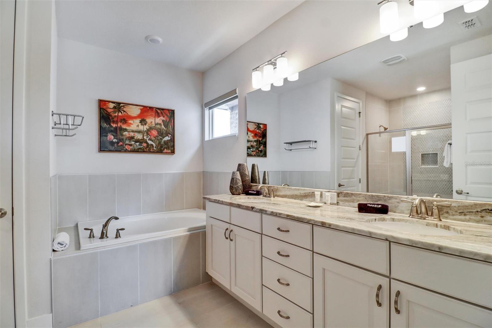 This residence backs directly to Golden Bear Park and features a private gate leading to sand volleyball, a putting green, playground, and dog park. Inside, two owner’s suites, one on each level, include spa inspired bathrooms with dual sinks, walk in showers, separate tubs, and spacious walk in closets. The open concept main living area is designed for entertaining, with multiple sliding glass doors that extend the space outdoors to a large covered lanai with summer kitchen, gas fire pit, and resort style bar for year round enjoyment.