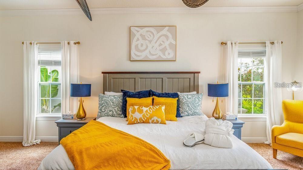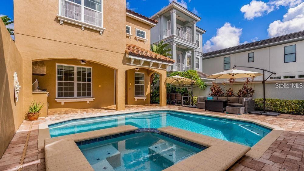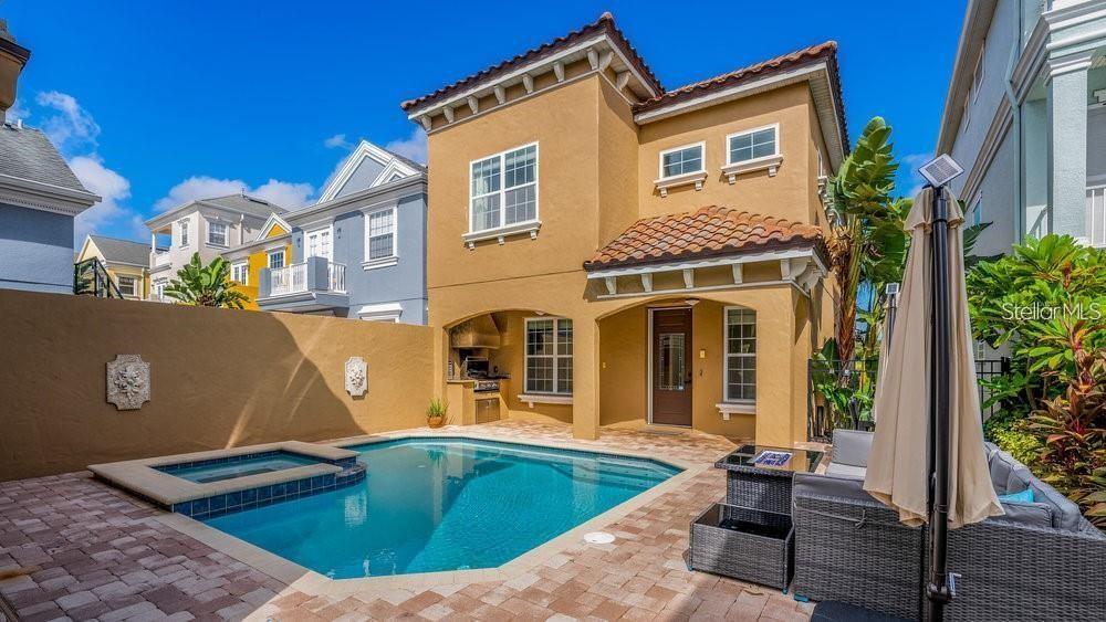 This one-of-a-kind, turnkey luxury estate is in the exclusive, gated golf course community of Reunion Resort. Fully furnished and designed for upscale living, this immaculate two-story home spans over 3,100 sq ft. and includes a newly renovated detached in-law suite. The main house features 3 spacious bedrooms, each with its own private bath, plus 3 bathrooms. The detached in-law suite offers 1 bedroom and 1.5 baths, providing additional privacy and versatility. This stunning property boasts 8-foot doors, 16" tile flooring, crown molding, and French doors leading to porches and balconies with breathtaking views of the Arnold Palmer-designed golf course, multiple fairways, and nightly Disney fireworks. Relax in the heated courtyard pool with a spa for ultimate comfort. Located in Reunion Resort, this home offers access to world-class amenities, including three championship golf courses (Palmer, Watson, and Nicklaus), on-site dining, a water park, 13 community pools, tennis courts, and a luxurious day spa. With convenient access to I-4 and 429, you'll be just minutes away from Central Florida's top attractions and entertainment. Services include lawn care, irrigation, interior and exterior pest control, 6 HD cable boxes, high-speed internet, 24-hour gated security, and more ensuring effortless luxury living. Don't miss the chance to rent this exceptional home in one of Central Florida's most resort communities!