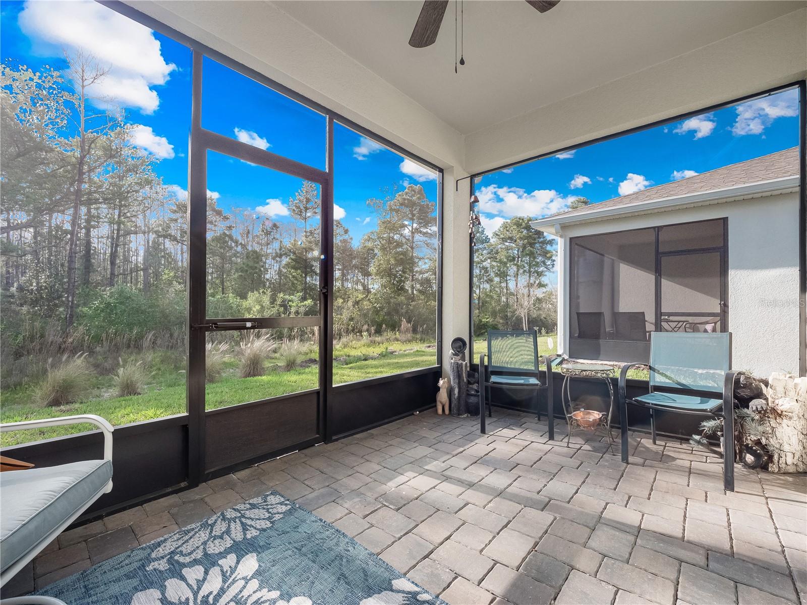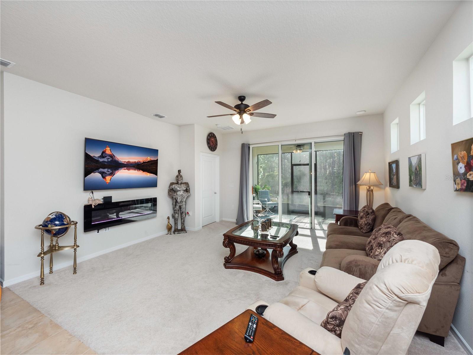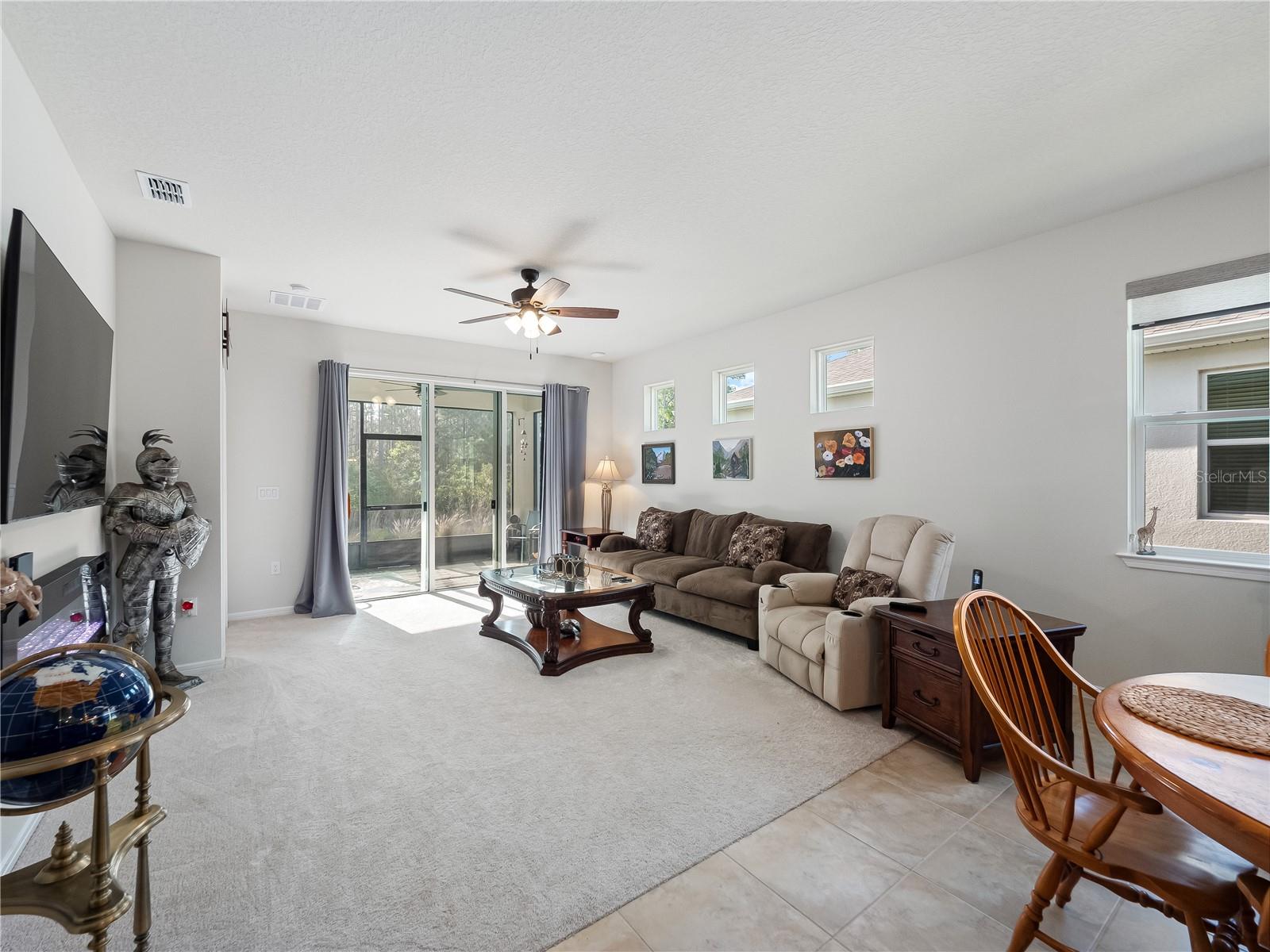 **REDUCED**-CONSERVATION VIEW**-SCREENED IN LANAI**- SELLER MOTIVATED! This Popular Ellenwood Villa has Two Bedrooms, Two Bathrooms with walk in showers, AND a Den or Flex Room that can be used as an office. As you enter the front door, you are greeted by a large open foyer with a well-appointed kitchen, living/dining room combo and a glass sliding door leading to a screened lanai with a private conservation view. The kitchen features 42-inch Maple Cabinetry, quartz counter-tops and a GAS range. There is tile in the kitchen, dining, and bathrooms. All other areas are luxuriously carpeted. This home has a 2-car garage and separate laundry room as you enter from the garage with a full-size washer and dryer and tankless water heater. This villa is so easy to live in and upkeep, it is perhaps the most economical way to experience all that Del Webb has to offer. The lawncare and internet as well as exterior painting and scheduled roof replacement are included in the HOA fees.