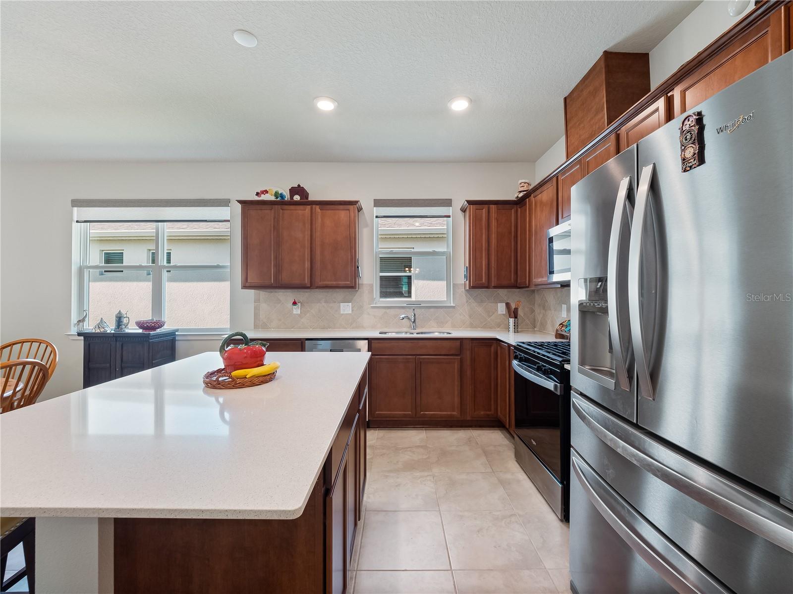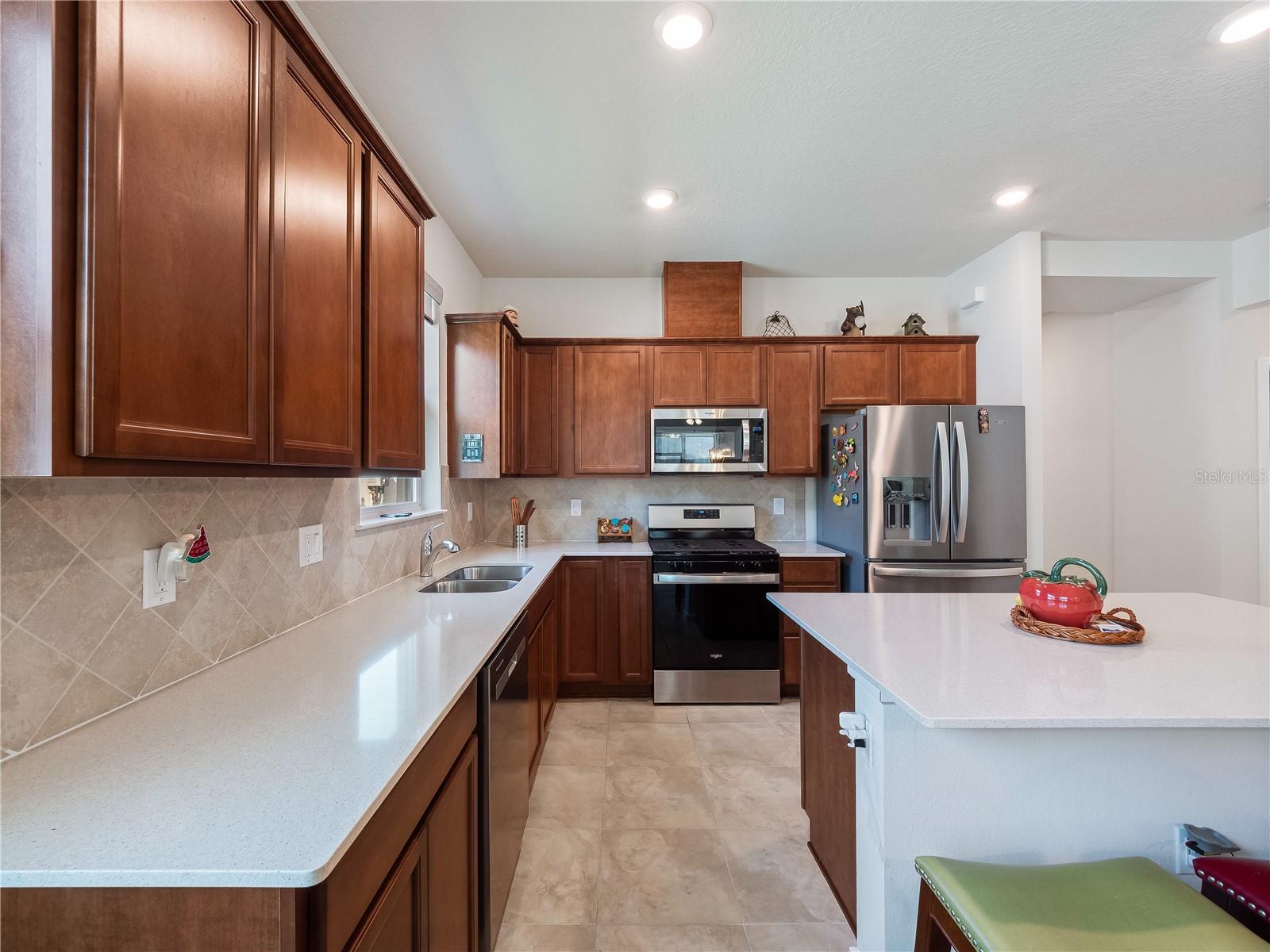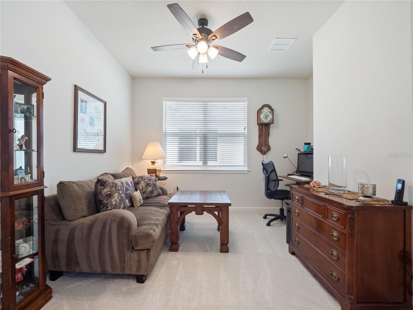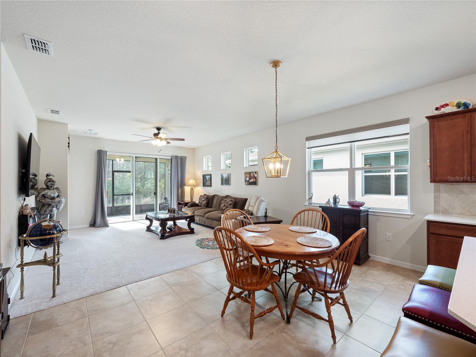**REDUCED**-CONSERVATION VIEW**-SCREENED IN LANAI**- SELLER MOTIVATED! This Popular Ellenwood Villa has Two Bedrooms, Two Bathrooms with walk in showers, AND a Den or Flex Room that can be used as an office. As you enter the front door, you are greeted by a large open foyer with a well-appointed kitchen, living/dining room combo and a glass sliding door leading to a screened lanai with a private conservation view. The kitchen features 42-inch Maple Cabinetry, quartz counter-tops and a GAS range. There is tile in the kitchen, dining, and bathrooms. All other areas are luxuriously carpeted. This home has a 2-car garage and separate laundry room as you enter from the garage with a full-size washer and dryer and tankless water heater. This villa is so easy to live in and upkeep, it is perhaps the most economical way to experience all that Del Webb has to offer. The lawncare and internet as well as exterior painting and scheduled roof replacement are included in the HOA fees.