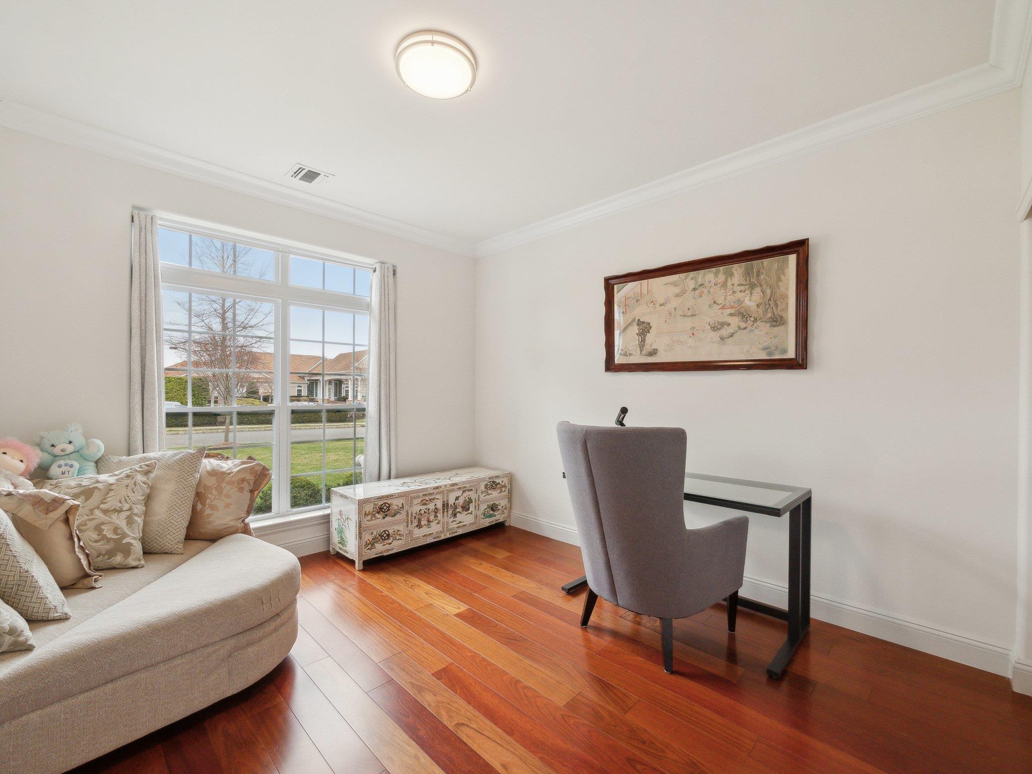 Welcome to 5 Hamlet Woods Drive, an exceptional residence nestled in the prestigious gated community of The Hamlet Estates at St. James. This stunning home offers the perfect blend of luxury, privacy, and convenience with resort-style amenities at your fingertips. Featuring 3 spacious bedrooms and 2.5 bathrooms, this home offers a bright, open floor plan with soaring ceilings, upgraded moldings, and luxurious finishes throughout. The chef’s kitchen is a standout, boasting stone countertops, high-end appliances, and seamless flow into the living and dining spaces—perfect for entertaining. The elegant stone flooring adds warmth and sophistication to the main level. Additional highlights include foam insulation in the basement for year-round energy efficiency and comfort, as well as professionally landscaped grounds—ideal for outdoor living. Enjoy the lifestyle you deserve with 24/7 gated security, a clubhouse, fitness center, pool, basket ball courts, and scenic walking paths, Bocci, pond w paddle boats—all part of the exclusive Hamlet community. Located just minutes from golf courses, beaches, shopping, dining, and the LIRR, this home is perfect for those seeking luxury living in a prime North Shore location. Don't miss your chance to own in one of Long Island’s most desirable communities!