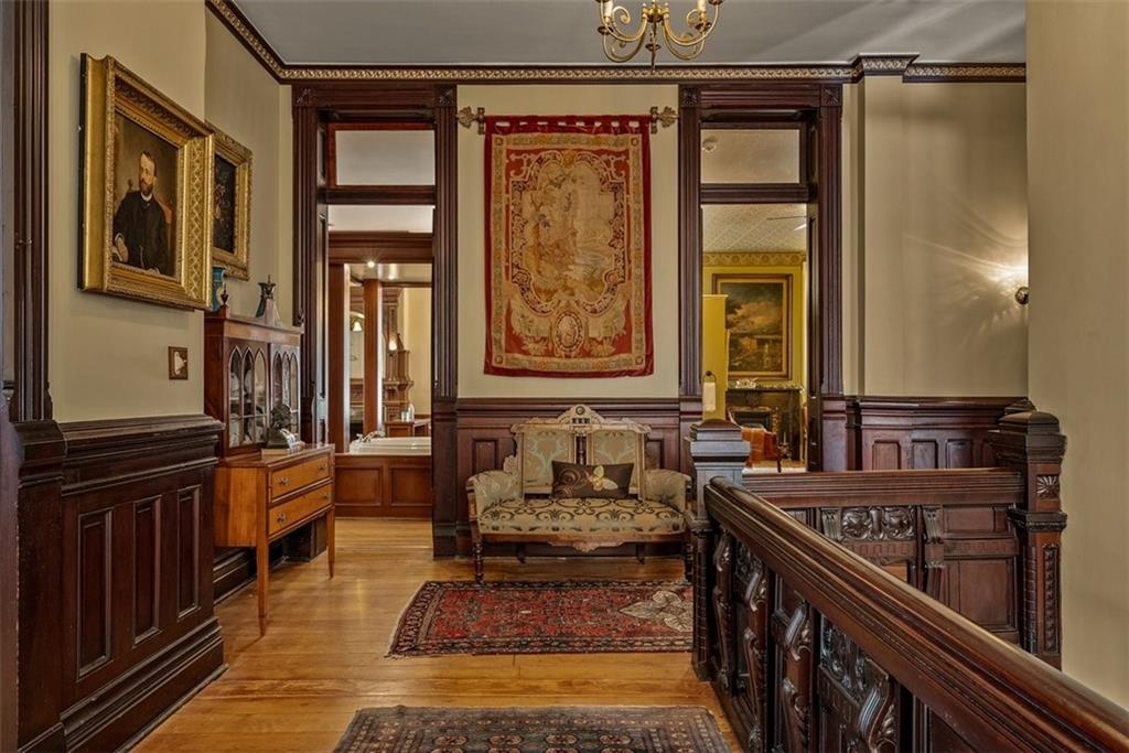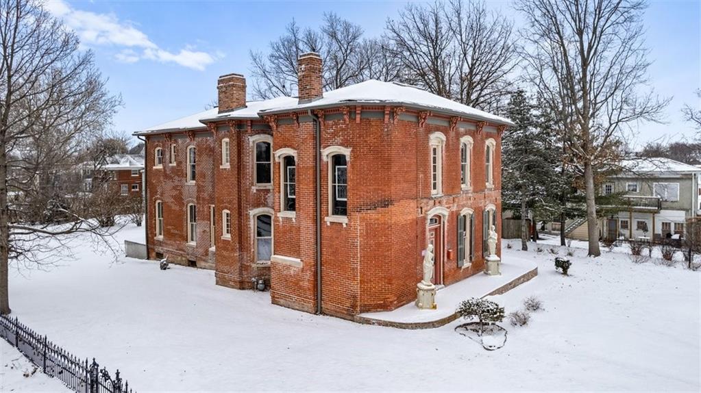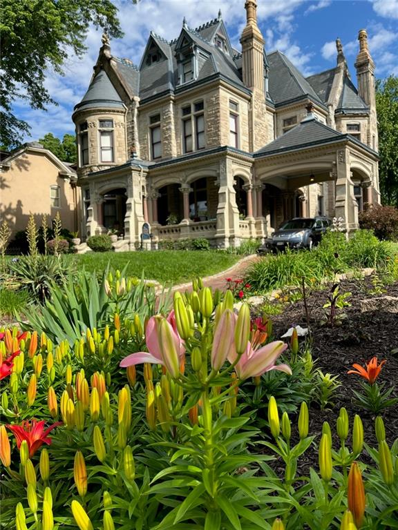Shakespeare Chateau Inn and Gardens, located in the historic Hall Street District, is one of St. Joseph’s premier homes. A SHORT DRIVE TO KANSAS CITY INTERNATIONAL AIRPORT! Built in 1885, this Chateauesque style home was built by Nathan P. Ogden. This high-Victorian mansion is an architectural gem, showcasing 47 original stained glass windows, exquisite hand-crafted woodwork, an expansive encaustic tile foyer, ornate plaster ceilings, and many original chandeliers - just to name a few. The main house is a fully furnished turn-key bed and breakfast with six elegant suites, a spacious commercial kitchen and wine cellar perfect for small gatherings. Four guest rooms on the second level are furnished with period art and antiques each named after works of Shakespeare. Two additional suites on the third level are ideal for long term guests. The carriage house provides three apartments, perfect for longer-term rentals, adding versatility to the property. 819 Hall Street is also included. This all brick house has been refurbished on the exterior and inside is a blank canvas, stripped to the studs and ready for a transformative rehab. Whether you envision a personal residence, a thriving B&B, or an event space, the possibilities here are endless. Live your dream and make Shakespeare Chateau your next great chapter. This is a RARE OPPORTUNITY to own a piece of history. This house has changed hands only five times in 140 years and remains as magnificent as the day it was built.