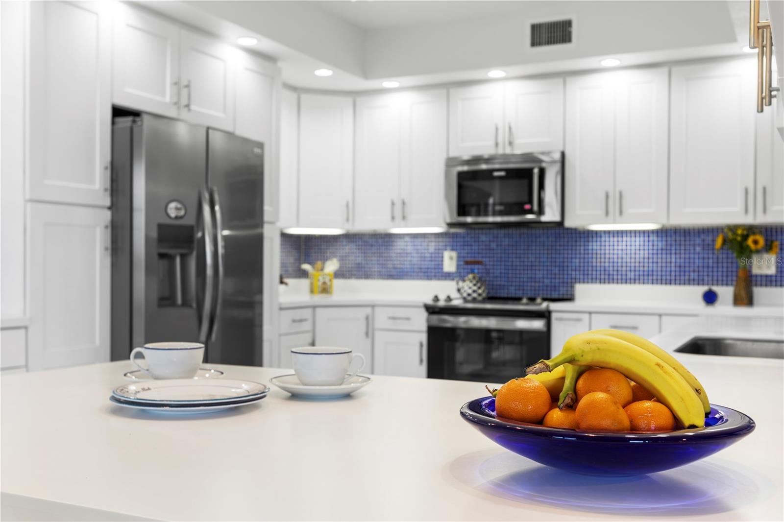 One or more photo(s) has been virtually staged. Welcome to this beautifully reimagined 3-bedroom, 2.5-bath waterfront residence where modern sophistication meets relaxed coastal living. Spanning 1,868 square feet, this meticulously remodeled condo showcases a seamless open-concept design that flows effortlessly onto an expansive veranda overlooking the wide-open waters of Boca Ciega Bay. Sunlight fills the interiors by day, while evenings are framed by breathtaking sunset vistas. The chef’s kitchen combines style and functionality with crisp white cabinetry, striking blue tile accents, generous storage, and a built-in wine cooler. Adjacent, the dining area—surrounded by a wall of windows and opening directly to the veranda—creates the perfect backdrop for both intimate dinners and guest gatherings. The primary suite offers a private retreat, complete with sweeping water views, electric window treatments, a custom walk-in closet, and a spa-inspired bath. A thoughtfully designed split floor plan ensures privacy, with two additional bedrooms—one with an adjacent full bath and the other accented by plantation shutters—plus a convenient half bath for guests. Recent upgrades include updated windows and a brand-new 2024 HVAC system and water heater. A reserved garage parking space adds everyday convenience. Hurricane shutters throughout. Bacopa Bay is one of St. Petersburg’s most coveted gated communities, recently completing Florida’s milestone inspections and an extensive list of updates, including new roofs, elevators, seawall replacement, fresh landscaping, and infrastructure improvements. Residents enjoy resort-style amenities, such as two heated pools (including a 25-meter lap pool), a jetted hot tub, Har-Tru tennis courts, a state-of-the-art fitness center, EV charging, a lagoon with waterfall, a private beach, and lushly landscaped grounds—all within a secure 24/7 guard-gated setting. Ideally situated, this community places you just minutes from the Gulf beaches, Ft. De Soto Park, vibrant downtown St. Petersburg, and only 30 minutes from Tampa International Airport. Discover the perfect balance of luxury, convenience, and coastal serenity in this exceptional Bacopa Bay residence.