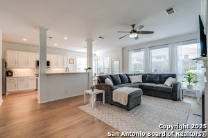Exterior Features :Patio Slab, Privacy Fence, Double Pane Windows, Has Gutters, Mature Trees