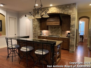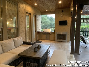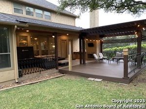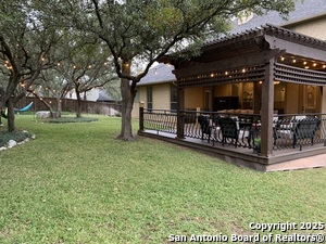 Exterior Features :Patio Slab, Covered Patio, Bar-B-Que Pit/Grill, Gas Grill, Deck/Balcony, Privacy Fence, Wrought Iron Fence, Sprinkler System, Double Pane Windows, Has Gutters, Special Yard Lighting, Mature Trees