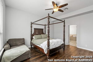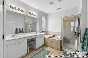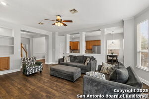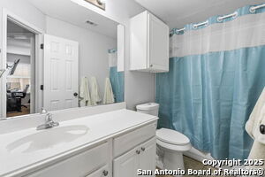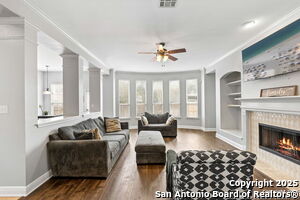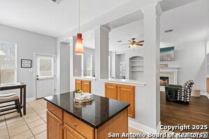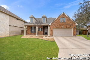 Charming 5 Bedroom home in a Cul de sac. Discover the epitome of comfort and convenience at 25410 Mesa Crest, nestled in the sought-after Canyon Rim Subdivision, a Stone Oak neighborhood of San Antonio, Texas. This standard residential property boasts five bedrooms, three baths, and a spacious 2,606 square feet of living area, making it an ideal choice for those seeking a blend of elegance and practicality. Step inside to find an inviting interior that features two living areas, perfect for both relaxation and entertaining. The main bedroom, conveniently located on the ground floor, offers privacy and tranquility. The home's design maximizes natural light, creating a warm and welcoming atmosphere. High ceilings add to the sense of space, while a cozy fireplace and built-in shelves enhance the living area's charm and functionality. An additional bedroom is located downstairs perfect for guests and extended family. The kitchen is a culinary enthusiast's dream including a refrigerator, microwave, range, and dishwasher. Granite countertops and a stylish tile backsplash add a touch of sophistication, making meal preparation a delight. Outside, the property features a durable brick and siding combo, complemented by a large backyard that offers ample space for outdoor activities and gatherings. Located on a cul-de-sac within a gated community, this home provides a safe and peaceful environment. The Stone Oak area is renowned for its top-rated schools, parks, and a community pool and playground with a sports court, all within close proximity. This traditional home combines a spacious, open floor plan with numerous modern upgrades, making it a perfect fit for families and individuals alike. Don't miss the opportunity to make this exceptional property your own. Reach out today to schedule a showing and experience firsthand the comfort and convenience that 25410 Mesa Crest has to offer.