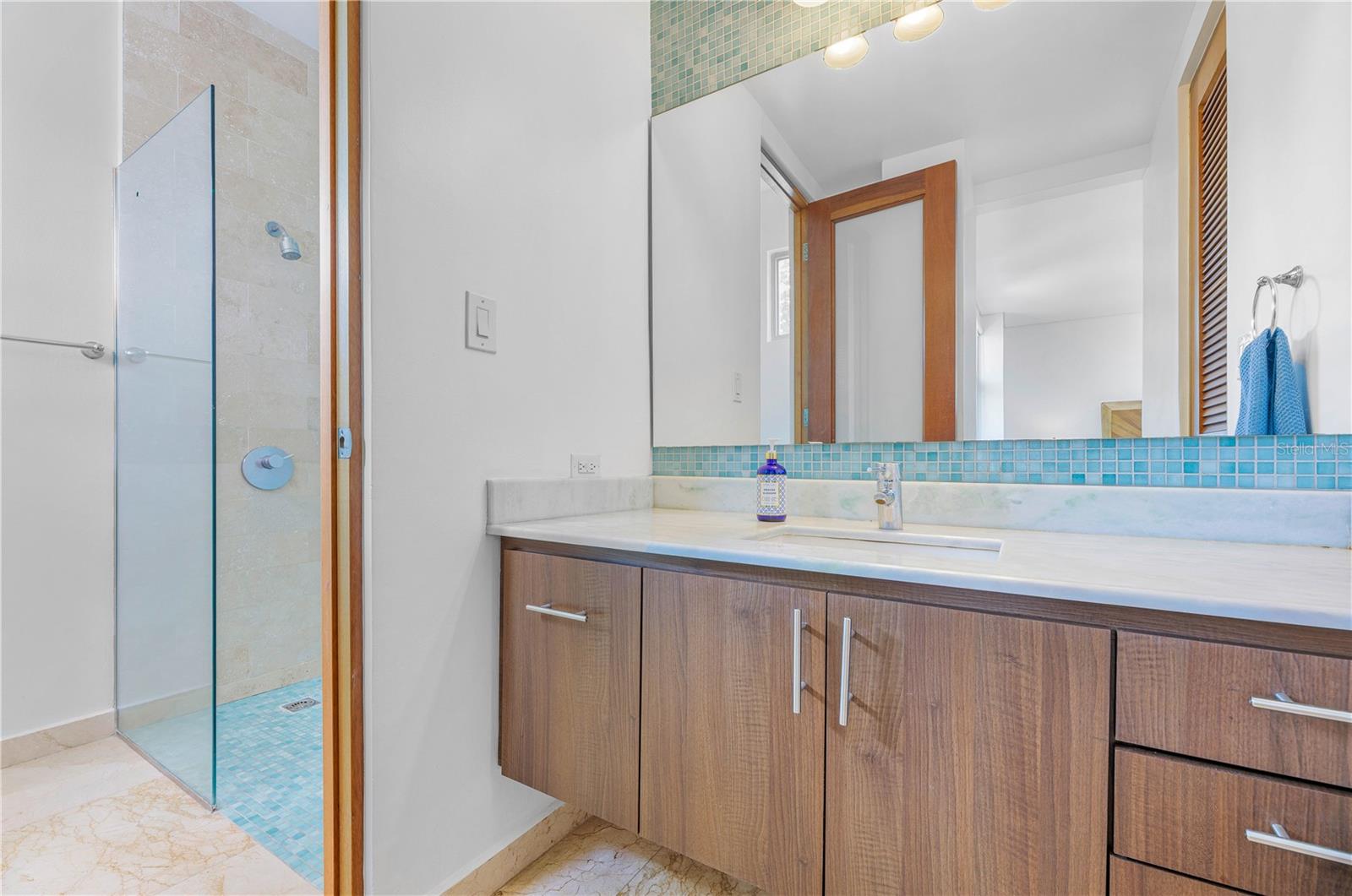 Set within the sought-after Santa Teresita enclave of San Juan, 2200 Calle Cacique brings together classic architectural lines and thoughtful modern updates. The residence offers five generously sized en suite bedrooms plus a powder room, providing comfort and privacy for both daily living and hosting. Marble floors extend throughout the home, while the open layout and double-height living room fill the space with natural light and an easy sense of openness. An additional living space connects seamlessly to the covered terrace, enhancing the home’s indoor-outdoor flow and creating an inviting setting for relaxed gatherings. Outdoors, a swimming pool framed by mature greenery and a private terrace off the primary suite capture cooling sea breezes and soft light throughout the day. The primary bathroom is finished with a double shower and refined details that add a subtle touch of luxury. Designed with both livability and flexibility in mind, the property includes a full generator and a cistern, offering reliability and peace of mind year-round. Each bedroom enjoys its own private bath and ample storage, ensuring comfort. Santa Teresita offers a relaxed coastal setting just moments away from the sandy beaches of San Juan’s north coast. The neighborhood is known for its quiet, tree-lined streets and gated environment, providing a sense of privacy while remaining closely connected to the ocean and daily life by the shore. Morning strolls along the beach, afternoon swims, and evening sea breezes are all part of the rhythm of living in this highly desirable beachside community. Its location allows for easy access to popular destinations in Ocean Park and Condado Beach, including a wide selection of dining, cafes, schools, and local shops. Residents enjoy the balance of a residential atmosphere paired with the convenience of city amenities, all within a short drive of Old San Juan and Luis Munoz Marin International Airport.