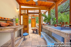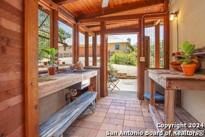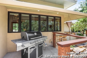 Exterior Features :Patio Slab, Covered Patio, Gas Grill, Deck/Balcony, Sprinkler System, Double Pane Windows, Storage Building/Shed, Has Gutters, Special Yard Lighting, Mature Trees, Detached Quarters, Additional Dwelling
