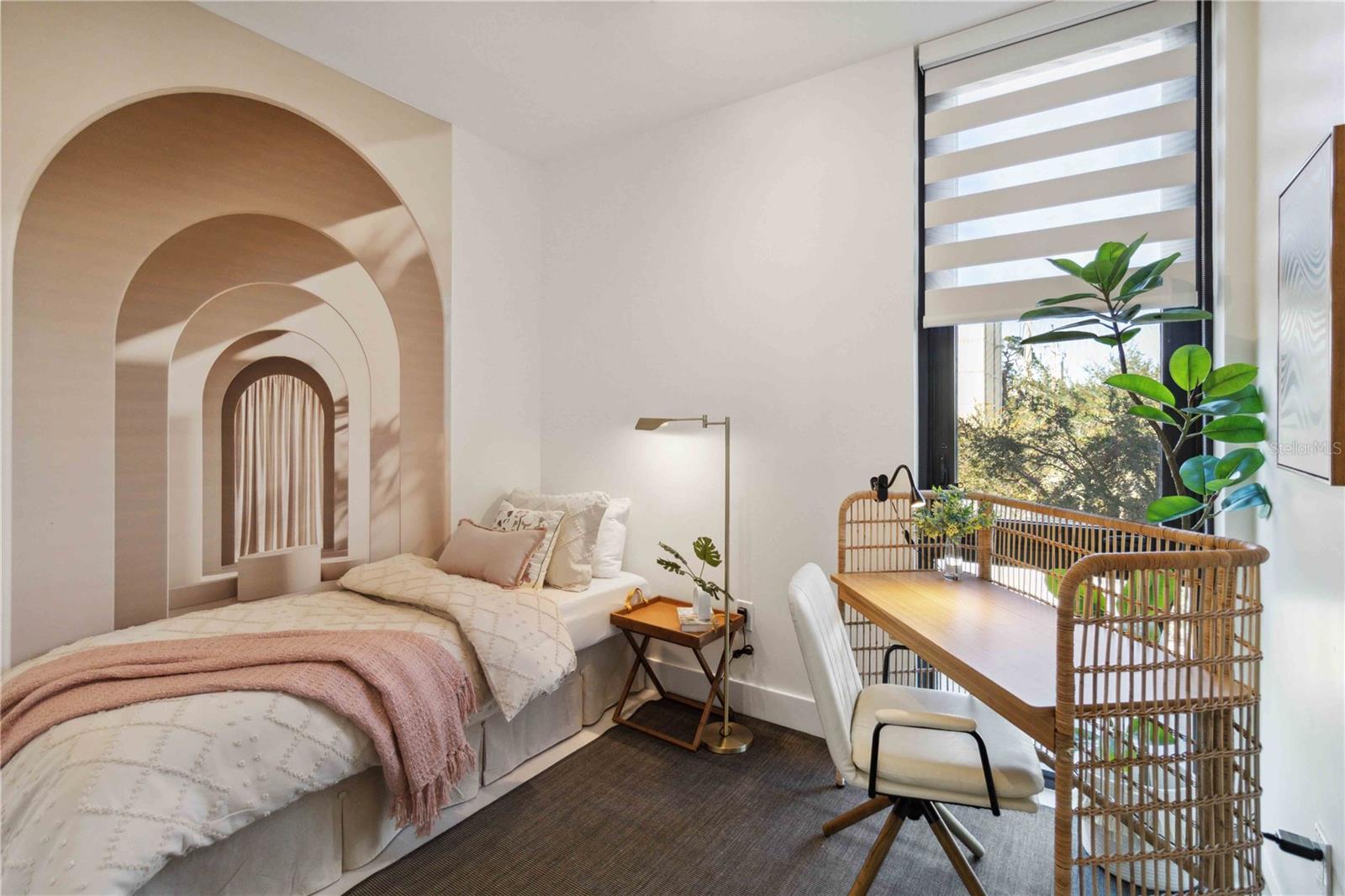 Experience exceptional downtown Sarasota living in Unit 208 at Zahrada 2—an architect-designed, new-construction condo that blends modern luxury, premium upgrades, and one of the most desirable locations in the Rosemary District. Designed by award-winning architects Halflants + Pichette, this contemporary two-bedroom loft-style residence is perfectly positioned near Sarasota’s most beloved restaurants, cafés, art galleries, theaters, and markets—plus Whole Foods, The Bay Sarasota, and the city’s best cultural venues. Just a short distance from the Saturday Farmers Market, Bayfront Park, Marina Jacks, Sarasota Opera, the Ballet, The Sarasota Modern, and the newly developed Bay Park, this home offers unmatched access to Sarasota’s vibrant urban lifestyle. For beach lovers, free trolley routes connect you to Lido Key and Siesta Key Beach, the #1 beach in the U.S. Inside, this beautifully crafted loft features soaring 12-foot ceilings and a dramatic wall of glass that fills the space with natural light. The split-level design enhances the modern aesthetic, while upgraded finishes create a true luxury living experience. The chef’s kitchen showcases sleek European slow-close cabinetry, quartz countertops, recessed lighting, and a stainless steel Frigidaire appliance suite. Ethernet ports in both bedrooms and the living room, fiber-optic WiFi, and Samsung Frame TV elevate both comfort and function. A rare highlight of this property is the large private outdoor terrace, surrounded by palm trees and maintained with an automatic irrigation system—a tranquil retreat ideal for relaxing or entertaining. Few downtown Sarasota condos offer outdoor living of this size and privacy. This residence is offered fully turnkey furnished, including all kitchenware, housewares, linens, bedding, towels, cleaning supplies, décor, and thoughtfully selected furnishings. The flexible second bedroom can be configured as a queen room, twin room with desk, or full office setup. A storage bed in the primary bedroom adds smart functionality. Additional upgrades include hurricane-impact windows and doors rated to 195 mph, block construction, porcelain tile flooring throughout, solid-core interior doors, Jack-and-Jill bathroom access, a powder room, washer/dryer, electronic Wi-Fi door locks and gate access, and fiber internet. Secure covered parking in the gated garage includes EV-charging prep so buyers may install a charger if desired. This property is truly “hands-off” for new owners. Housekeeping, landscaping, and AC maintenance can all transfer to the buyer for seamless continuity. Water is included in the HOA, reserves are fully funded, and the property has a proven rental history—earning approximately $6,000/month during high season—making it an exceptional option for investors seeking a 3-month, seasonal, or annual rental opportunity. Offering modern construction, premium upgrades, turnkey convenience, a private outdoor retreat, and a prime downtown Sarasota location close to The Bay Sarasota, this residence provides an elevated lifestyle that sets it apart.