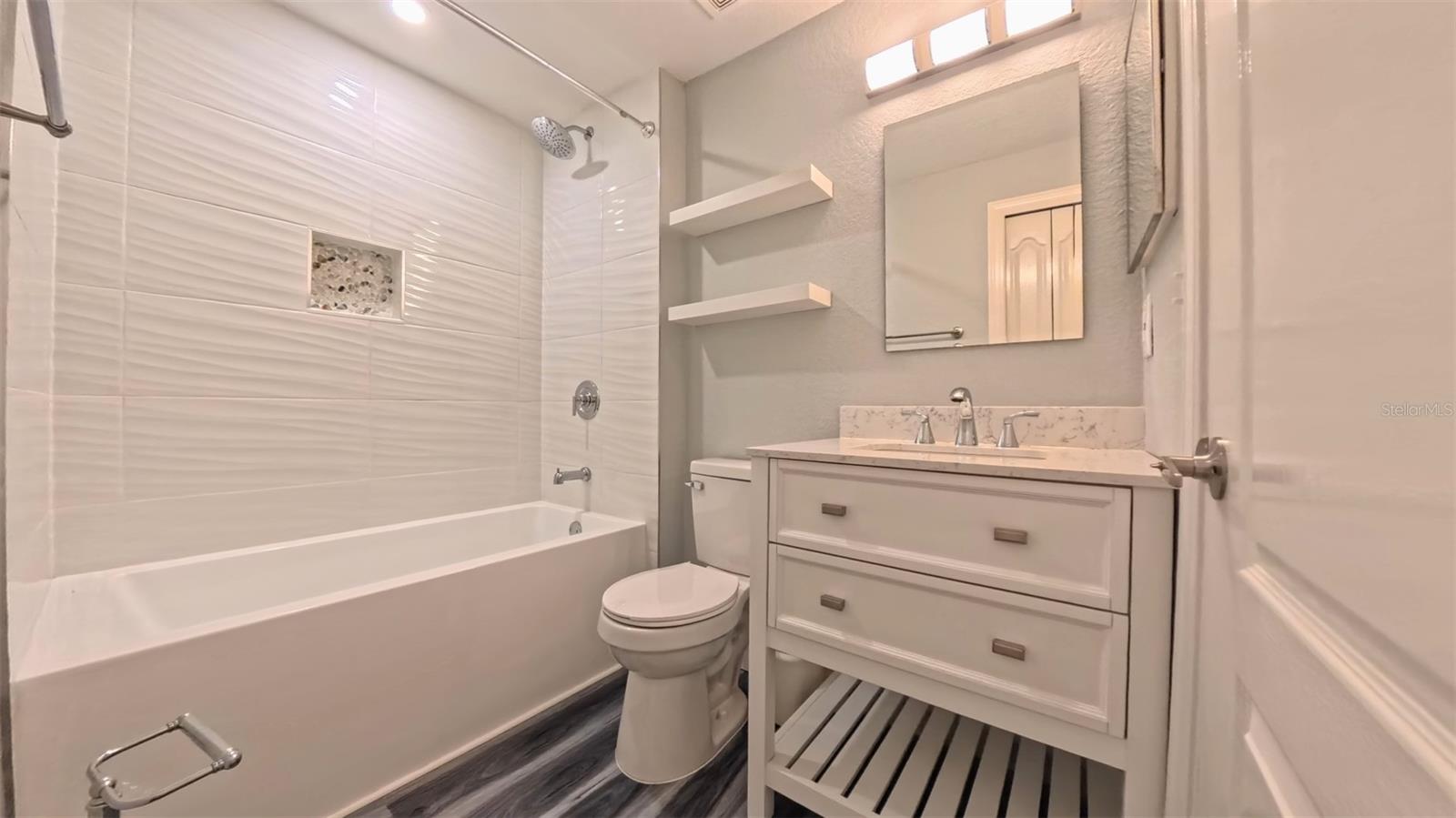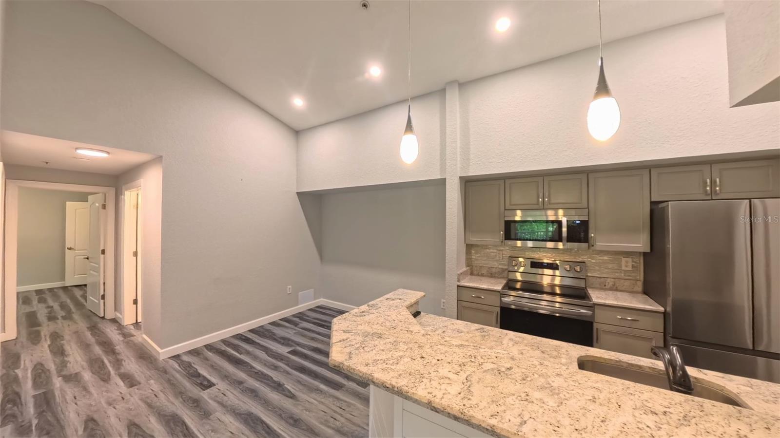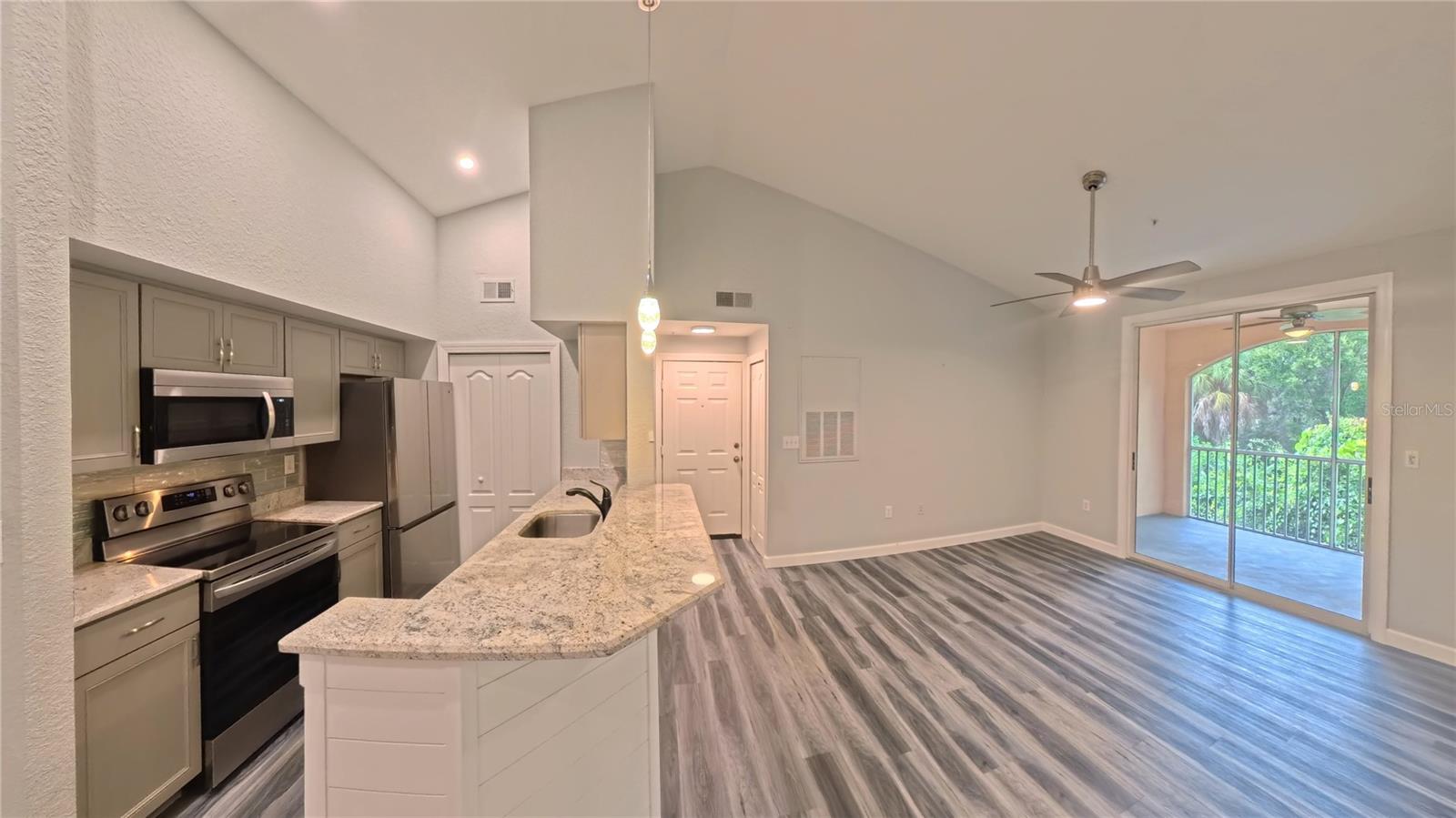 BEAUTIFULLY UPGRADED AND GREAT COASTAL LOCATION & CLOSE TO THE TOP-RATED U.S. BEACH ON SIESTA KEY. This 2-bedroom, 2 bath condominium home is an end unit on the 2nd floor with vaulted ceiling (top floor in the building). It has tree-top views and sky from the screened patio. It comes with a covered, lighted carport in front of the building and is conveniently located across from the clubhouse, pool, fitness center and mailboxes. It boasts beautiful wood laminate flooring, custom paint, shiplap in the living room, upgraded light fixtures and ceiling fans, new plumbing fixtures and door hardware throughout. It features an open floor plan with a raised breakfast bar that is central and shared with the living and dining areas. The kitchen features solid surface countertops, glass tile backsplash, custom cabinetry, stainless appliances and contains a side-entry laundry closet with a full-size washer and dryer. The private, master bedroom has 2 large windows, a walk-in closet and "en suite" bathroom. The shower is tiled and glass enclosed with a beautiful vanity and lighted mirror. The second bedroom has 2 large windows and is located across the hall from the main bathroom which includes a large tub with a shower. The building’s exterior has been renovated with impact resistant thermal windows. The floor plan is in the photo gallery. The condo is in the quiet, gated community named “Bella Villino Condominiums” which is located in the award-winning, master-planned development of “Palmer Ranch” in south Sarasota. The community boasts superb amenities not available at comparable properties in this price range and features an elegant clubhouse with a resort-style heated pool and spa, a large fitness center with state-of-the-art equipment including cardio machines, indoor racquetball and basketball, a billiards room, and a business center. The community has a tennis court, pickle-ball courts, a car detail area, gas grills with picnic areas, pet stations located around the property, an onsite property manager, and maintenance staff. It is close to world-class beaches, marinas, the popular Legacy Trail (bicycle, jog, or walk), shopping centers with a Costco, Target, Publix, Walgreens, CVS, various banks, restaurants, golf courses, art centers, museums, and so much more. This unit is ready for a new owner!