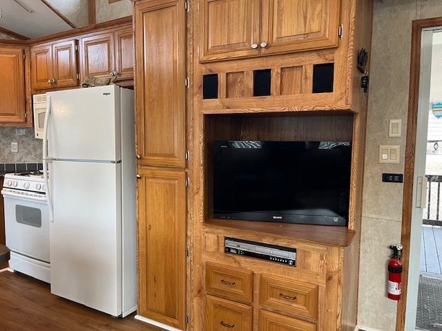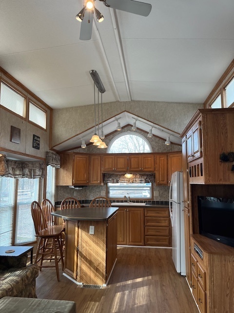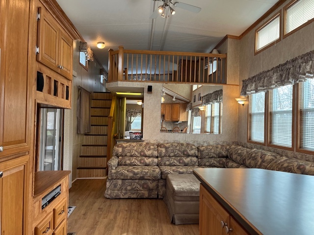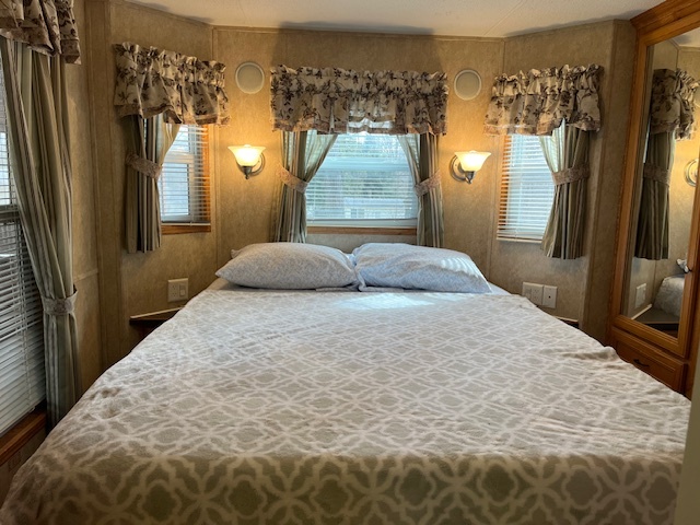 This one is THE ONE! This 2007 Kropf Park Model has all the bells and whistles. Let's start with the outside: paved driveway, huge covered deck, screened room overlooking the wooded back and a shed for storage. The immaculate inside has it all! Tons of counter and cabinet space in the kitchen with a island to accompany 4 chairs plus additional storage in the island. There is a built-in entertainment center in the living room with a large sectional sofa. The master bedroom has plenty of space and lots of closet/shelves to accommodate all! The HUGE double loft offer additional sleeping and hang out space. Fully furnished and ready for it's next owner to start living the camper life on lot 1240! This is a category 5 lot with yearly dues of 2656.15 that includes water, electric and garbage. Woodsmoke Ranch amenities: 2 pools, 2 stocked fishing ponds, 3 pavilions, basketball courts, sand volleyball, gaga ball, bags, 2 playgrounds, RC car racetrack, baseball field, laundromat, convenience store, cafe, horse stables (for rent), adult lounge, Mygrain Saloon, events planned year long and so much more. Gated community; showings by appointment only. RV campground community, cannot be a primary residence.