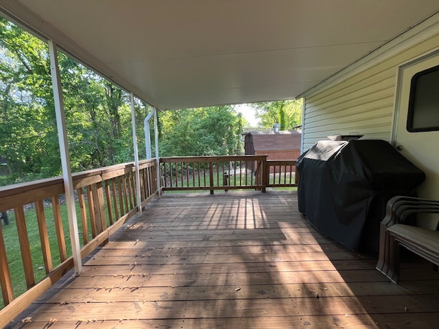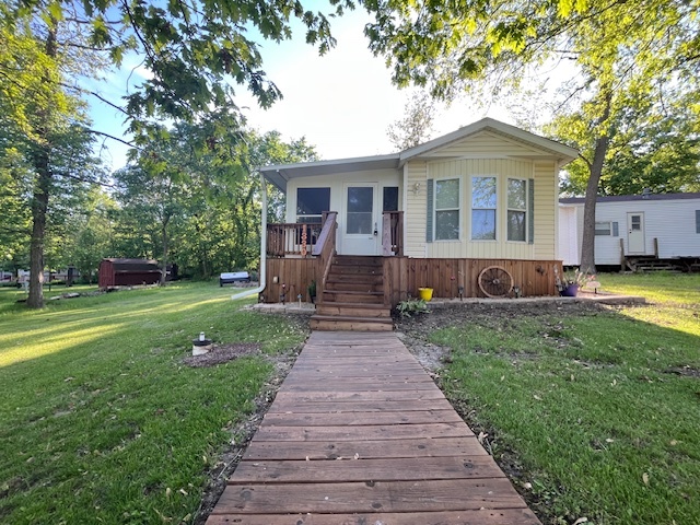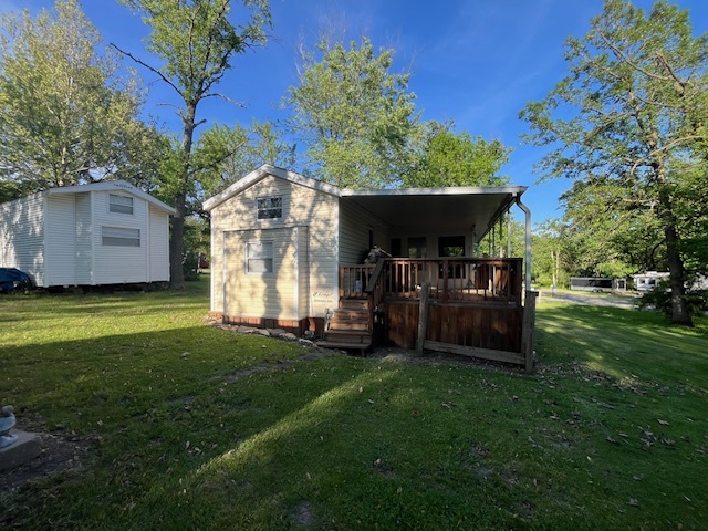 Located within the gated campground community of Woodsmoke Ranch in Seneca, IL, Lot 1330 offers a well-maintained 1993 Kropf Park Model with 1 bedroom and a bunk room. The main bedroom features built-ins and a closet, while the bunk room currently includes one bed with space to easily add a second. Recent updates such as fresh paint and new flooring completed approximately 1.5 years ago. The attached screen room, deck with a roof that was replaced about 3 years ago, and storage shed provide ample outdoor living and storage space. Enjoy a nice-sized yard and a newer bathroom toilet, along with a Carrier heat pump unit that is approximately 7-8 years old. Most furniture is NOT included but some will stay. A great opportunity to enjoy all that Woodsmoke Ranch has to offer! Category 3 lot with yearly dues of 1947.62 which include water, electric, garbage and park amenities. Woodsmoke Ranch amenities: 2 pools, 2 stocked fishing ponds, 3 pavilions, basketball courts, sand volleyball, gaga ball, bags, 2 playgrounds, RC car racetrack, baseball field, laundromat, convenience store, cafe, horse stables (for rent), adult lounge, Mygrain Saloon, events planned year long and so much more. Gated community; showings by appointment only. RV campground community, cannot be a primary residence.