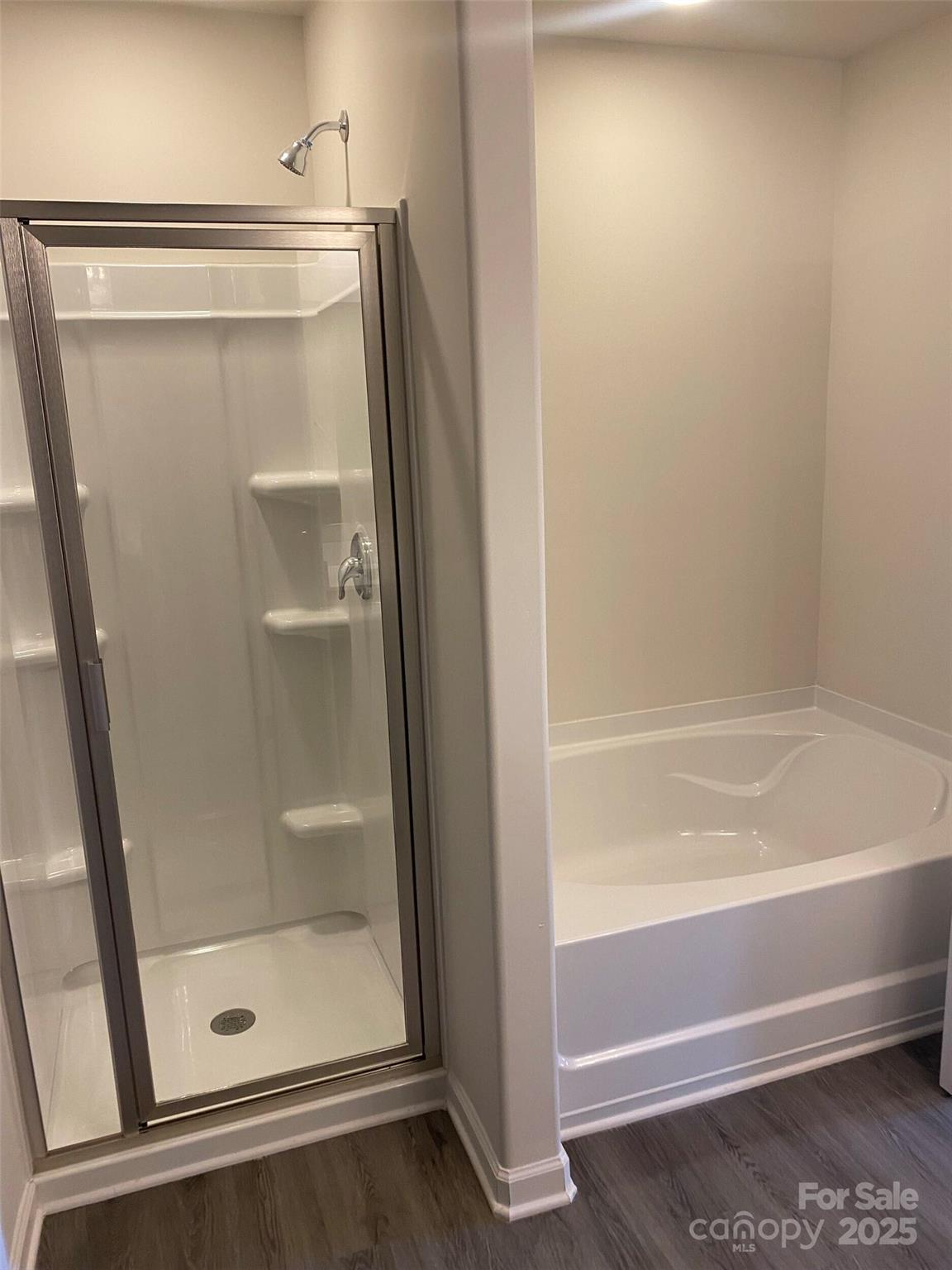 The primary bedroom includes a spacious walk-in closet, an ensuite bathroom with a garden tub, separate shower, and double vanity sinks.