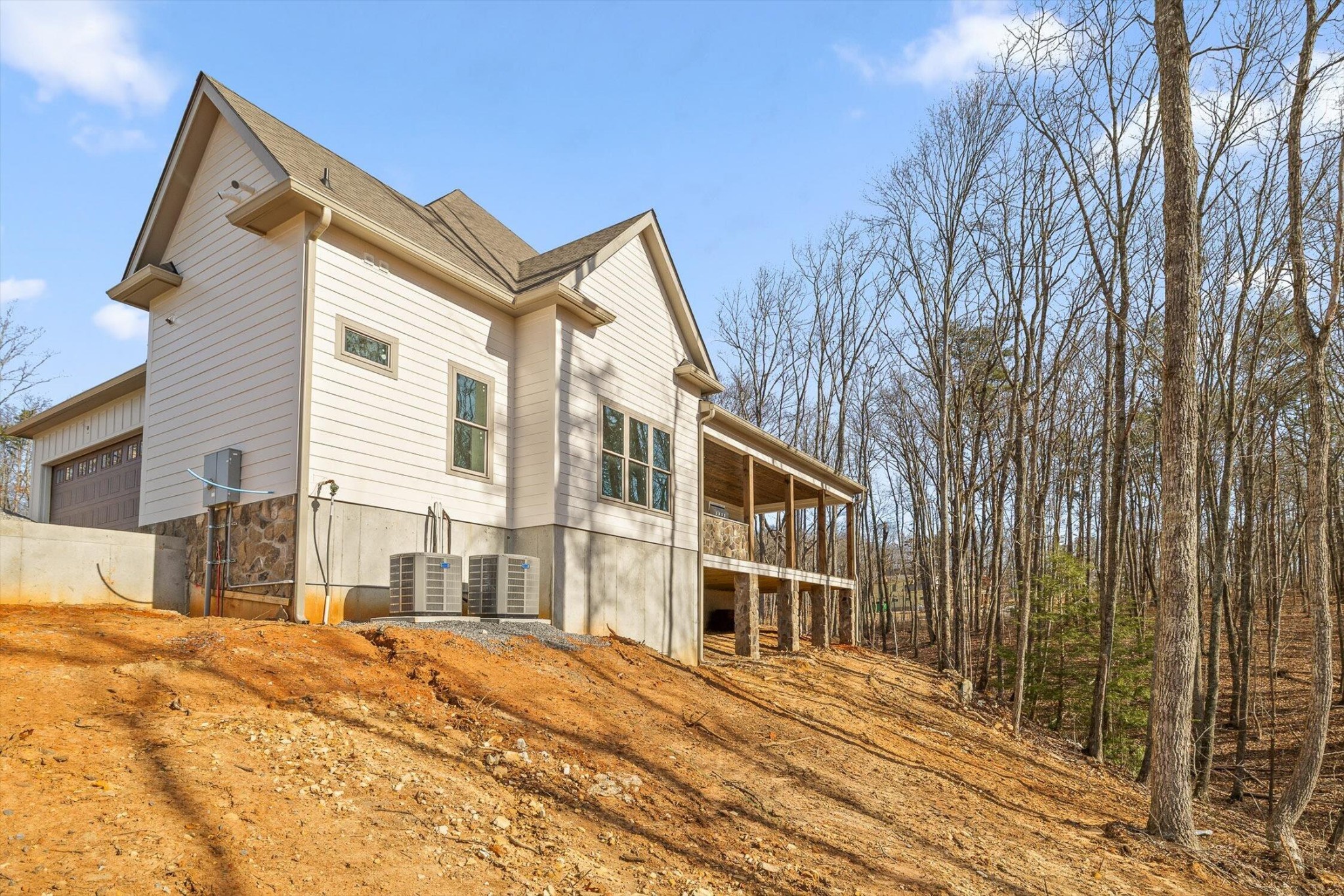 Welcome to your new luxury home in the desirable Flipper Bend gated community and situated on a spacious lot. This two-level, thoughtfully designed European inspired home offered by Pepper's Construction checks all the boxes. From southern inspired deep porches and decks to an efficient flow, you will get the best of both worlds. On the main level, you will find the primary suite, open kitchen and dining, grand family room with fireplace, a front room that can be either an office or scullery, powder room, and of course the spacious 2.5 car garage. The second level provides three bedrooms, one with an ensuite-bath, one hall bath and a large bonus room. This home is under construction but there is time for you to make personal selections if you get in early. Flipper Bend is a newer community tucked into an untouched portion of Signal Mountain, TN. Enter through the Gate House and find yourself immersed in a local community unlike anything else in Chattanooga. Each property is thoughtfully designed to harmonize with nature. Storybook views of the Tennessee valley, historic Cumberland plateau and surrounding areas abound. The community is perched high above the crowd below, allowing you to breathe, relax, and become one with the wonder surrounding you. Carefully planned hiking and biking paths meander for miles while an elevated community center with gorgeous brow views will entertain and relax you year around.