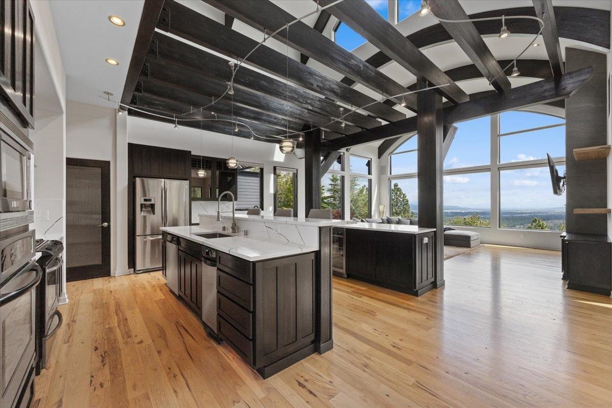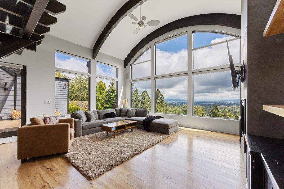 A Pacific Northwest gem built by Fruci Homes, on the market for the very first time. This 6,138 sq ft residence sits 1.3 manicured acres with a $2 Million view stretching east and west. Designed for elegance and comfort the home features 5 bedrooms, five bathrooms and expansive windows that enhance the indoor/outdoor flow. Crafted with natural materials, timeless finishes, and robust stonework, it exudes refined modern luxury. Enjoy radiant heated floors, a chef’s kitchen, a spa like primary bathroom, and a wine cellar all perfect for entertaining. Backyard has been geo gridded, and ready for an in-ground pool. Nestled in the gated community of Broadmoor Estates, just minutes from downtown Spokane, the airport, and top hospitals. This is a rare opportunity in one of Spokane’s most coveted communities.