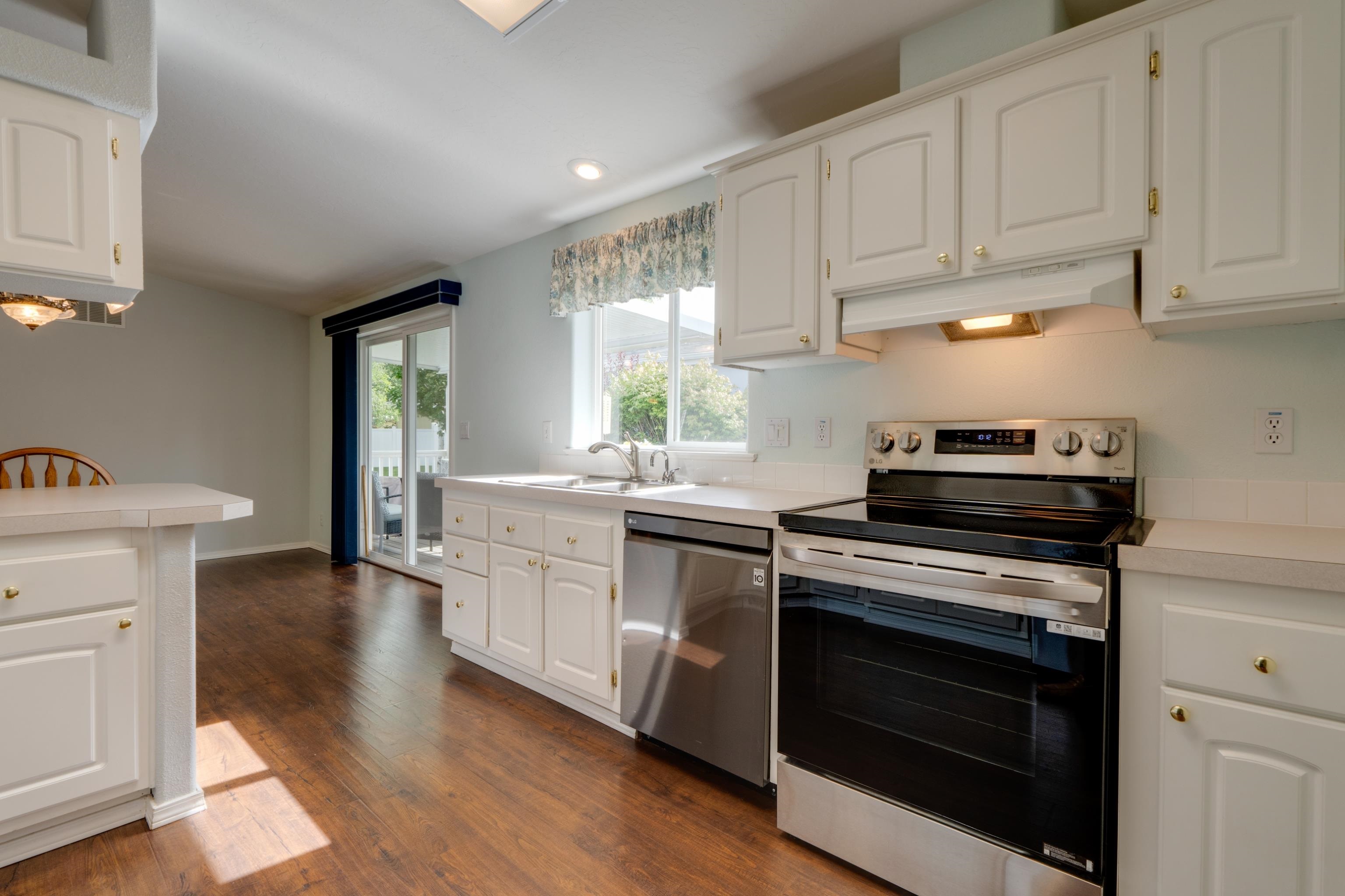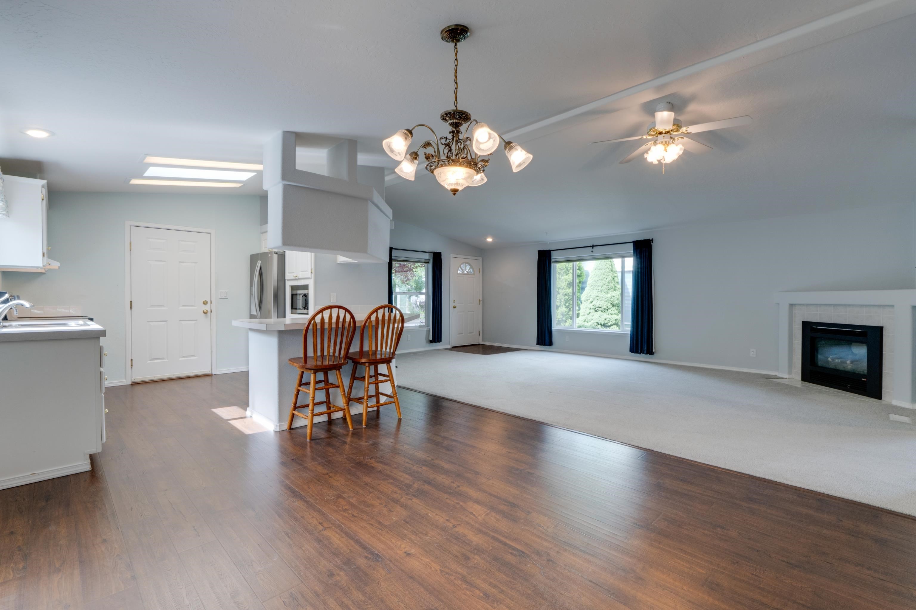 Welcome to this beautifully maintained home in the gated Sunny Creek Residential Community. This single-level gem features a spacious living room with vaulted ceilings and a cozy gas fireplace. The kitchen has newer appliances including a French door refrigerator, microwave, and Insta-Hot faucet. An eating bar and a generous dining area with a slider leading to a covered back deck are perfect for gatherings. The primary suite offers a walk-in closet and a private ensuite with dual vanities, a deep soaking tub and a separate shower. The second bedroom is ideal for guests or as a versatile space with a full bathroom nearby plus a third room for an office or den. The 2-car garage is fully insulated and has added electrical outlets on each wall—ideal for projects, storage, or hobbies. Extra safety with the installed back-up generator. Located just minutes from shopping, dining, and entertainment in Downtown Spokane, this home combines comfort, functionality, and peace of mind. Ask for the list of home upgrades.