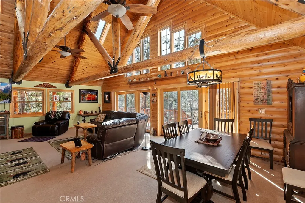 Exquisite estate in exceptional condition! This custom log style home features an impressive great room with full log beams, a bright sunroom, four spacious bedrooms, and 3 bathrooms. The interior boasts a dramatic design, fit for a magazine feature. This estate provides complete privacy, with several spaces to relax and take in the natural beauty. Perfect for the buyer seeking a unique, high-quality home with character. Featuring remote control blinds and ceiling fan lights. Two FAU, 2 A/C's, 2 water heaters for up and downstairs. Kitchen features a walk in pantry and stainless steel appliances. The master suite has a deck to enjoy, a large walk-in closet, and an expansive bathroom. Owned solar electric system and on grid. In addition to the two-car garage with pull thru, a separate one car garage or workshop is a dream mancave, complete with electricity, water, and its own bathroom and theres a covered carport for added convenience. Step outside to enjoy breathtaking views and low maintenance, yet beautifully landscaped surroundings. Enjoy the charm of decks surrounding the home, including a covered front porch. Situated on a gated 31,000 sq. ft. lot, this property is surrounded by other expansive properties and neighboring homes.