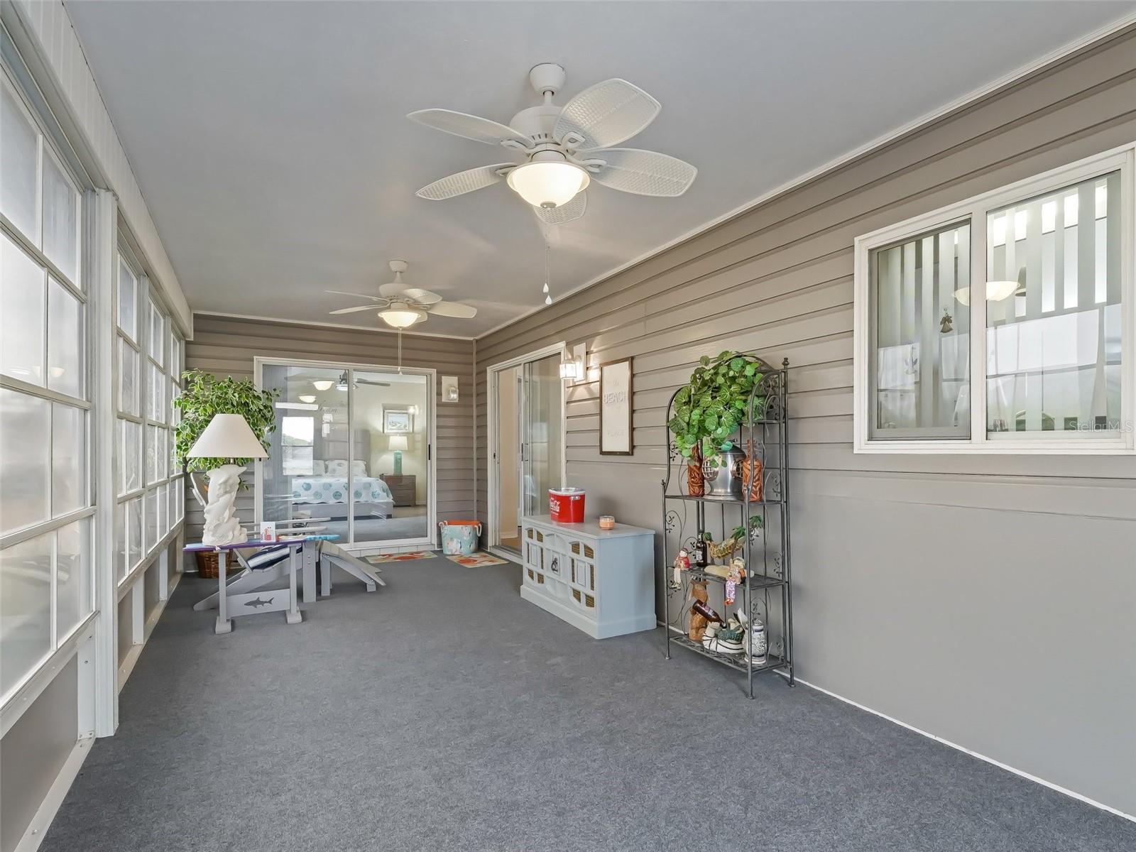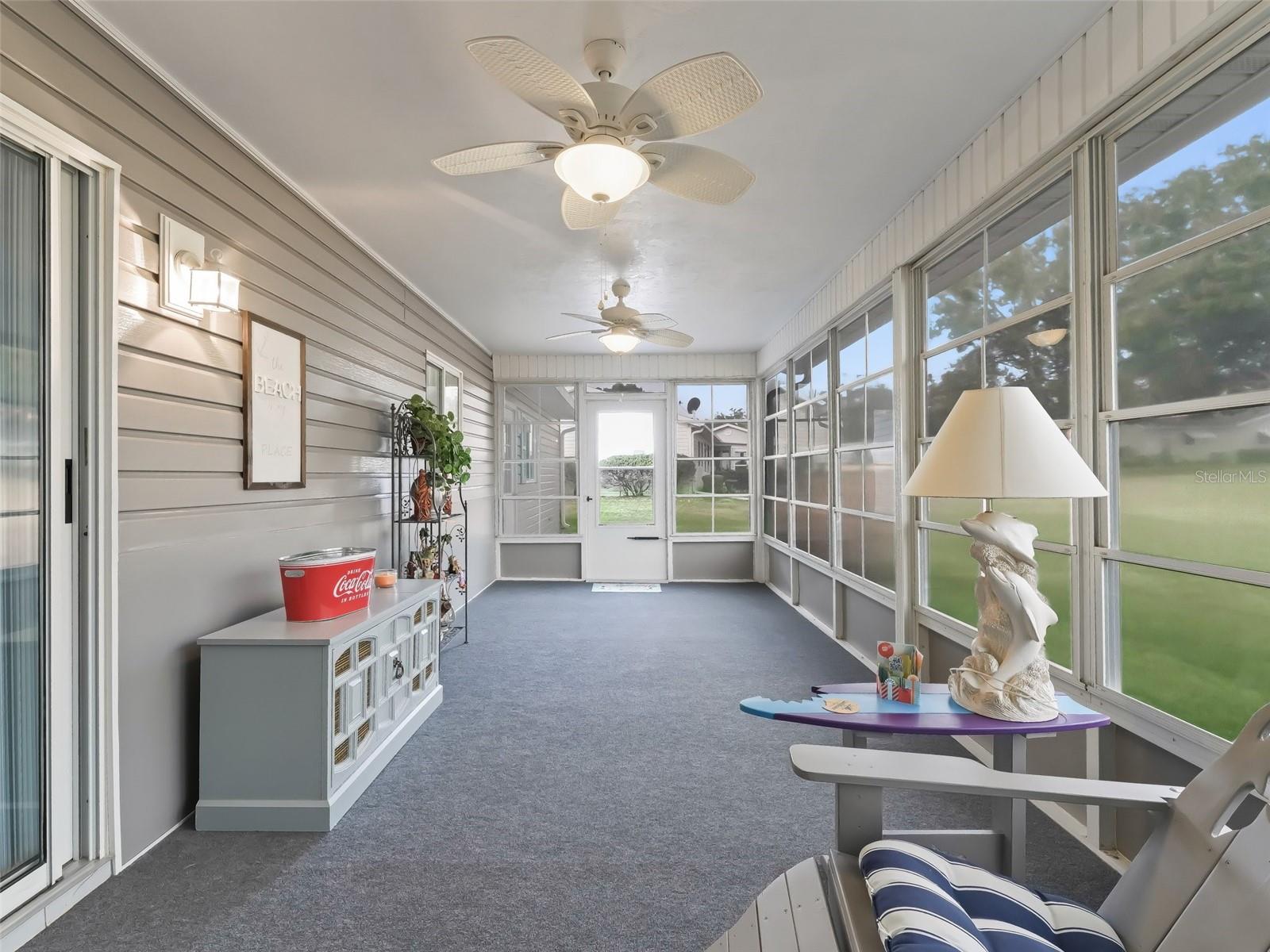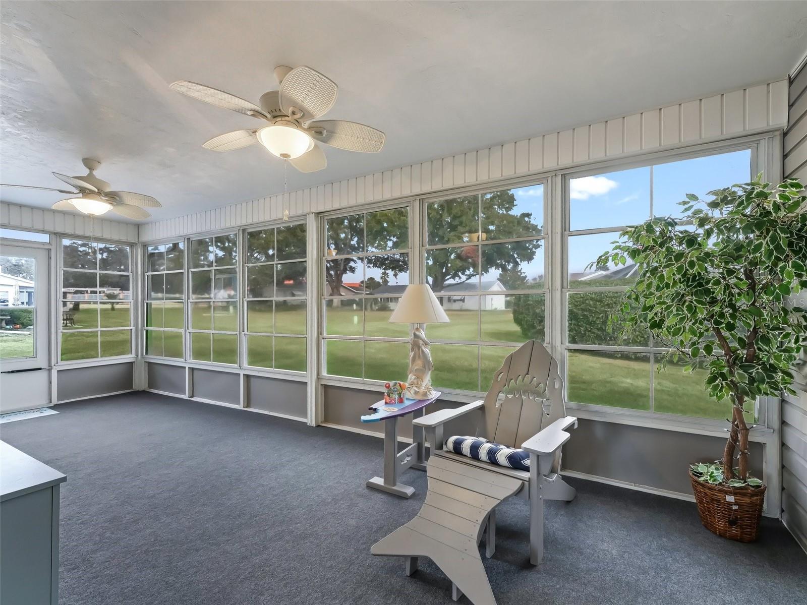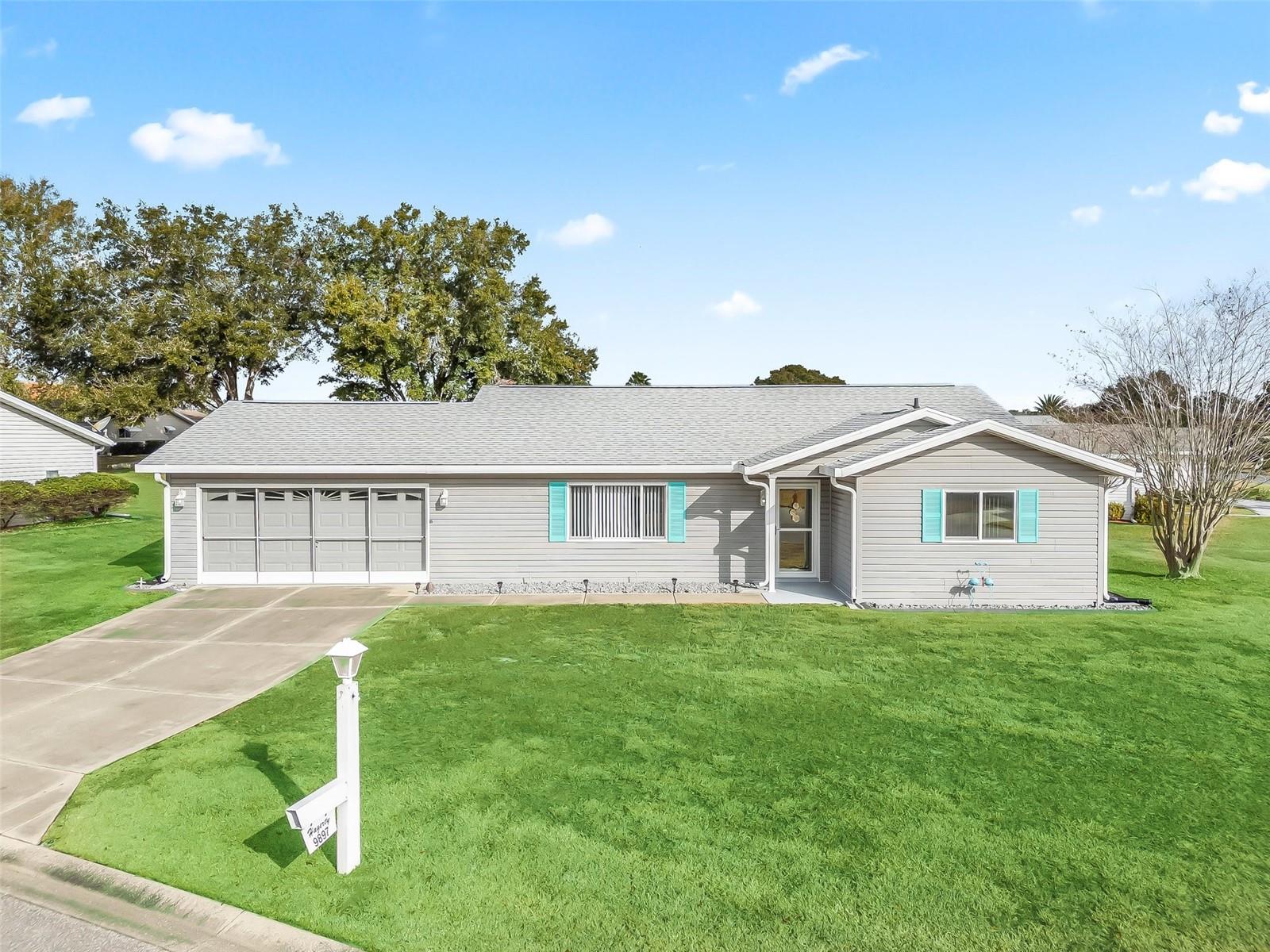 PRICE IMPROVEMENT, PRICEN REDUCTION, BRAND NEW WATER JUST ARRIVED 04/2025 TO KEEP INSURANCE DISCOUNT! This Lovely PALM MODEL, corner lot, being offered as turnkey with the furniture included except for LANAI FURNITURE THAT DOES NOT CONVEY! This is what stays with the house: The living room furniture, bedroom furniture, the beds, linens, kitchen dining room, pots and pans, utensils and more... A list can be made available upon request. This home has 2 bedrooms, 2 bathrooms, oversize 2 car garage and a cozy Florida room. Located right here in Central Florida in the friendly gated 55+ golf cart community of Spruce Creek South with golfcart access to a broad selection of amenities within minutes away! This corner lot is 2minutes to the Community Club house, you can actually see the pool and the clubhouse from your oversize back yard. NEWER ROOF IS OWENS CORNING SHINGLES 2019, The fact that this active 55+ community is near The Villages adds even more charm for those looking for that lifestyle. Important to know is that this community has an 18-hole golf course and a Links pro-shop and a restaurant which also offers entertainment. We also have a residential additional gate which takes you directly into Terrace Plaza which offers several restaurants , a couple of drugstores, dentist, medical centers, Urgent care, fellowship, flower shop, gallery, nail and hair salons and even a spa...and there is so much more, including the new planet fitness but keep in mind we have our own fitness center included with our P.O.A. There is no bond or CDD here making it even more appealing. THROUGHOUT THE YEAR This community offers a lot to keep you active and engaged! The mix of indoor and outdoor amenities makes it a perfect place for anyone looking to stay fit, socialize, and enjoy a variety of activities. Attached to the Club house on the outside we have the heated pool and spa, Inside the clubhouse we have the fitness center, his and hers sauna with showers, are a huge perk, especially for year-round relaxation, recreation, and social opportunities, perfect for those looking to get the most out of their 55+ living experience! Additional refrigerator in the garage also stays. The lanai furniture does not convey!