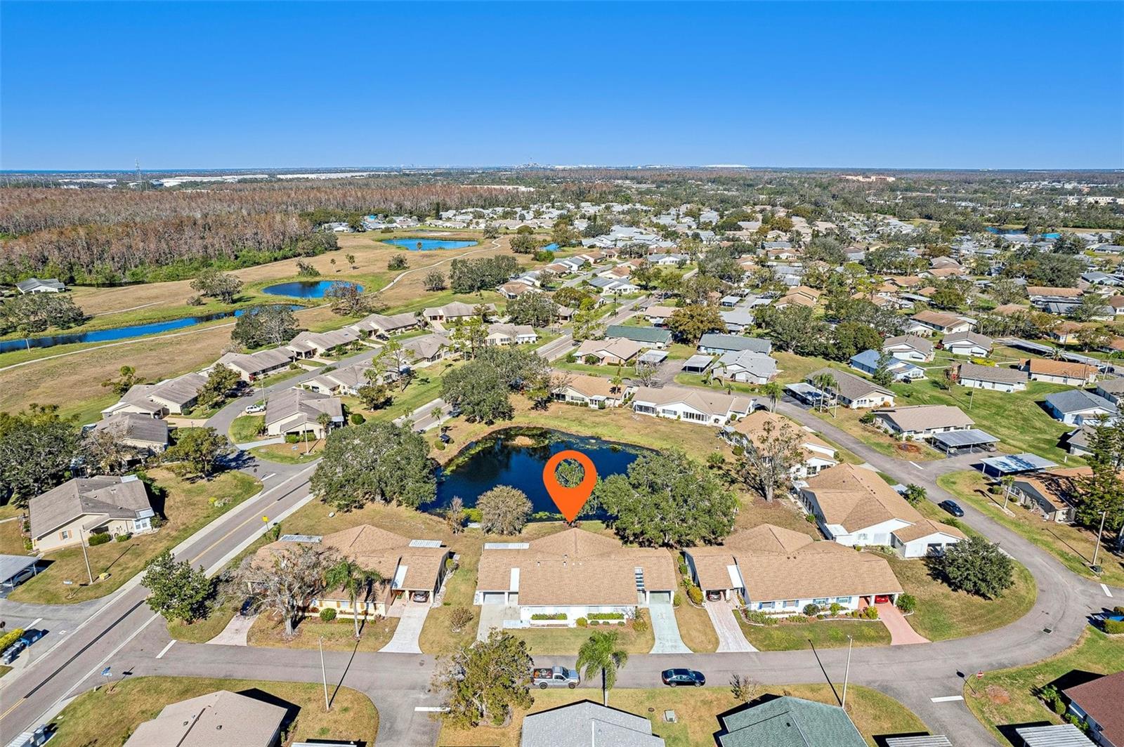 PRICE REDUCTION. Welcome Home! This home in the gated section of Sun City Center known as Kings Point, is in the ideal golf city, where a golf cart can be your main form of transportation to shopping, restaurants, almost anything you may desire or need and is in the #1 Rated Retirement Community in the US, Sun City Center! Kings Point has manned GATED entrances and offers a maintenance-free lifestyle within an active 55+ community.The home features 2 bedrooms, 2 bathrooms, dining room, large living room, enclosed Florida Room and large utility room, carport and a air conditioned/heated LANAI WITH SLIDING WINDOWS ON THE ENTIRE BACK, WHILE LOOKING AT THE BEAUTIFUL POND, check out all kinds of wildlife as this is one of the few homes in the community on the water. Kings Point boasts 2 clubhouses, each with an outdoor heated pool, indoor pool, exercise room, craft rooms, large screen TV, bar, food service, planned social activities and so much more. Maintenance includes building exterior, premium cable, internet, escrow reserves fund, ground maintenance, private road, recreational facilities, roof, security, water and sewer. Close enough to I75 to enjoy all Tampa Bay has to offer. Call for details!
