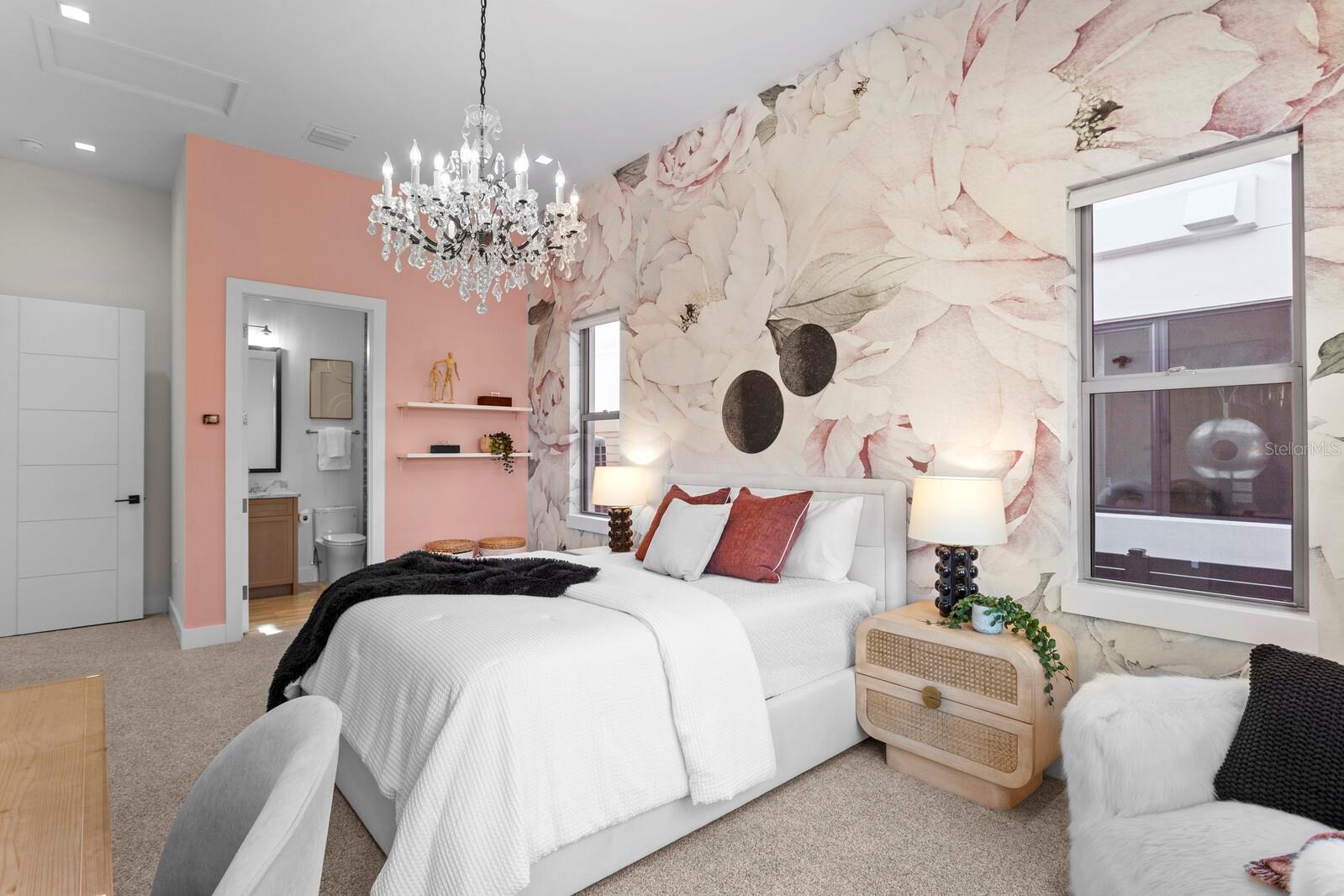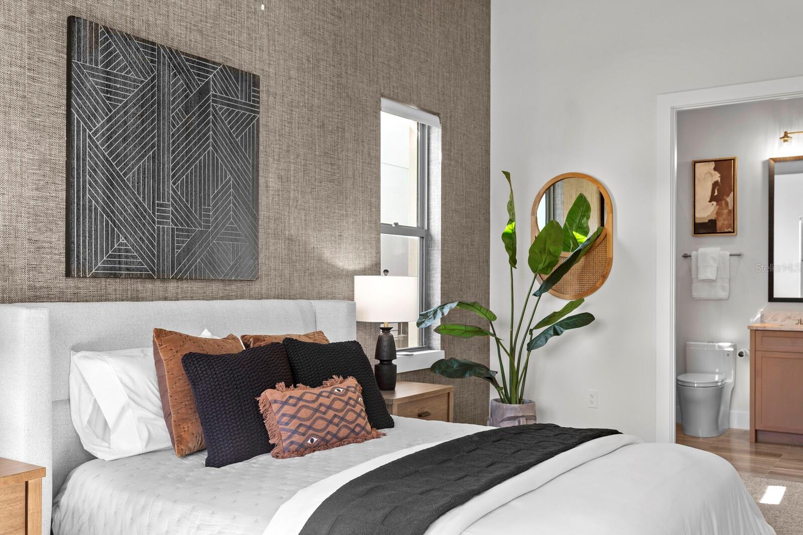 Inside, the home features four expansive bedrooms, each with its own private ensuite bathroom, as well as a dedicated home office—perfect for work-from-home living or quiet retreat space. The interior is finished with luxury hardwood flooring, Gaggenau appliances, solid-core doors, floor-to-ceiling tiled bathrooms, and a zero-entry primary shower. The oversized mudroom entry from the epoxy-coated garage adds convenience, while a built-in safe in the primary closet and a pass-through laundry window add thoughtful touches of practicality. All interior walls are insulated for sound and energy efficiency, and a central vacuum system is integrated throughout.