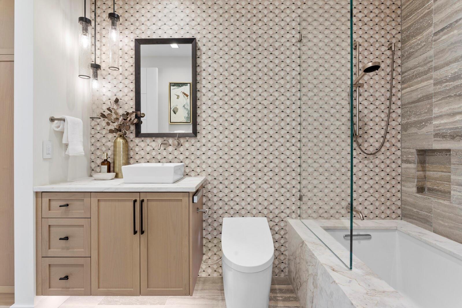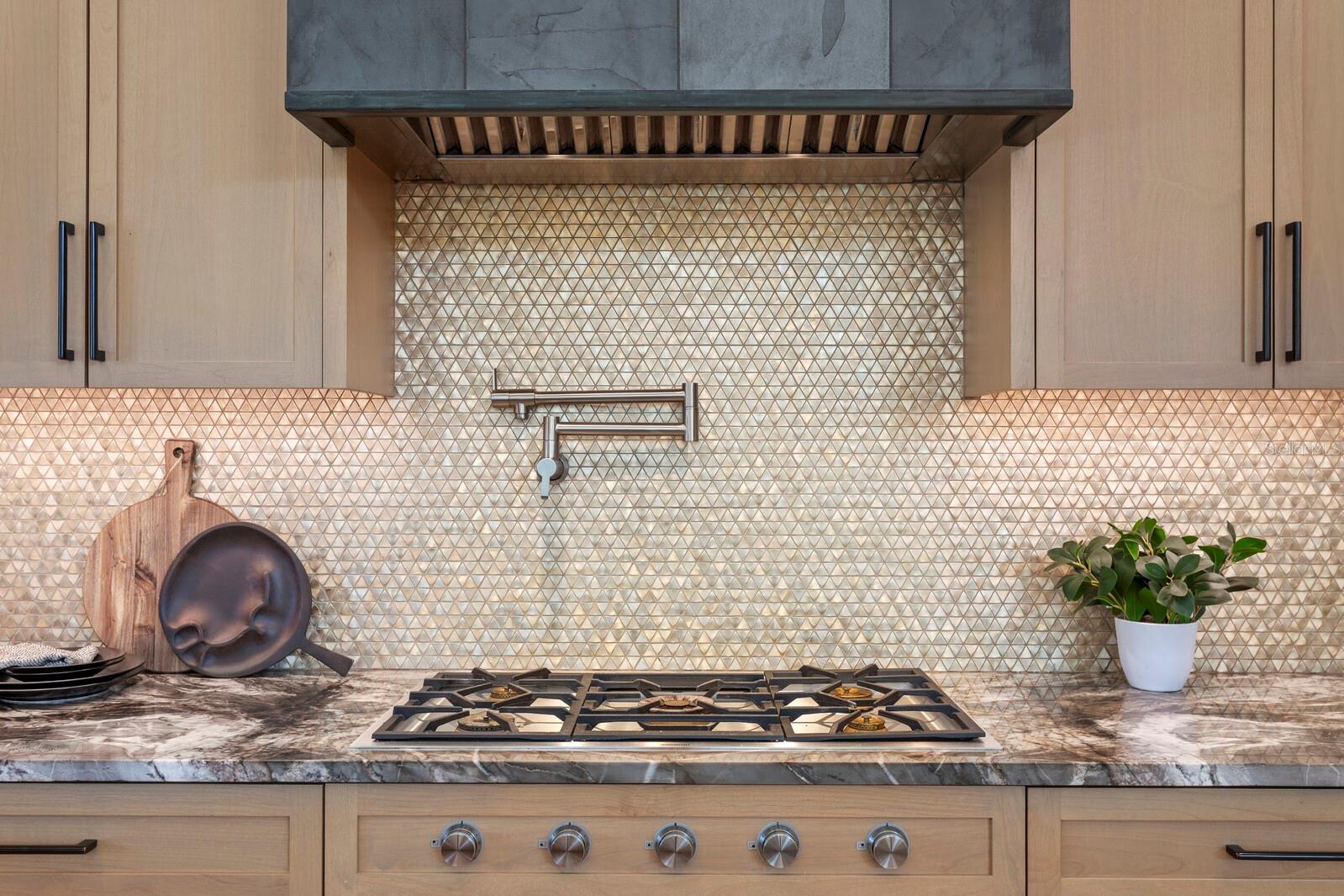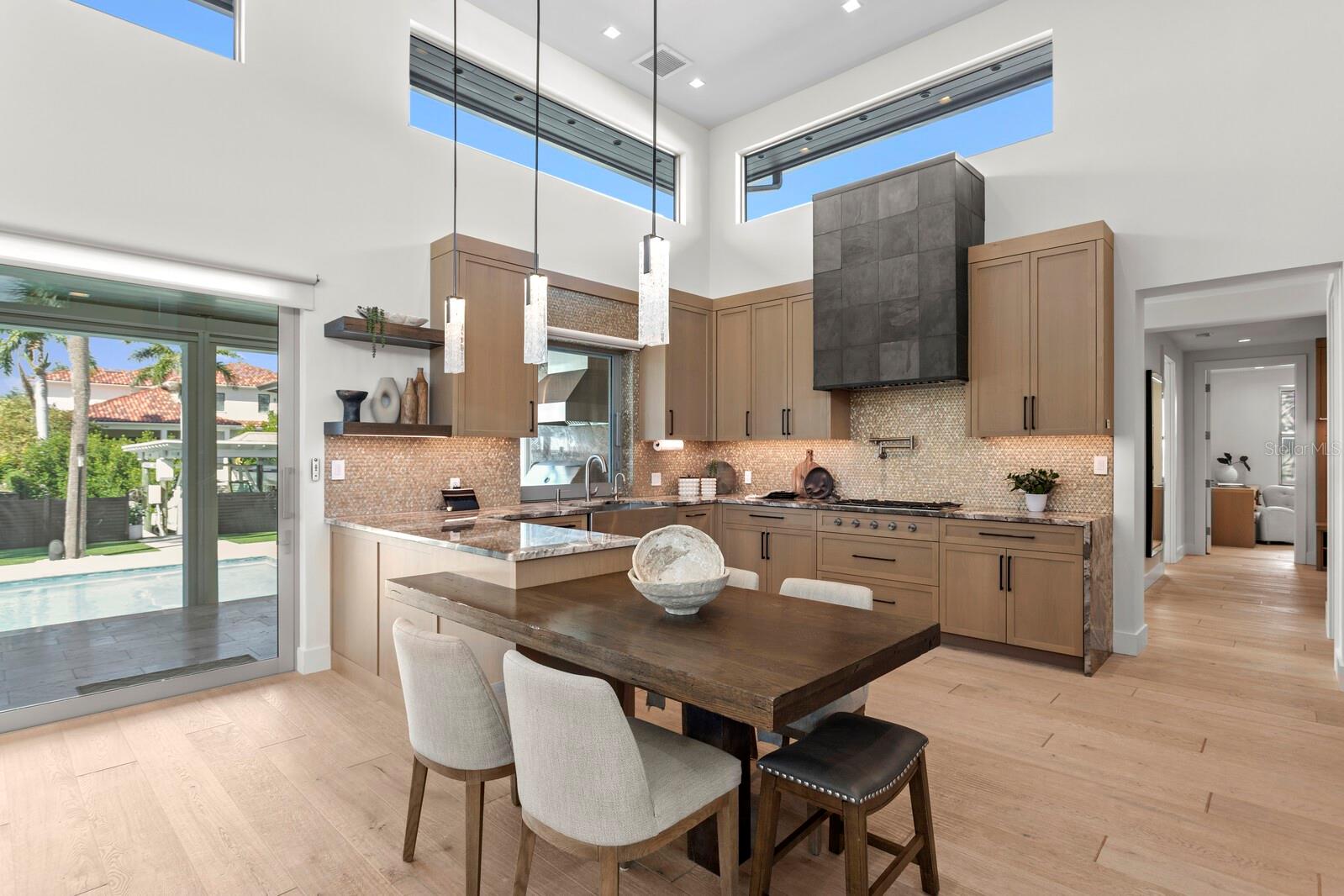 A true smart home, the residence is outfitted with a full Control4 automation system to manage lighting, music, blinds, and even tiki torches—all seamlessly operated. Lutron lighting and automated Palladiom window treatments provide ambiance and privacy at the touch of a button. Energy efficiency is paramount, with a full-home solar system that keeps the average monthly electric bill around $100 (with natural gas), a Generac backup generator, whole-home filtration system, two reverse osmosis units, and three HVAC units controlling six distinct zones for climate comfort.