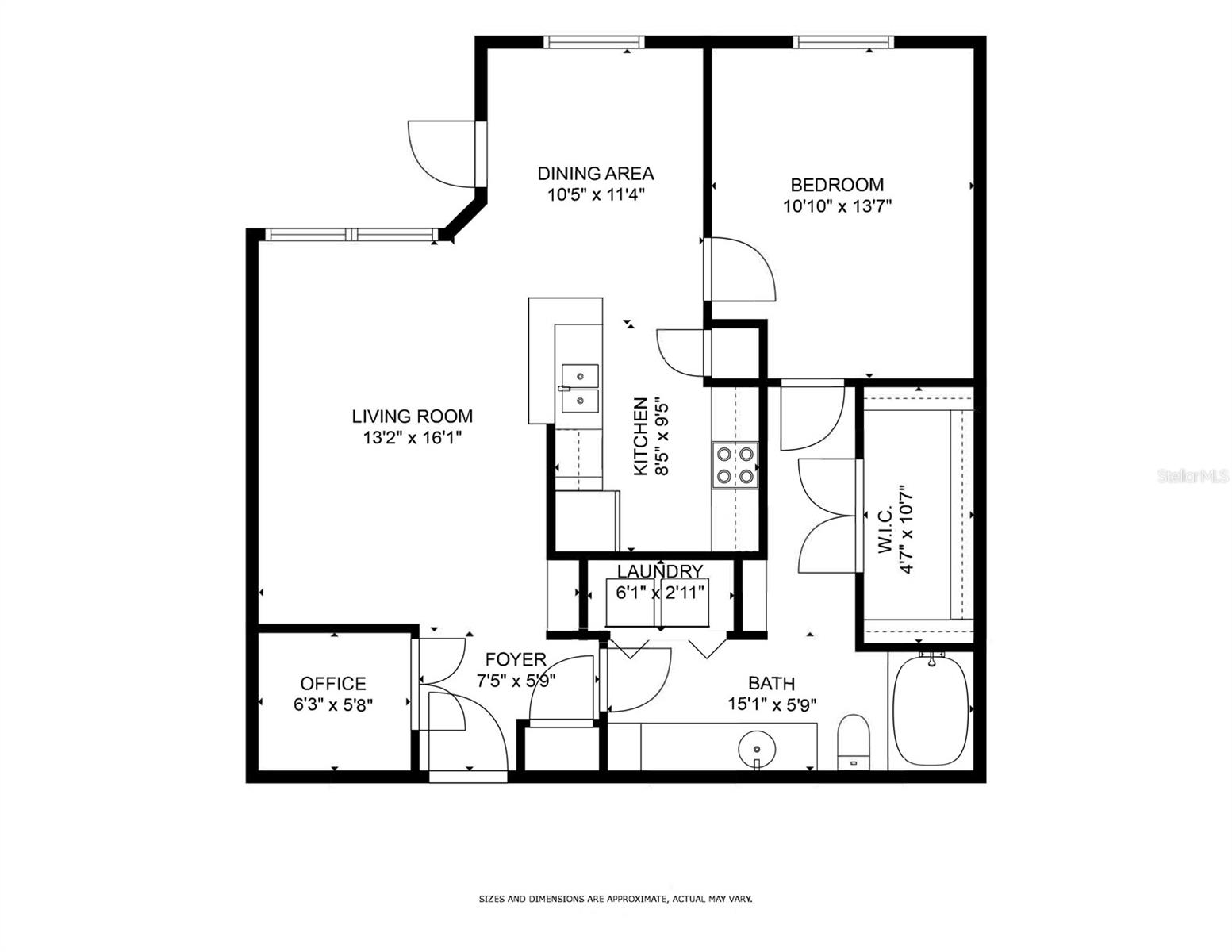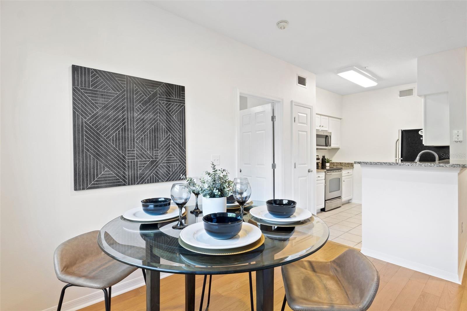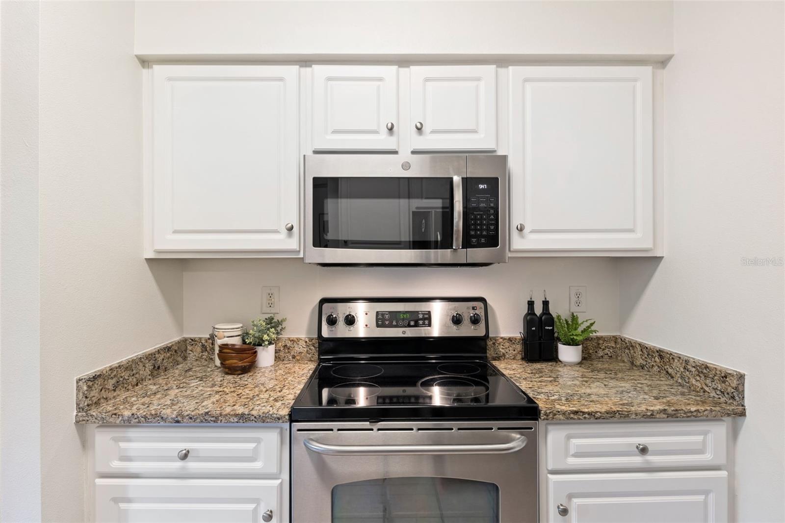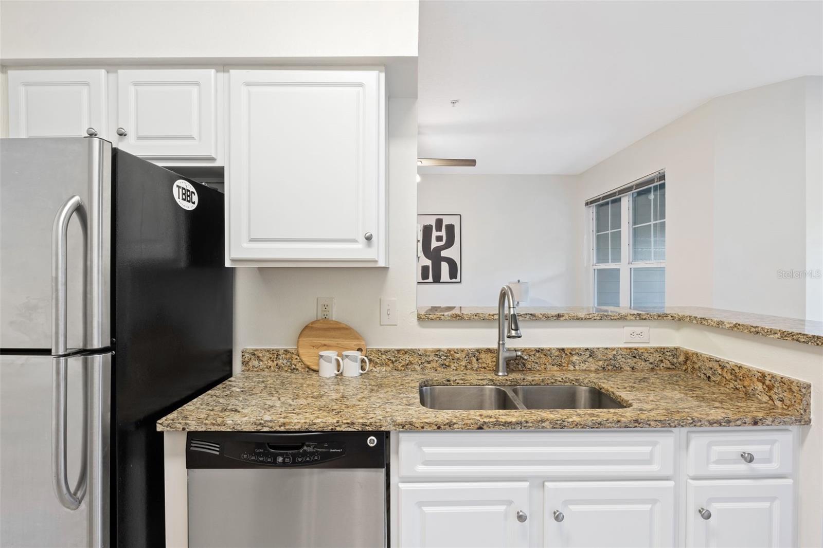 This thoughtfully designed unit features a large bedroom with a walk-in closet, a versatile bonus space (staged as a home office in the photos) that can also serve as an oversized closet, and a private balcony—perfect for relaxing or entertaining. Additional storage features include a coat closet, built-in shelving in the living room, and a pantry in the kitchen. The updated kitchen boasts granite countertops, stainless steel appliances, and modern cabinetry, seamlessly flowing into a bright, open living space. The bathroom offers a dual sink vanity and clean, neutral finishes for a fresh and inviting feel. Additional conveniences include an in-unit washer and dryer and an assigned covered parking space located near the unit.