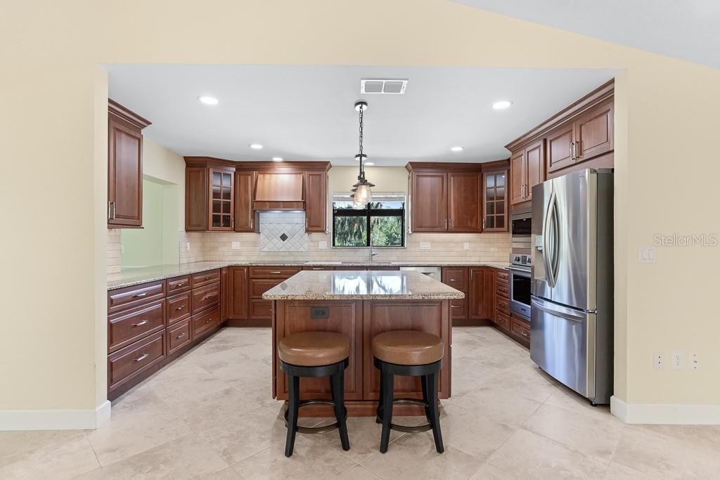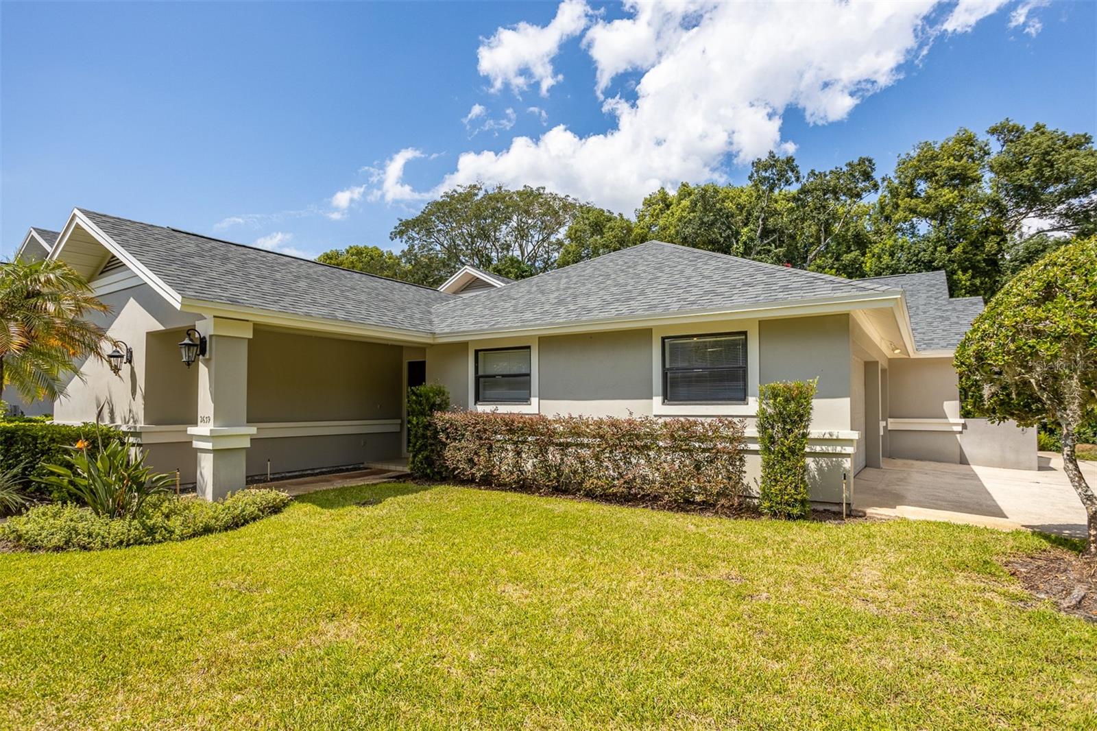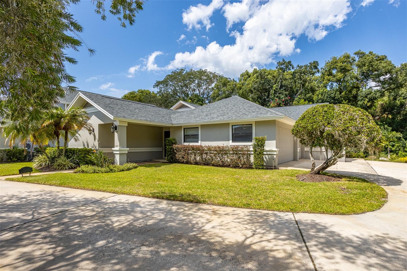 One or more photo(s) has been virtually staged. Discover luxurious Country Club living at 2639 Royal Liverpool Dr, an AMAZING Villa located in the highly sought-after Cypress Run West Community of Tarpon Springs. This exquisite 3-bedroom, 2.5 bathroom home offers a perfect blend of elegance and comfort, making it an ideal retreat for those seeking a serene lifestyle in a private gated golf community. With 2,808 square feet of interior living space, this home features an open-concept layout featuring soaring ceilings, Hardwood and Tile throughout (no carpet). Enter into the the formal Living and Dining room featuring a wall off floor to ceiling windows & tranquil Wooded golf course views. The gourmet chefs kitchen is equipped with genuine wood custom cabinets with convenient pull-out shelving, granite countertops, and newer professional series appliances: induction cooktop, built in microwave and IQ LG fridge making it a dream for culinary enthusiasts- Foodie approved. The expansive family room boasts soaring ceilings and a cozy gas fireplace- creating a warm and inviting atmosphere. This Split Floor plan offers privacy and generous room sizes. The primary suite offers a private sanctuary with a custom designed closet and en-suite bathroom with dual sinks, granite countertops, seamless glass step-in shower with multiple shower heads and designer pebble tile. The 2 additional bedrooms provide comfort and privacy for family or guests plus built in desk for those working from home. Recent Upgrades: New roof (2022), High-impact windows and doors (2021), and a remodeled inside laundry area with granite countertops and abundant storage, whole home water filtration and water softener. Outdoor Oasis: Step outside to discover a tranquil outdoor atrium, perfect for enjoying your morning coffee or hosting intimate gatherings. Off of the living room is a large screened-in tile patio with tranquil wooded views- perfect for your morning coffee. The home includes a 2+ car garage with an additional bay for your golf cart, ensuring convenience for you and your guests. Enjoy the Community pool and Cabana nearby. Cypress Run is one of the most exclusive residential communities, featuring an 18 hole championship golf course, designed by Larry Packard, one of the most world-renowned golf course designers. The clubhouse was renovated in 2019 and offers fine dining with amazing food! Tennis courts are available as well as pickleball. Cypress Run is a great location because of its proximity to Tampa International Airport, cities of Tampa, Clearwater, Dunedin, St. Petersburg, the award winning beaches in Clearwater, Dunedin, Tarpon Springs, shopping centers, movie theaters, golf courses, multiple gyms, restaurants, and the top ranked schools in Pinellas County, all which makes this an ideal community. Experience the unique culture of Tarpon Springs, known for its historic sponge docks, beaches, parks and vibrant community events. Don’t miss this incredible opportunity to own a piece of paradise in Cypress Run! Schedule a private showing today to experience the charm and elegance of this exceptional villa. HOA fee covers grounds maintenance, exterior painting, roof, community pool, pool cabana, and gazebo maintenance.