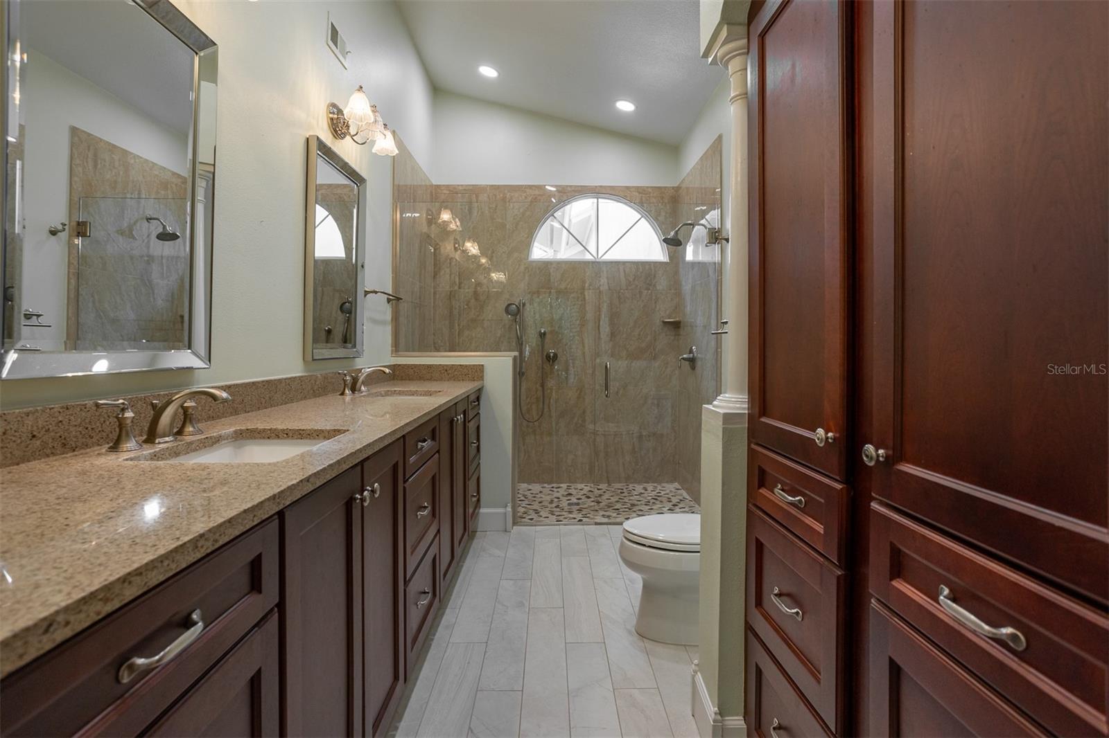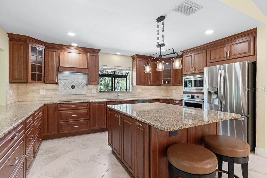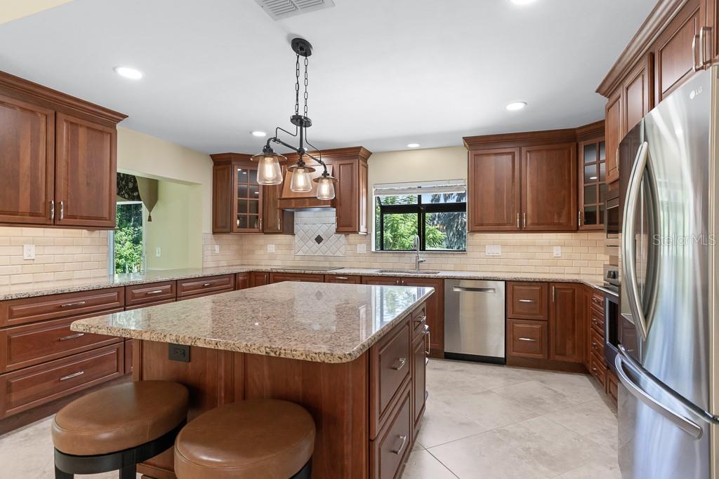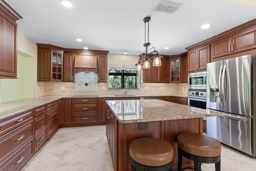 One or more photo(s) has been virtually staged. Discover luxurious Country Club living at 2639 Royal Liverpool Dr, an AMAZING Villa located in the highly sought-after Cypress Run West Community of Tarpon Springs. This exquisite 3-bedroom, 2.5 bathroom home offers a perfect blend of elegance and comfort, making it an ideal retreat for those seeking a serene lifestyle in a private gated golf community. With 2,808 square feet of interior living space, this home features an open-concept layout featuring soaring ceilings, Hardwood and Tile throughout (no carpet). Enter into the the formal Living and Dining room featuring a wall off floor to ceiling windows & tranquil Wooded golf course views. The gourmet chefs kitchen is equipped with genuine wood custom cabinets with convenient pull-out shelving, granite countertops, and newer professional series appliances: induction cooktop, built in microwave and IQ LG fridge making it a dream for culinary enthusiasts- Foodie approved. The expansive family room boasts soaring ceilings and a cozy gas fireplace- creating a warm and inviting atmosphere. This Split Floor plan offers privacy and generous room sizes. The primary suite offers a private sanctuary with a custom designed closet and en-suite bathroom with dual sinks, granite countertops, seamless glass step-in shower with multiple shower heads and designer pebble tile. The 2 additional bedrooms provide comfort and privacy for family or guests plus built in desk for those working from home. Recent Upgrades: New roof (2022), High-impact windows and doors (2021), and a remodeled inside laundry area with granite countertops and abundant storage, whole home water filtration and water softener. Outdoor Oasis: Step outside to discover a tranquil outdoor atrium, perfect for enjoying your morning coffee or hosting intimate gatherings. Off of the living room is a large screened-in tile patio with tranquil wooded views- perfect for your morning coffee. The home includes a 2+ car garage with an additional bay for your golf cart, ensuring convenience for you and your guests. Enjoy the Community pool and Cabana nearby. Cypress Run is one of the most exclusive residential communities, featuring an 18 hole championship golf course, designed by Larry Packard, one of the most world-renowned golf course designers. The clubhouse was renovated in 2019 and offers fine dining with amazing food! Tennis courts are available as well as pickleball. Cypress Run is a great location because of its proximity to Tampa International Airport, cities of Tampa, Clearwater, Dunedin, St. Petersburg, the award winning beaches in Clearwater, Dunedin, Tarpon Springs, shopping centers, movie theaters, golf courses, multiple gyms, restaurants, and the top ranked schools in Pinellas County, all which makes this an ideal community. Experience the unique culture of Tarpon Springs, known for its historic sponge docks, beaches, parks and vibrant community events. Don’t miss this incredible opportunity to own a piece of paradise in Cypress Run! Schedule a private showing today to experience the charm and elegance of this exceptional villa. HOA fee covers grounds maintenance, exterior painting, roof, community pool, pool cabana, and gazebo maintenance.