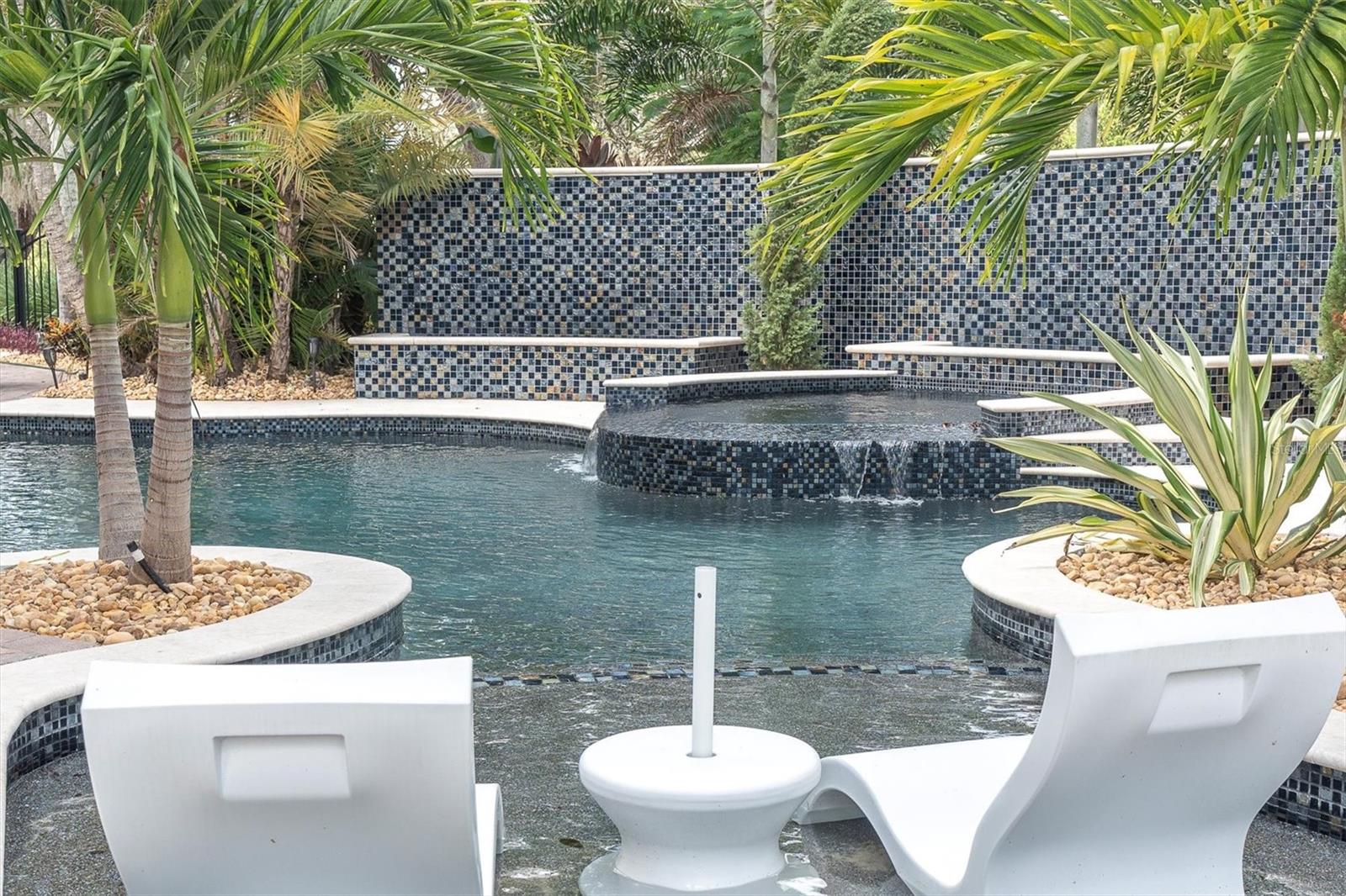 Welcome to this exquisite custom-built estate home perfectly situated in the prestigious guard-gated community of Wentworth. Nestled on a quiet cul-de-sac and overlooking hole #8. This two-story Mediterranean masterpiece offers the perfect blend of luxury, comfort, and thoughtful design. Boasting nearly 5,800 sq. ft. of exceptional living space, this home has been meticulously maintained and upgraded with the finest finishes and details throughout. The spacious gourmet kitchen is a chef’s dream, featuring custom cabinetry, granite countertops, a large island, butler’s pantry, breakfast nook, pot filler faucet, and top-of-the-line appliances. The first floor also includes a grand living area with surround sound, formal and casual dining spaces, a billiard room, a dedicated exercise room with equipment that conveys, and a beautifully appointed home theater featuring a 122” screen—equipment and furniture convey. Upstairs, the luxurious master suite offers a private retreat with a sitting area, two custom-built walk-in closets, and a private balcony overlooking the golf course. The spa-like master bath showcases elegant finishes, creating a serene and relaxing atmosphere. Designed for both entertaining and everyday living, this home features two laundry rooms (one on each floor, with the downstairs updated in 2023), tankless water heater and one traditional water heater, central vacuum system, travertine and wood flooring throughout. The 4-car garage with golf cart garage includes epoxy floors, offering both beauty and function. Step outside to your private resort-style oasis with an extended covered veranda, custom lagoon-style pool, and spa with PebbleTec Ocean Blue finish, three waterfalls, and marble-accented Lightstreams tile (pool renovated 2022–2023, $230k). The outdoor kitchen makes this an entertainer’s paradise, all within a fenced backyard surrounded by tropical landscaping. Additional updates and features include three new A/C units with 10-year warranty (2023), new front door (2024), outdoor lighting (2023), whole-house generator, updated home theater system (2023), ADT security system with cameras covering the entire property, a reverse osmosis system (2024), and a 100-bottle wine cooler. Conveniently located in the East Lake corridor near top-rated schools, beaches, and shopping, this stunning estate truly has it all—luxury, function, and timeless appeal in one of Pinellas County’s most sought-after communities. Must see to apppreciate!